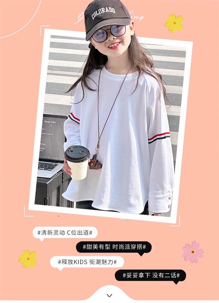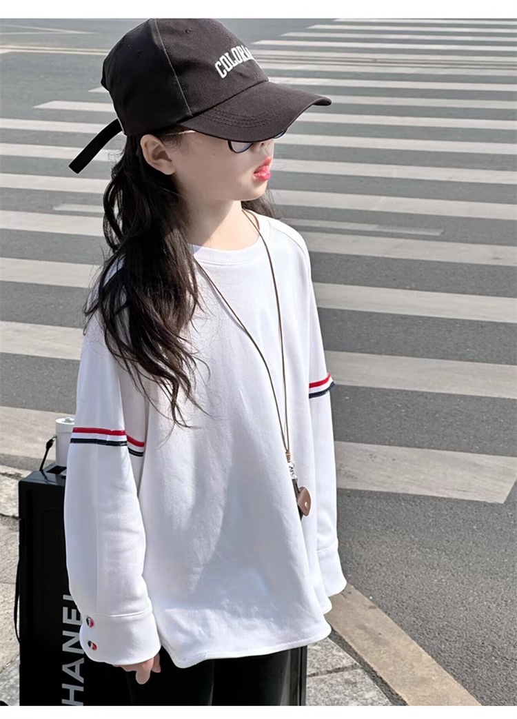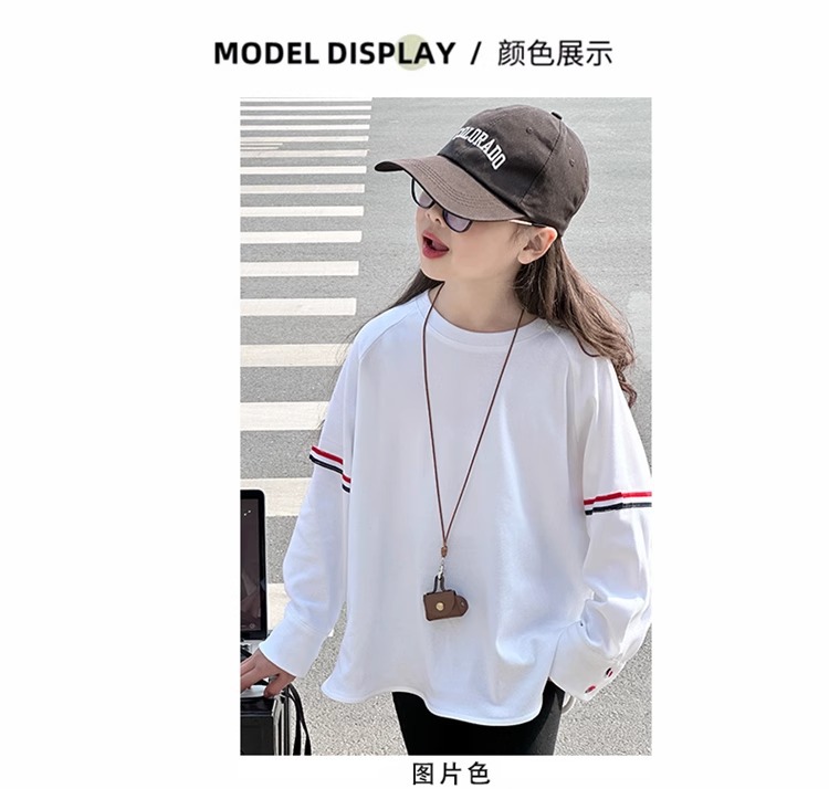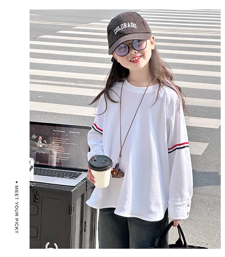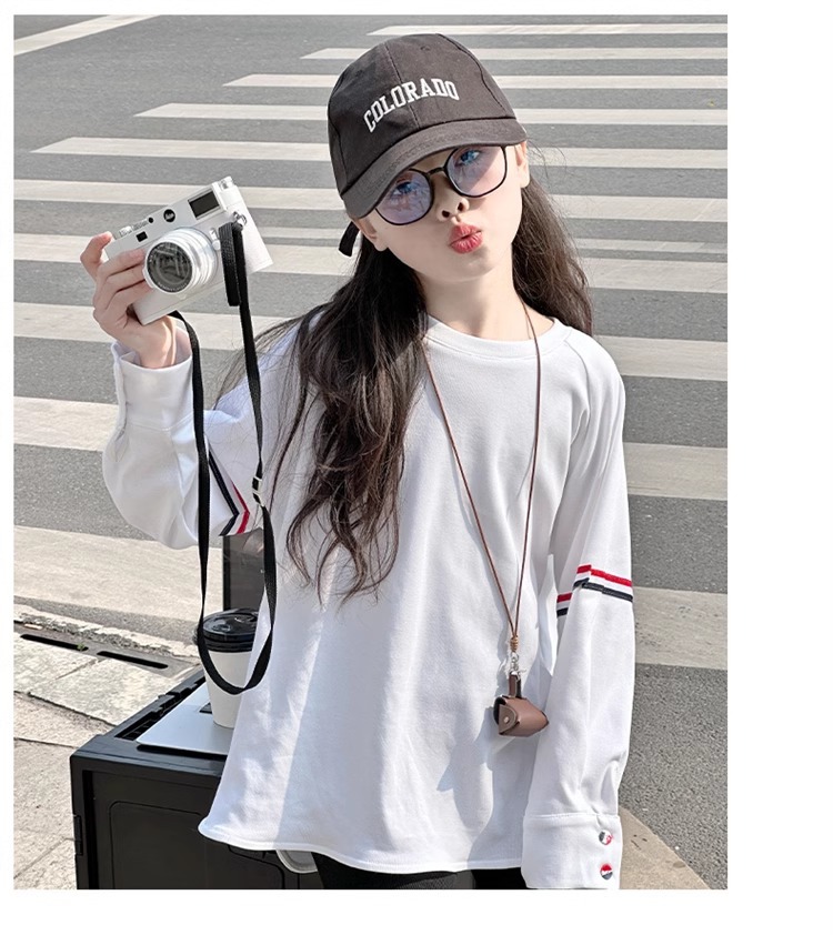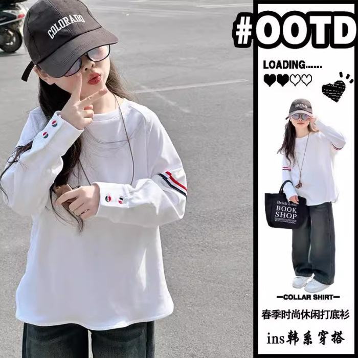 여아 라운드 넥 디자인 화이트 티셔츠 아동용 2025 봄 한국어 버전 새로운 긴팔 다용도 탑 트렌디 바닥 셔츠스토어 가기