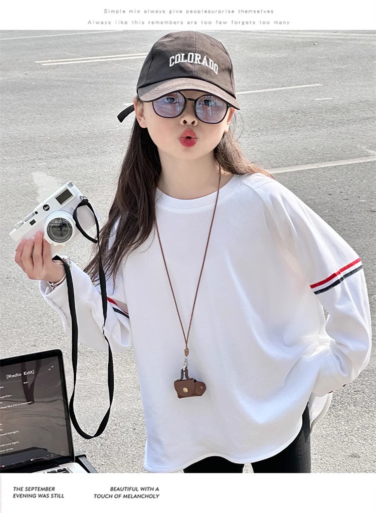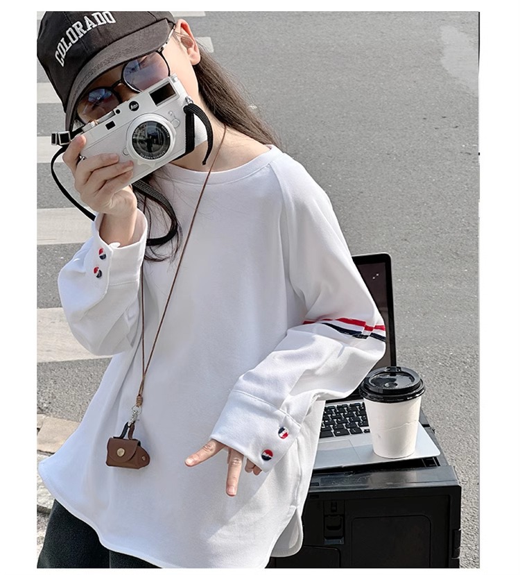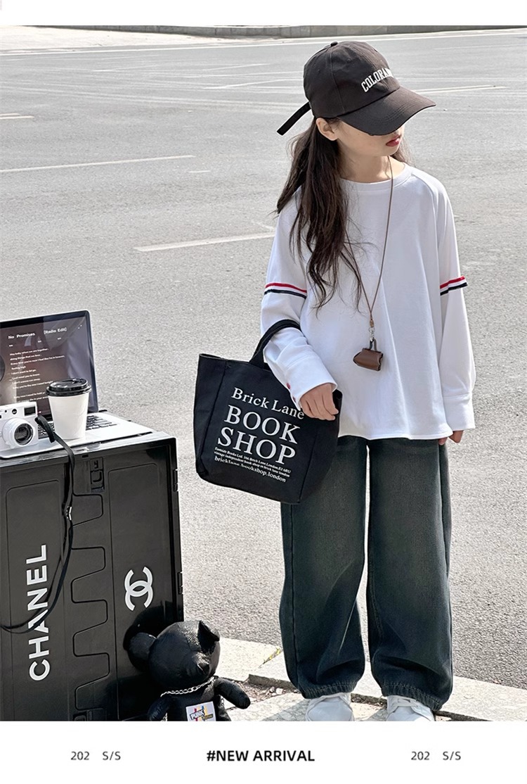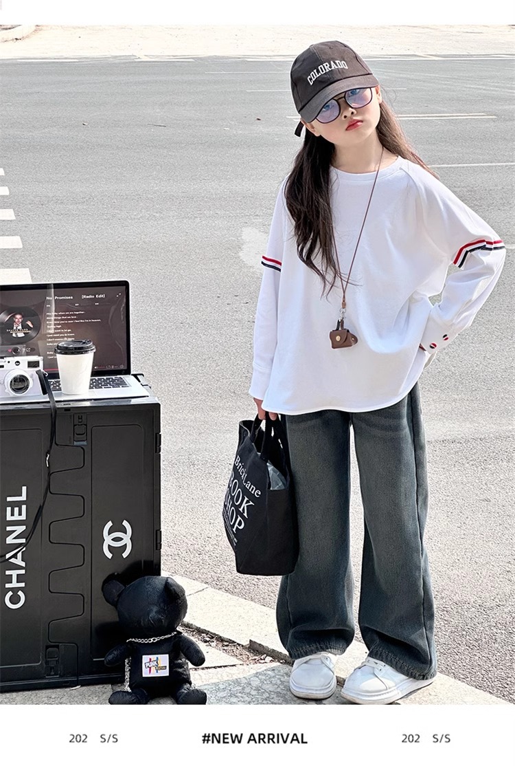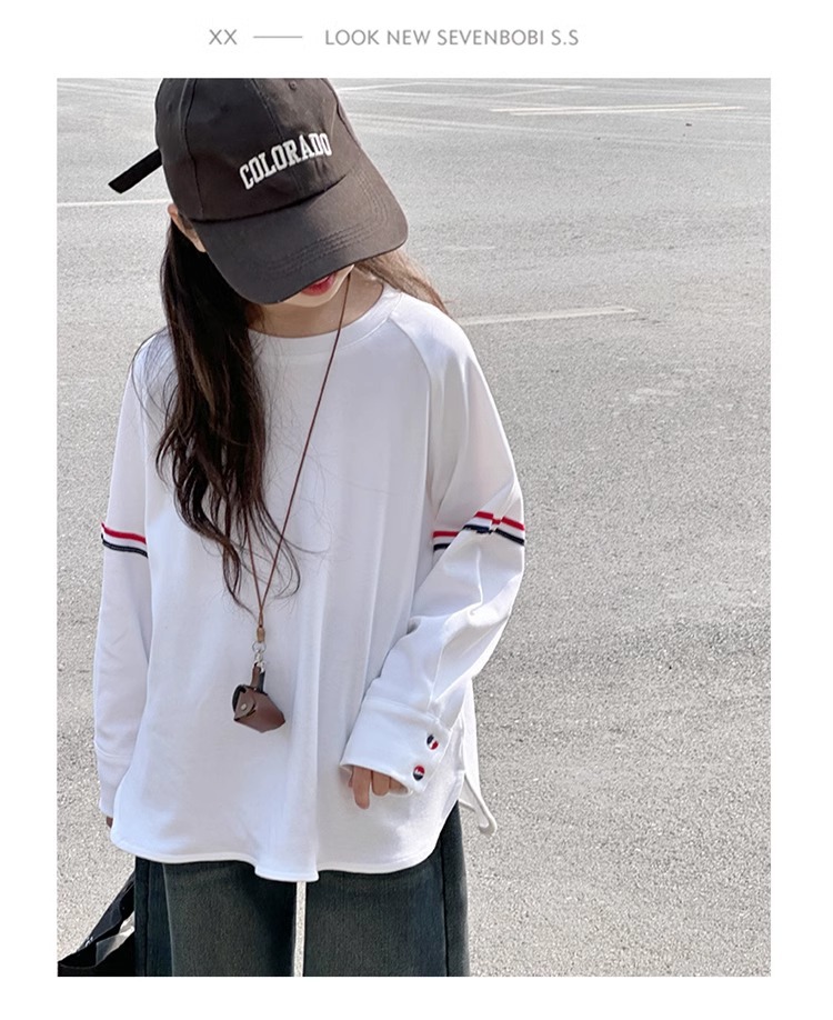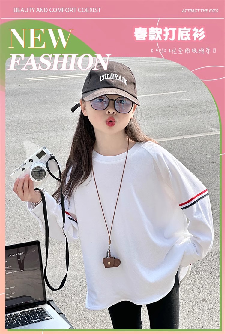 여아 라운드 넥 디자인 화이트 티셔츠 아동용 2025 봄 한국어 버전 새로운 긴팔 다용도 탑 트렌디 바닥 셔츠스토어 가기