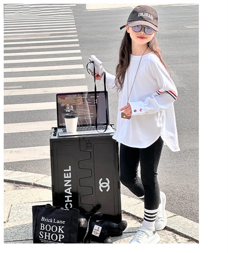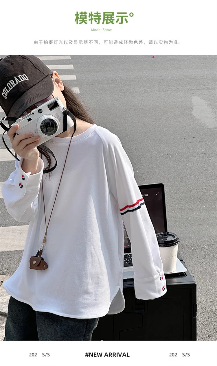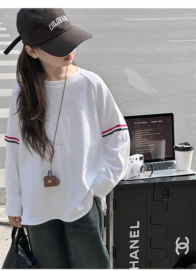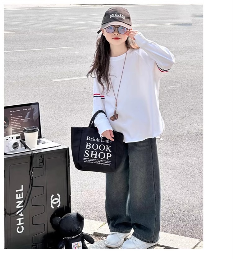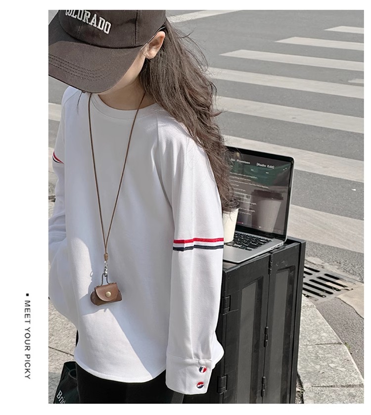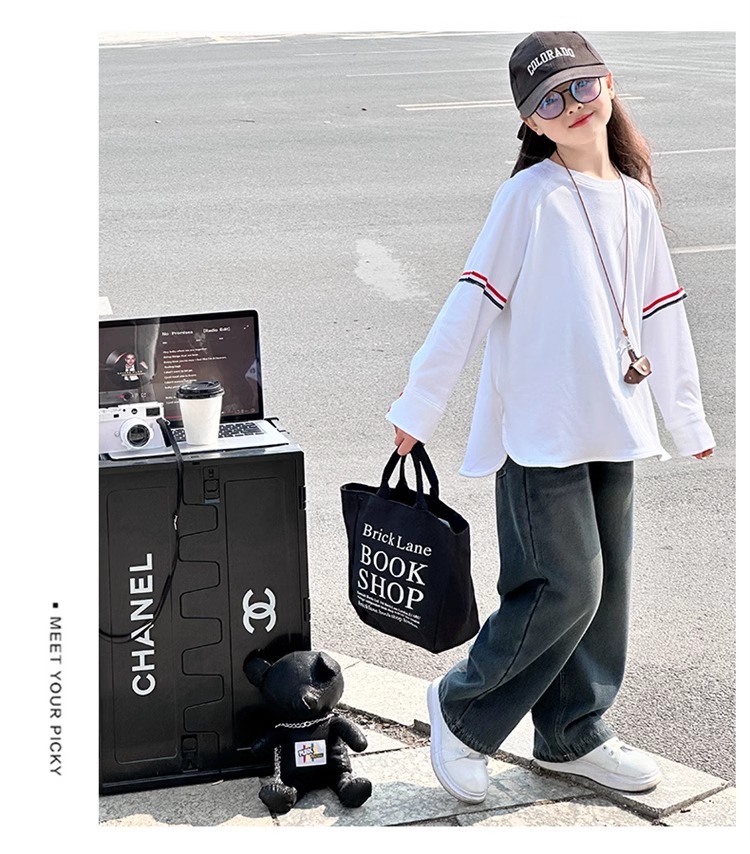 여아 라운드 넥 디자인 화이트 티셔츠 아동용 2025 봄 한국어 버전 새로운 긴팔 다용도 탑 트렌디 바닥 셔츠스토어 가기