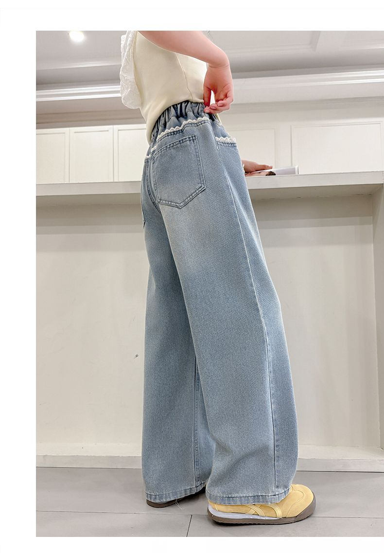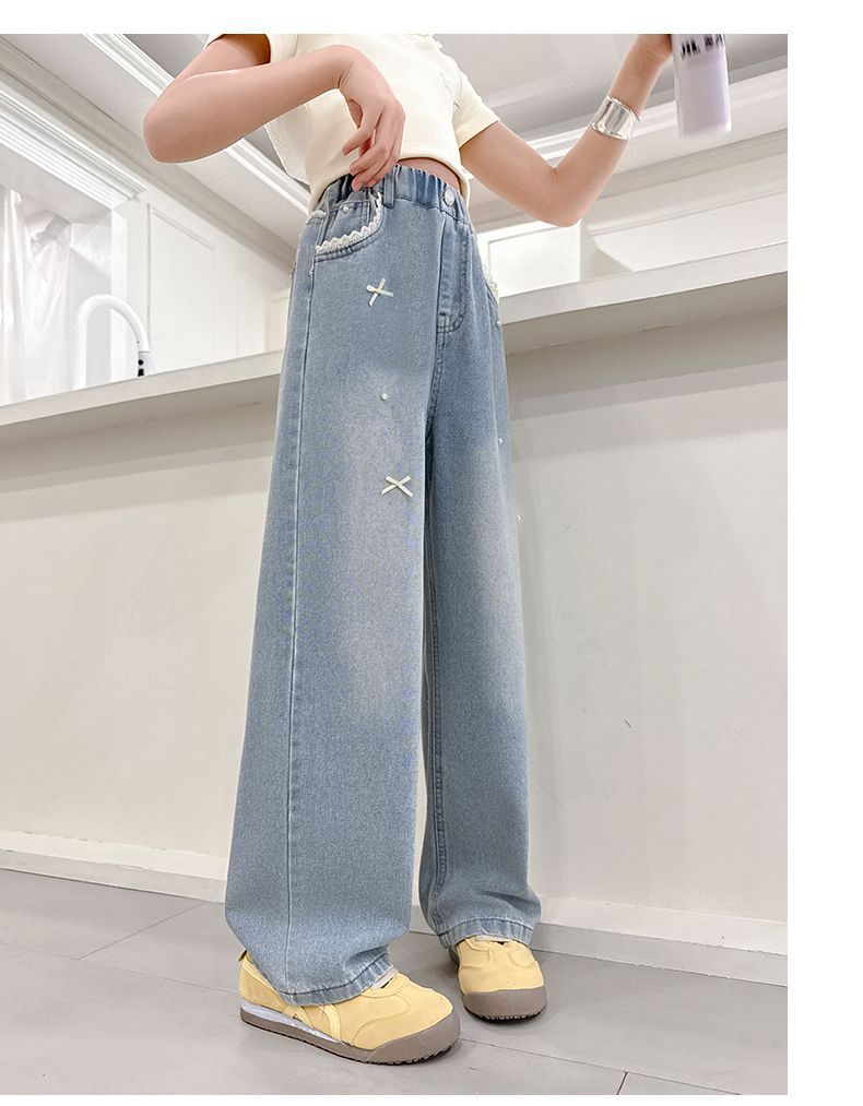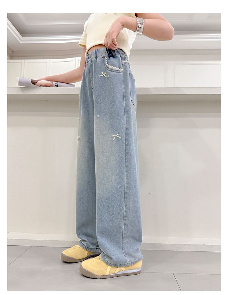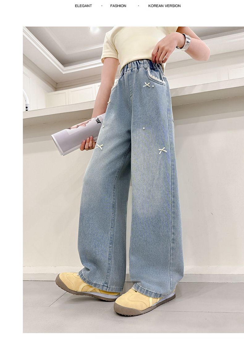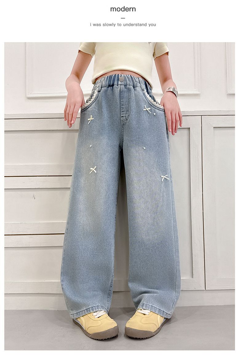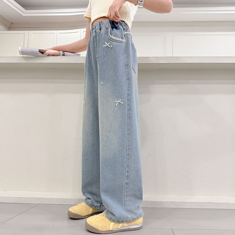 여아 여름 얇은 밝은 색상의 와이드 팬츠 청바지 2025 새로운 스타일 중대형 아동 한국 스타일 캐주얼 바지 트렌디스토어 가기