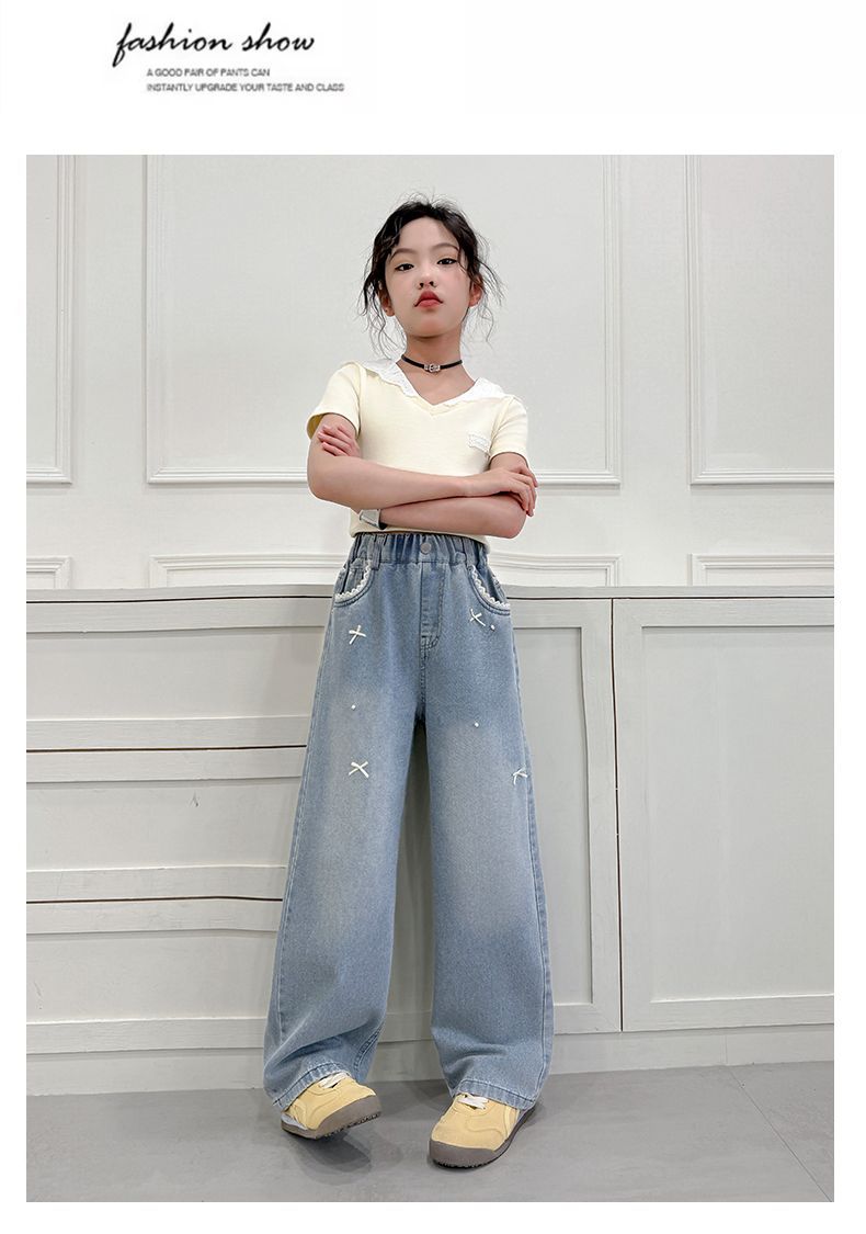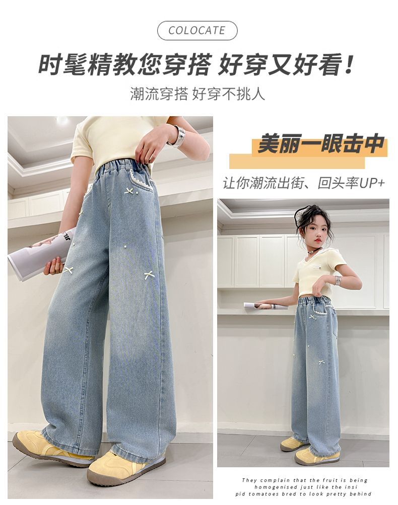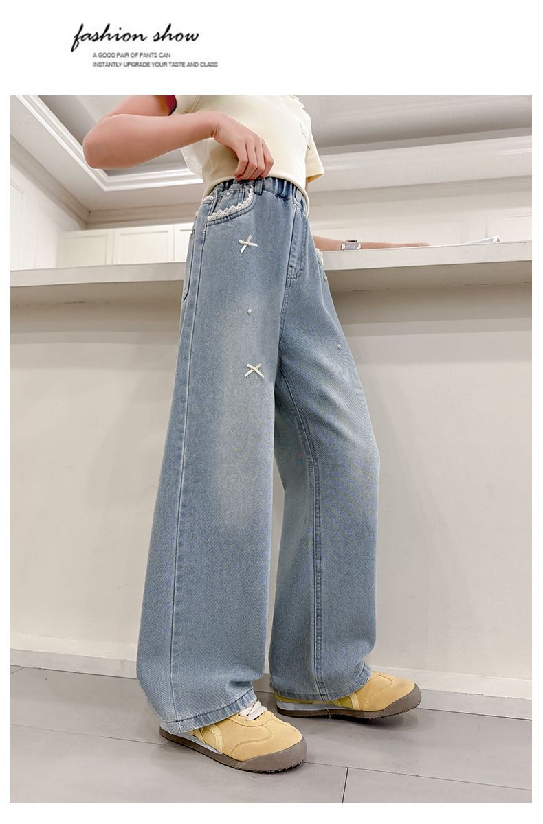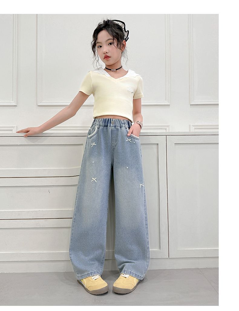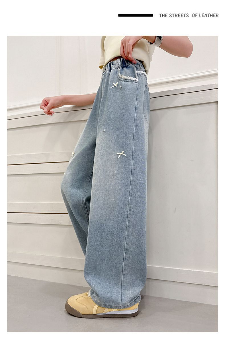 여아 여름 얇은 밝은 색상의 와이드 팬츠 청바지 2025 새로운 스타일 중대형 아동 한국 스타일 캐주얼 바지 트렌디스토어 가기