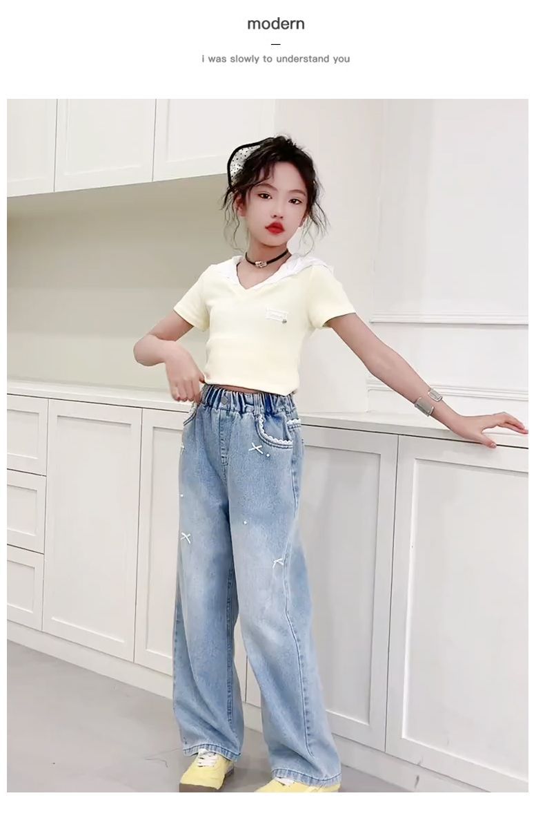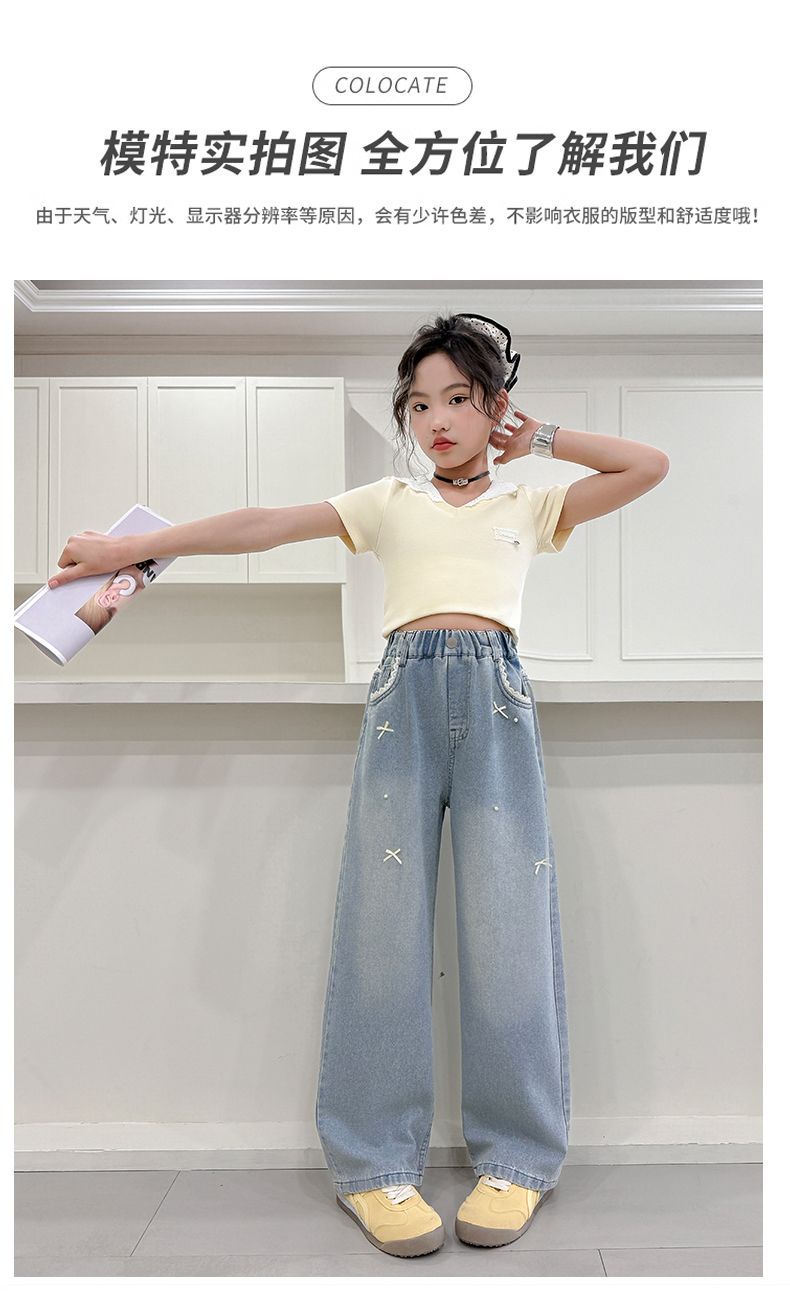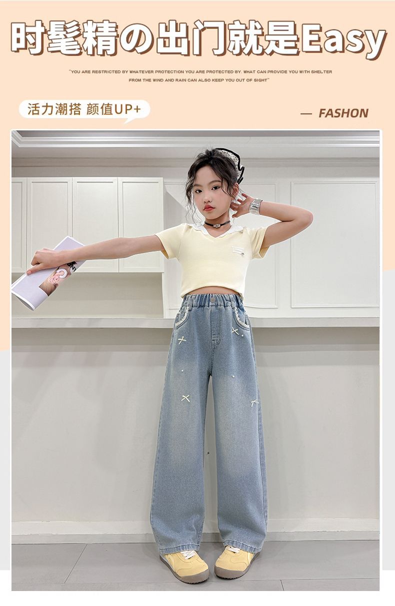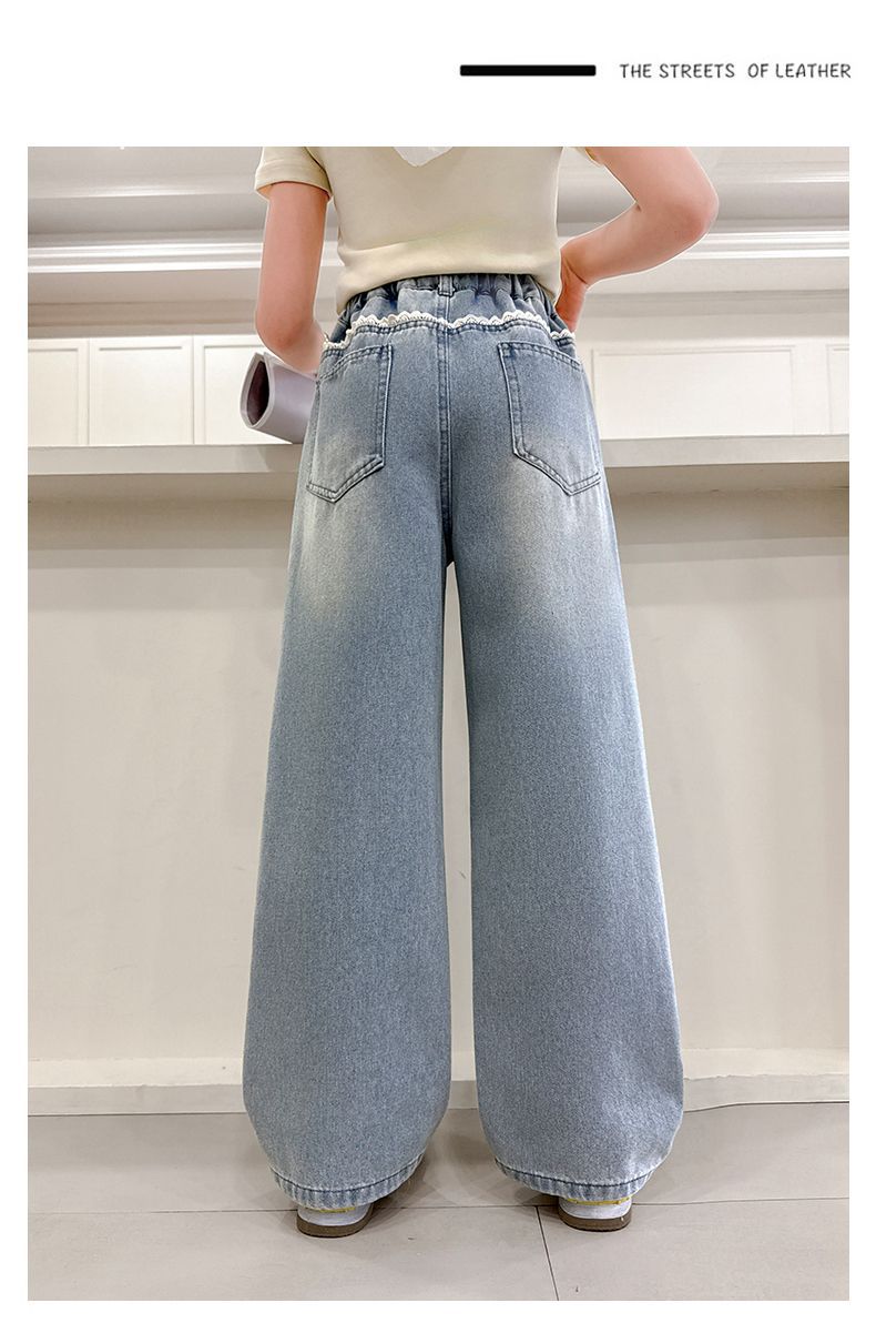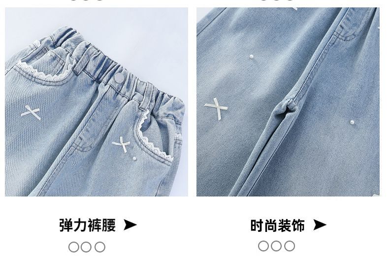 여아 여름 얇은 밝은 색상의 와이드 팬츠 청바지 2025 새로운 스타일 중대형 아동 한국 스타일 캐주얼 바지 트렌디스토어 가기