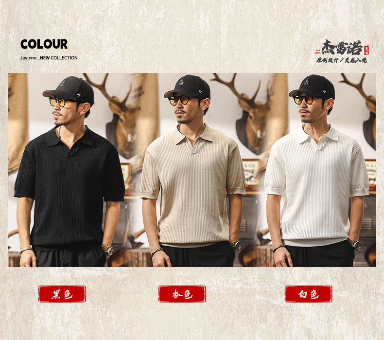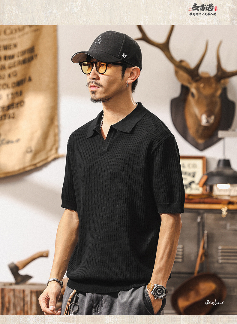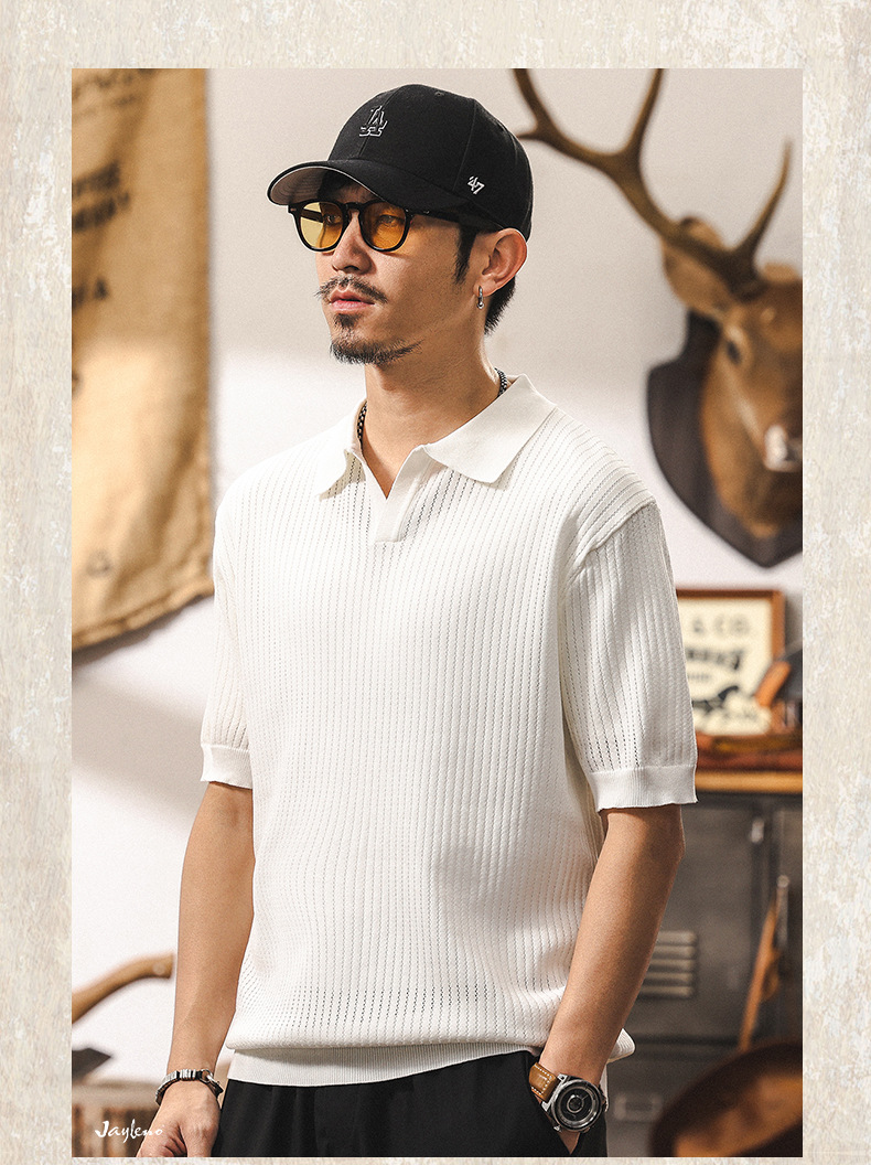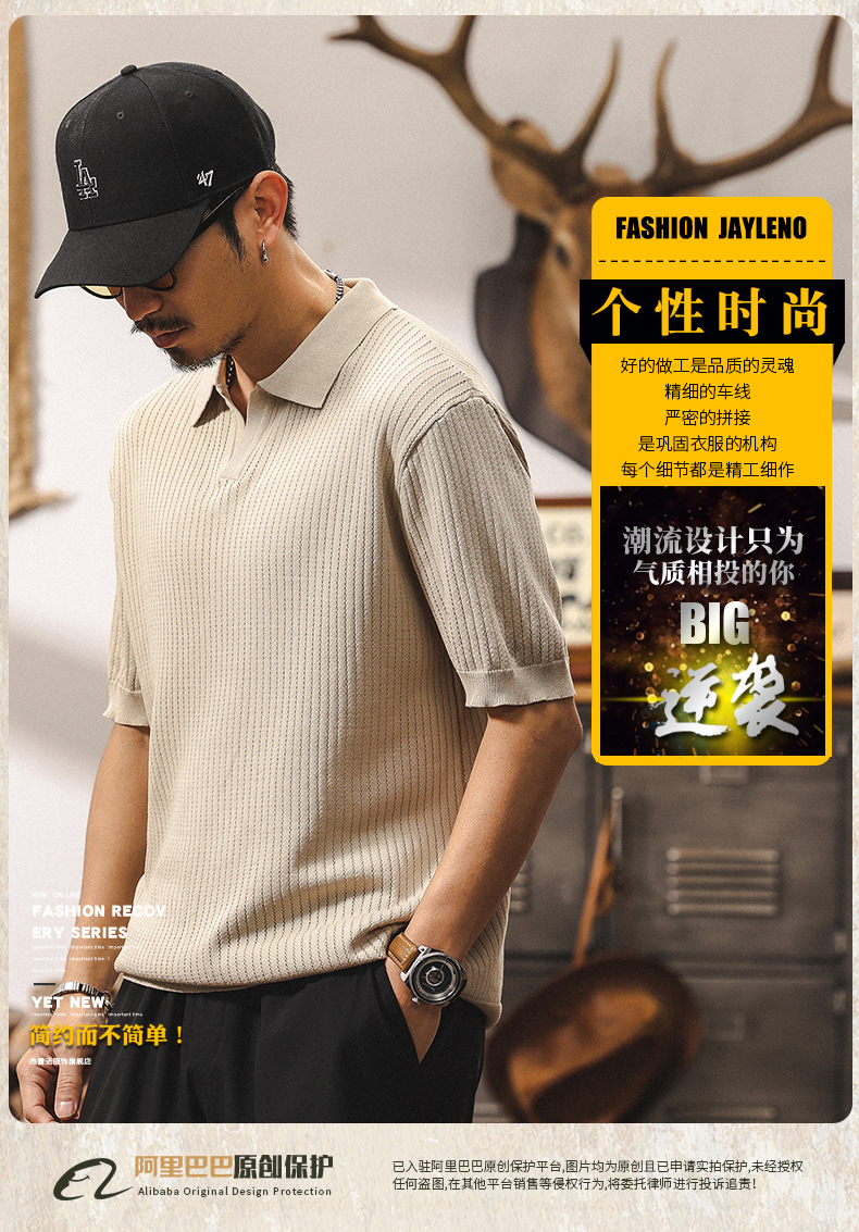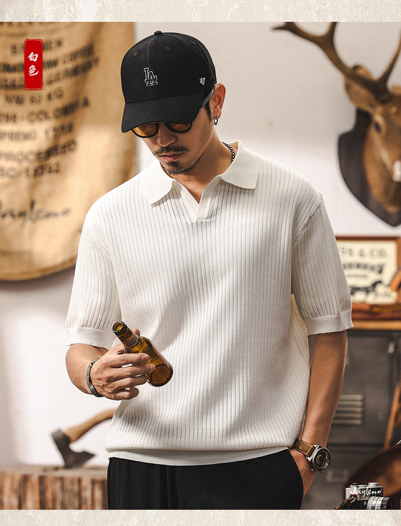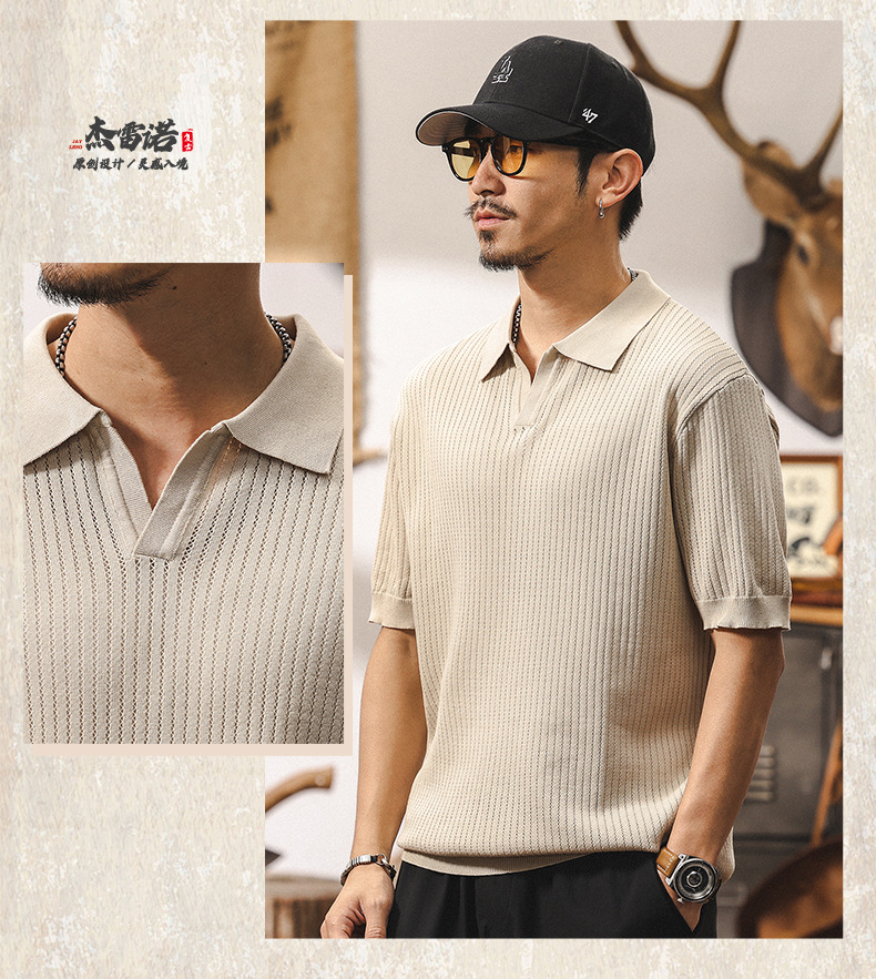 쿨 아이스 실크 래핑 갈매기 칼라 폴로 셔츠 남자 반팔 스웨터 하이 엔드 여름 미국 패션 브랜드 티셔츠 남성 티셔츠