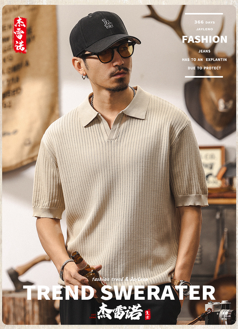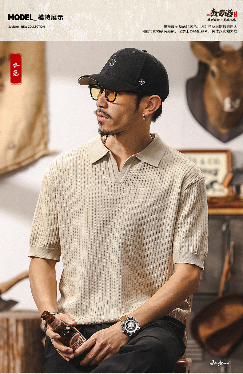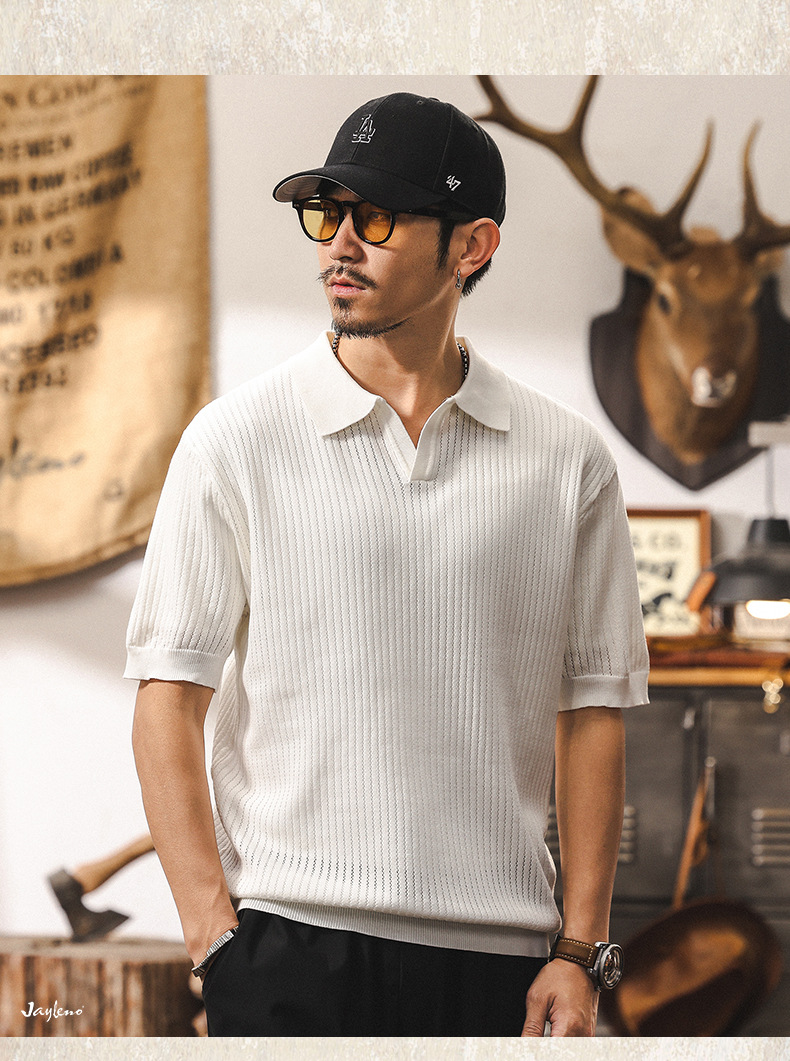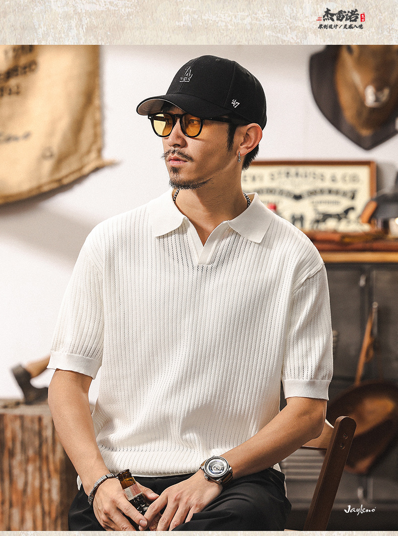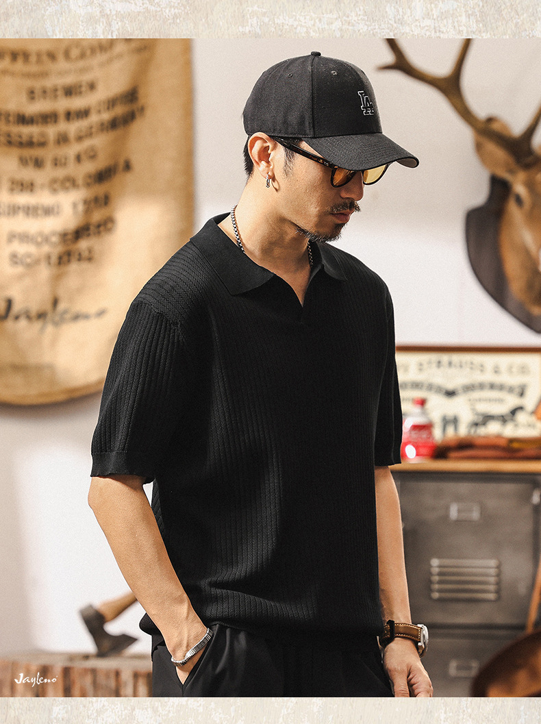 쿨 아이스 실크 래핑 갈매기 칼라 폴로 셔츠 남자 반팔 스웨터 하이 엔드 여름 미국 패션 브랜드 티셔츠 남성 티셔츠