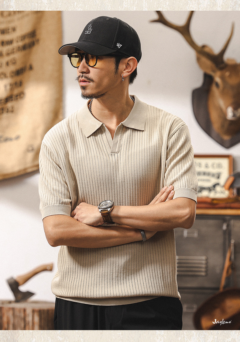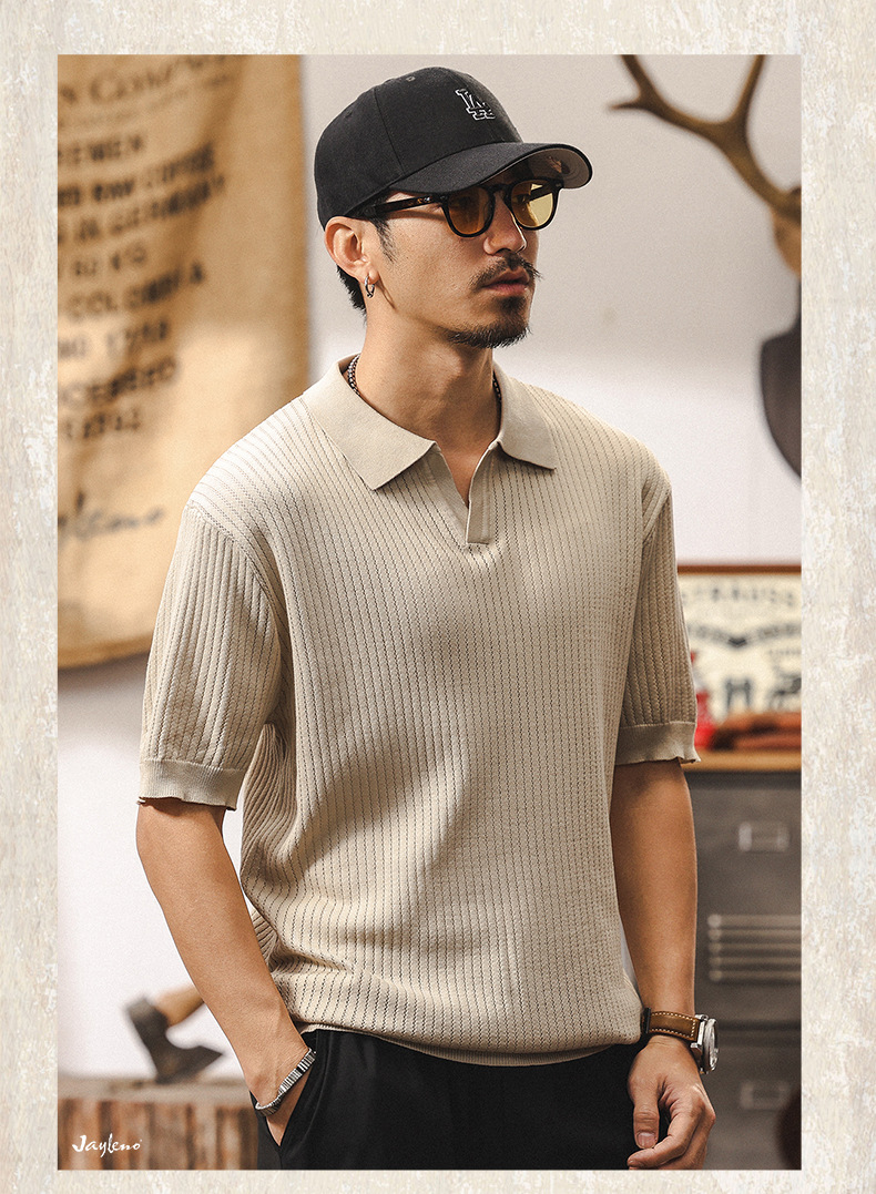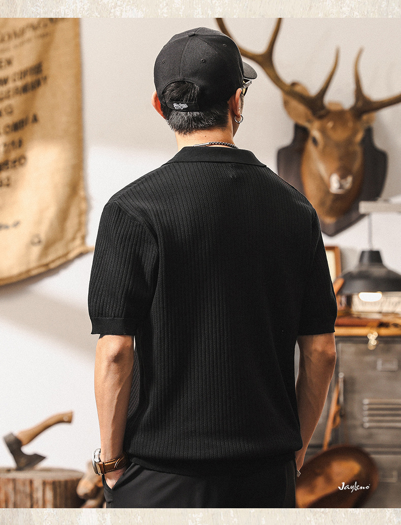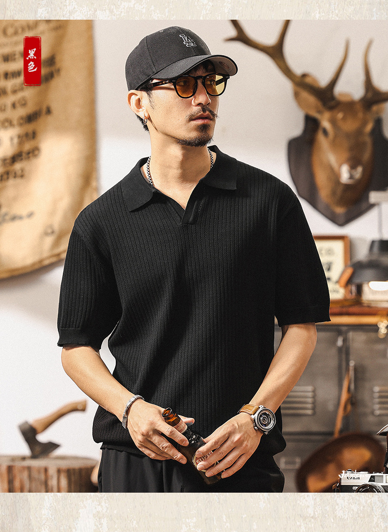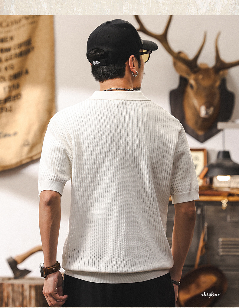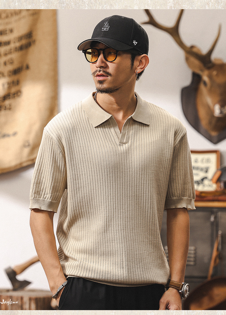 쿨 아이스 실크 래핑 갈매기 칼라 폴로 셔츠 남자 반팔 스웨터 하이 엔드 여름 미국 패션 브랜드 티셔츠 남성 티셔츠