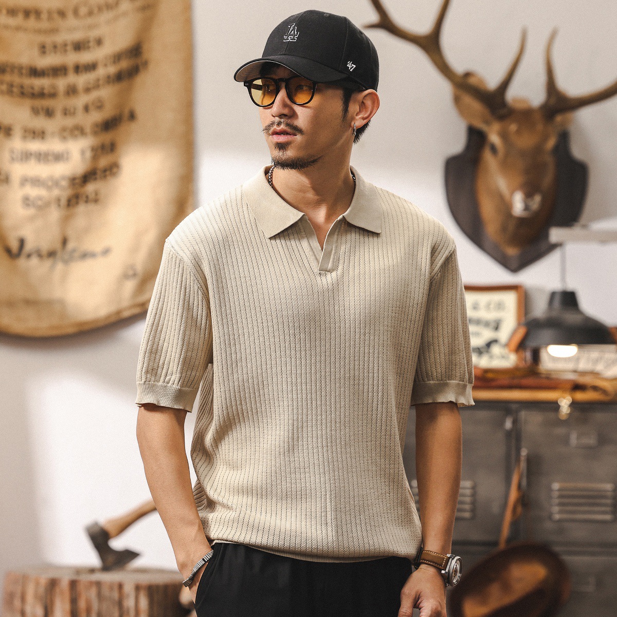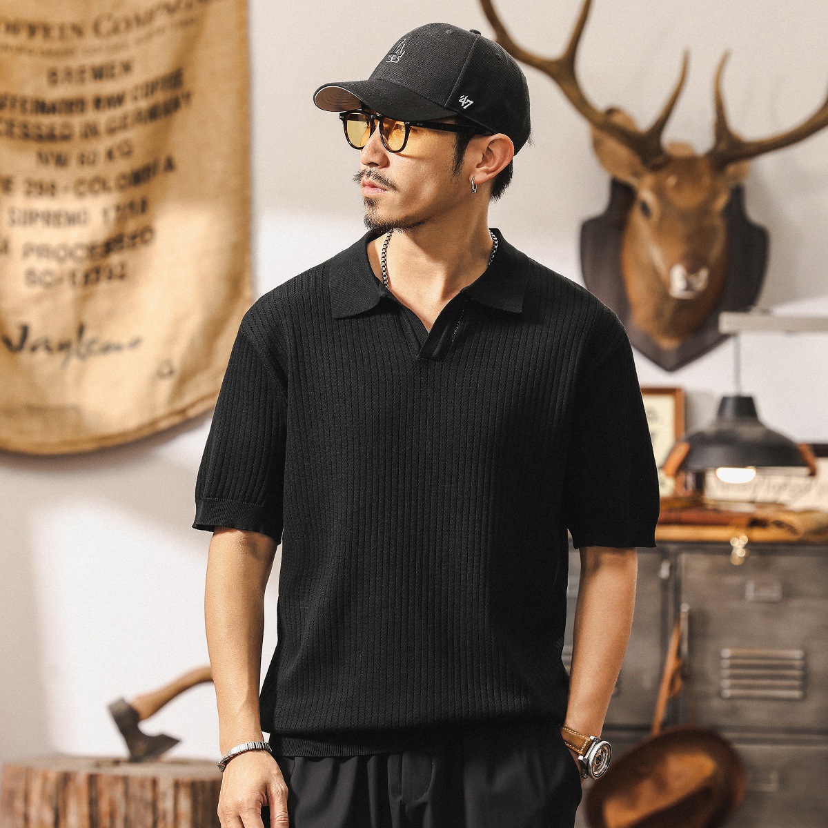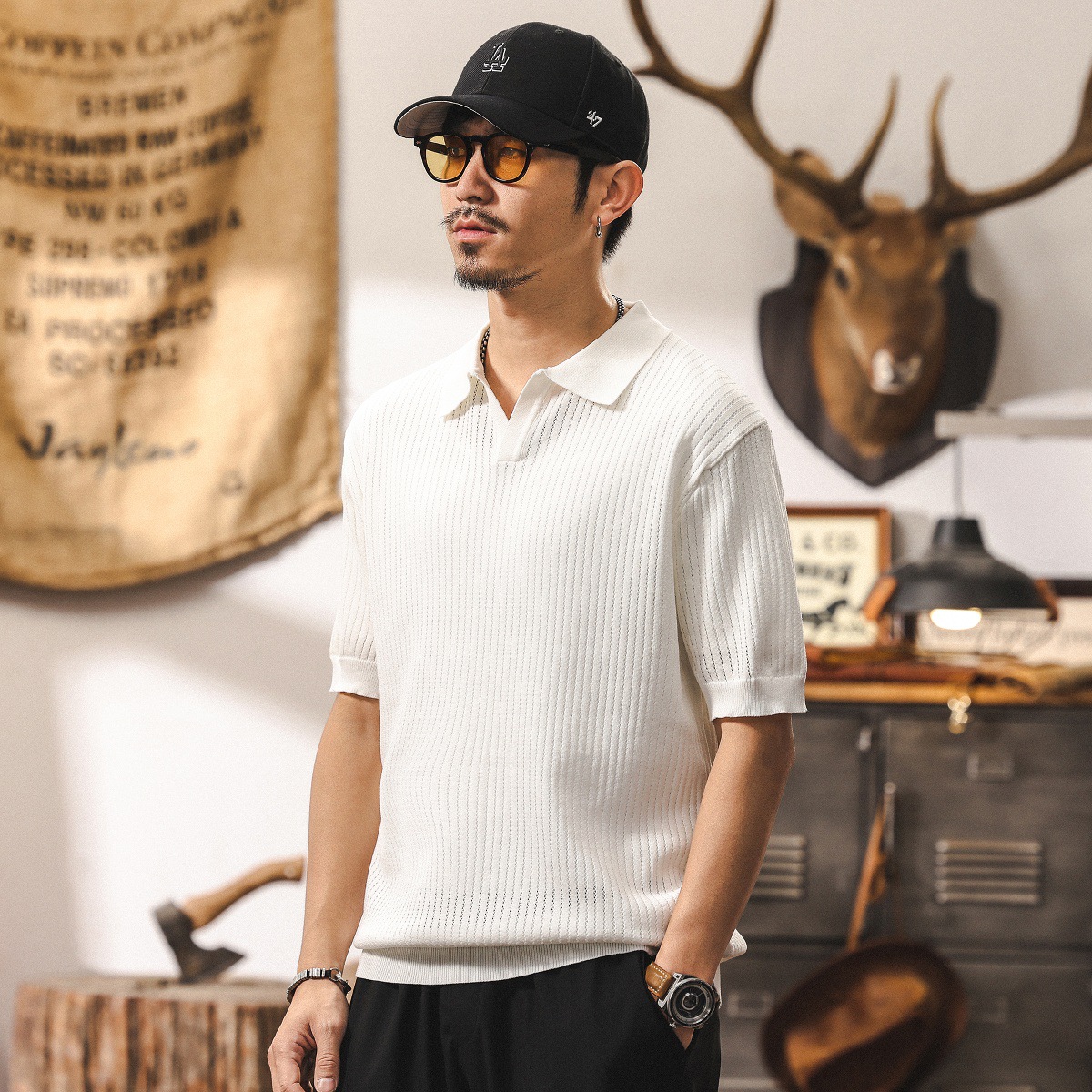 쿨 아이스 실크 래핑 갈매기 칼라 폴로 셔츠 남자 반팔 스웨터 하이 엔드 여름 미국 패션 브랜드 티셔츠 남성 티셔츠스토어 가기