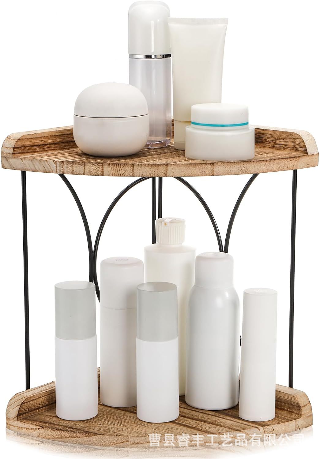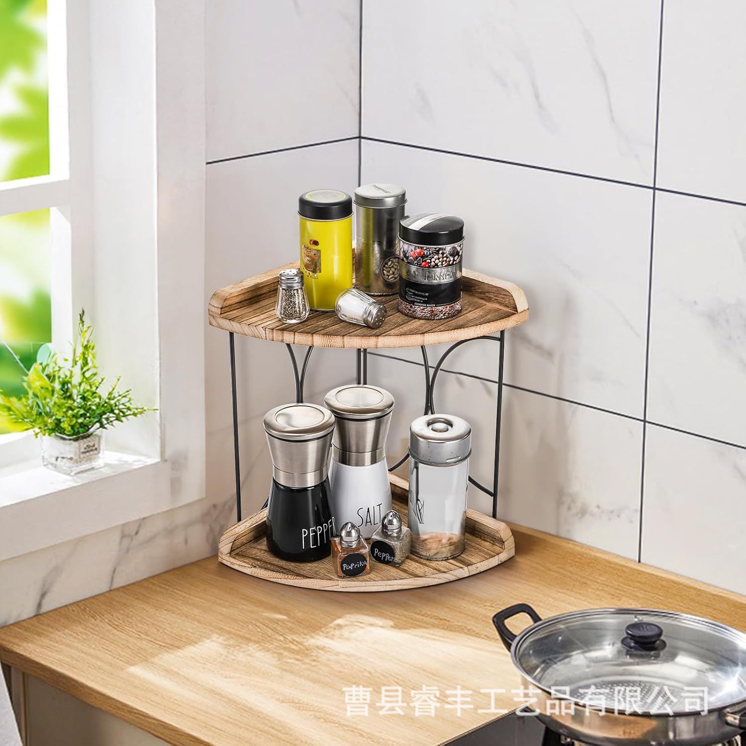 국경 간 2층 욕실 보관함 나무 화장대 코너 선반 주방 조미료 랙 화장품 삼각형 보관함