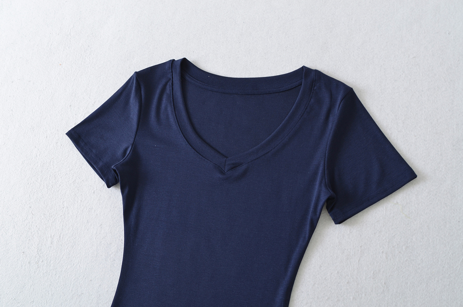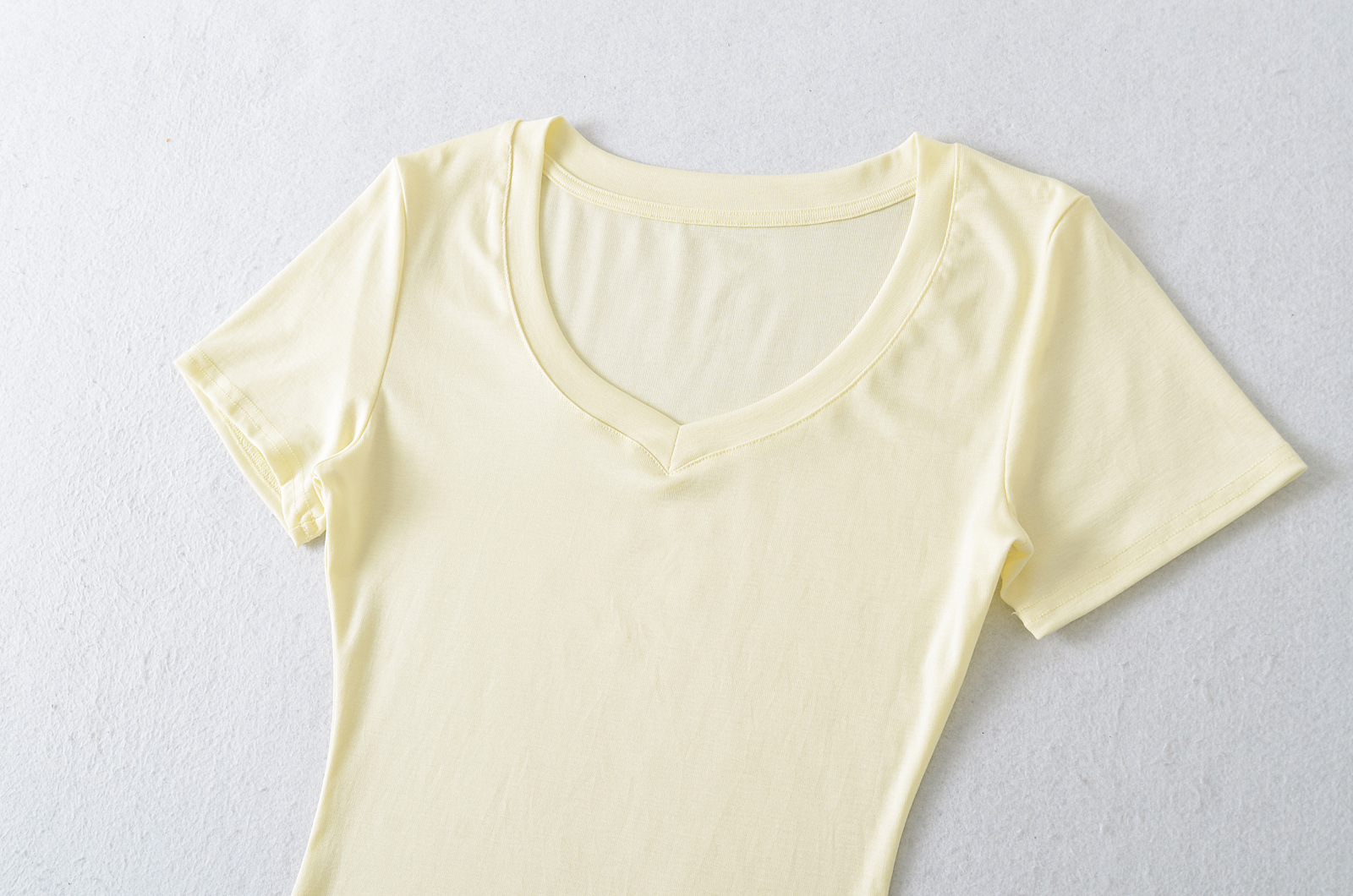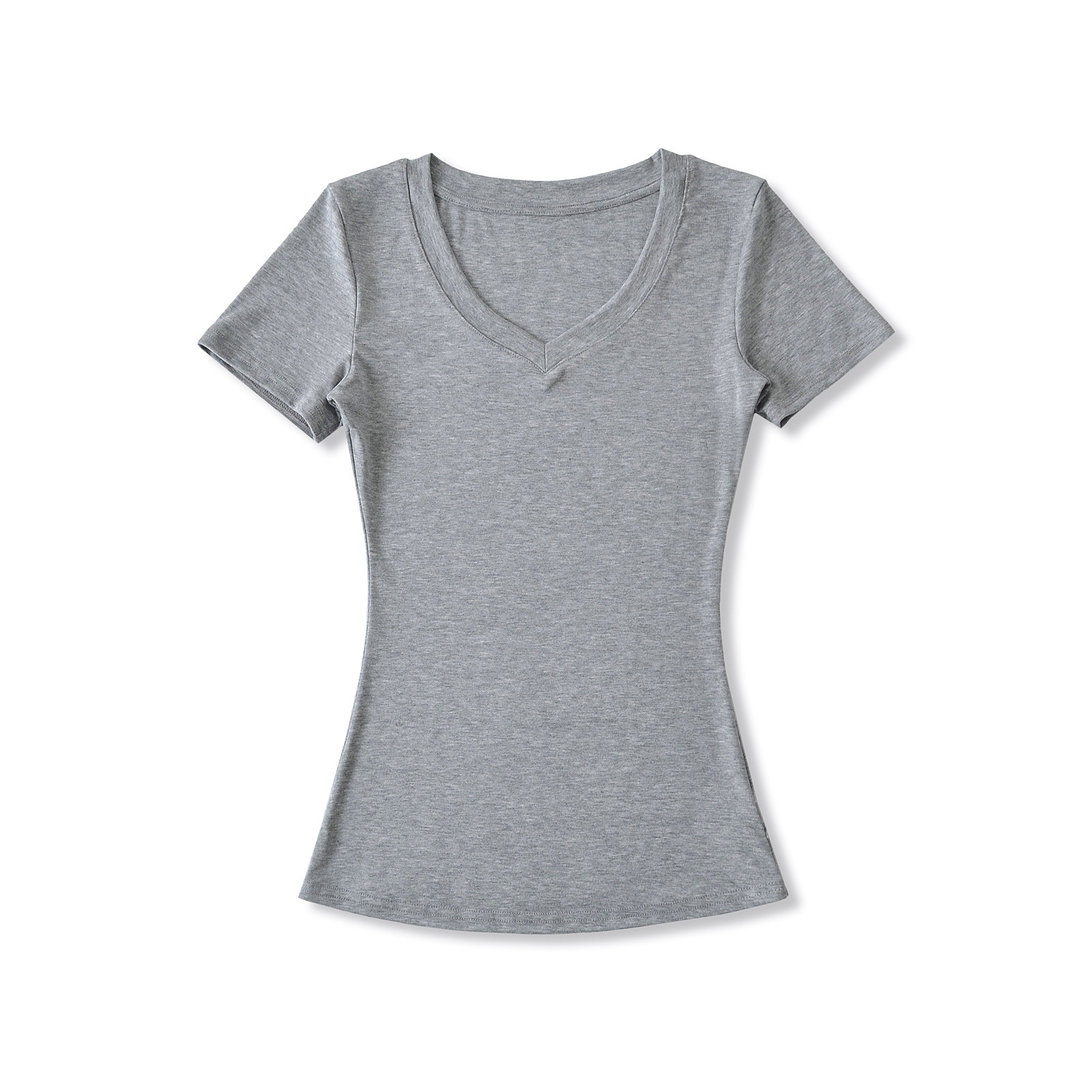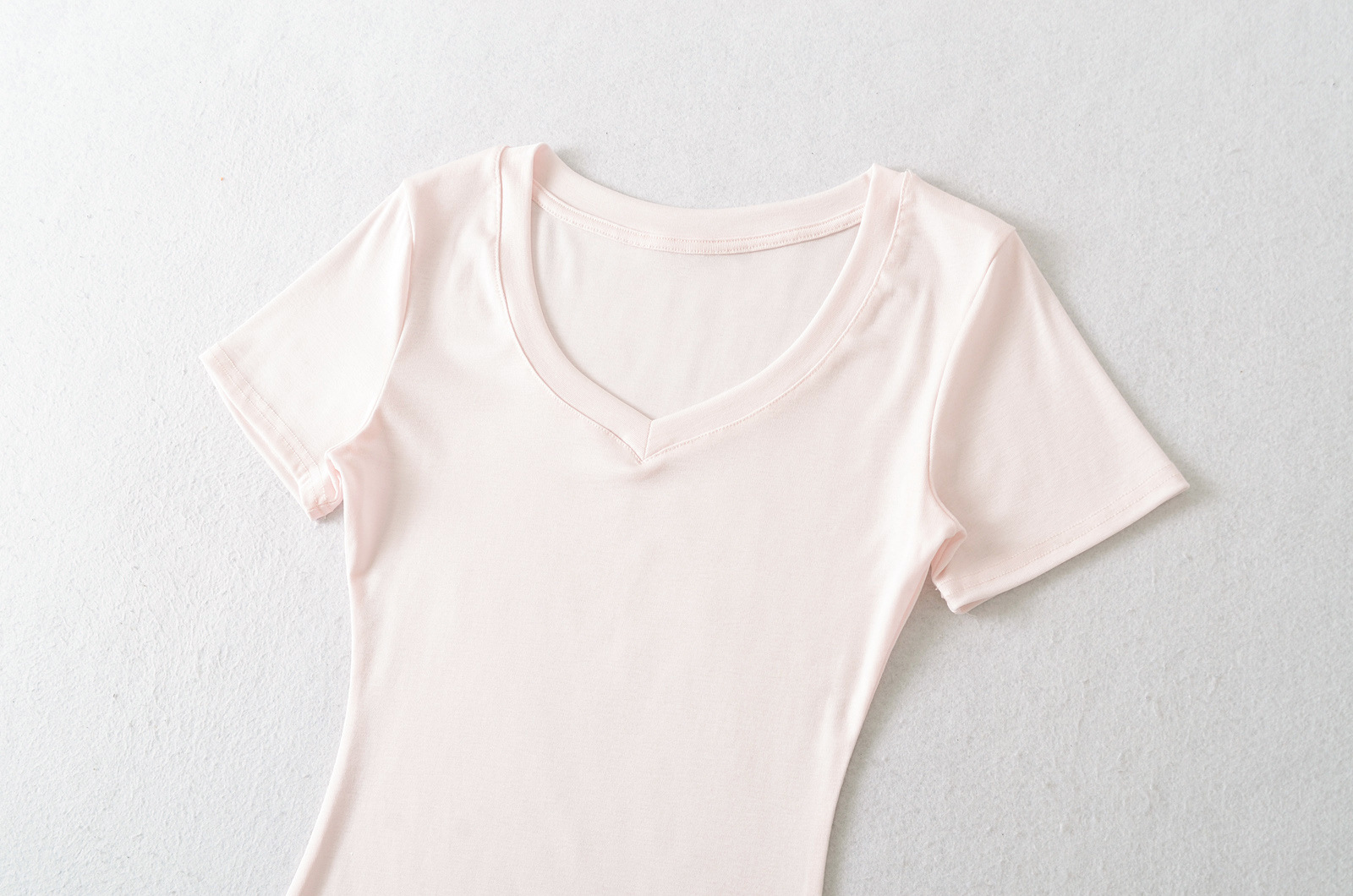 Tencel 속건성 소프트 V 넥 반팔 티셔츠 카세트 타이트 스트레치 슬리밍 라운드 넥 탑 여성 여름 유럽과 미국 배치스토어 가기