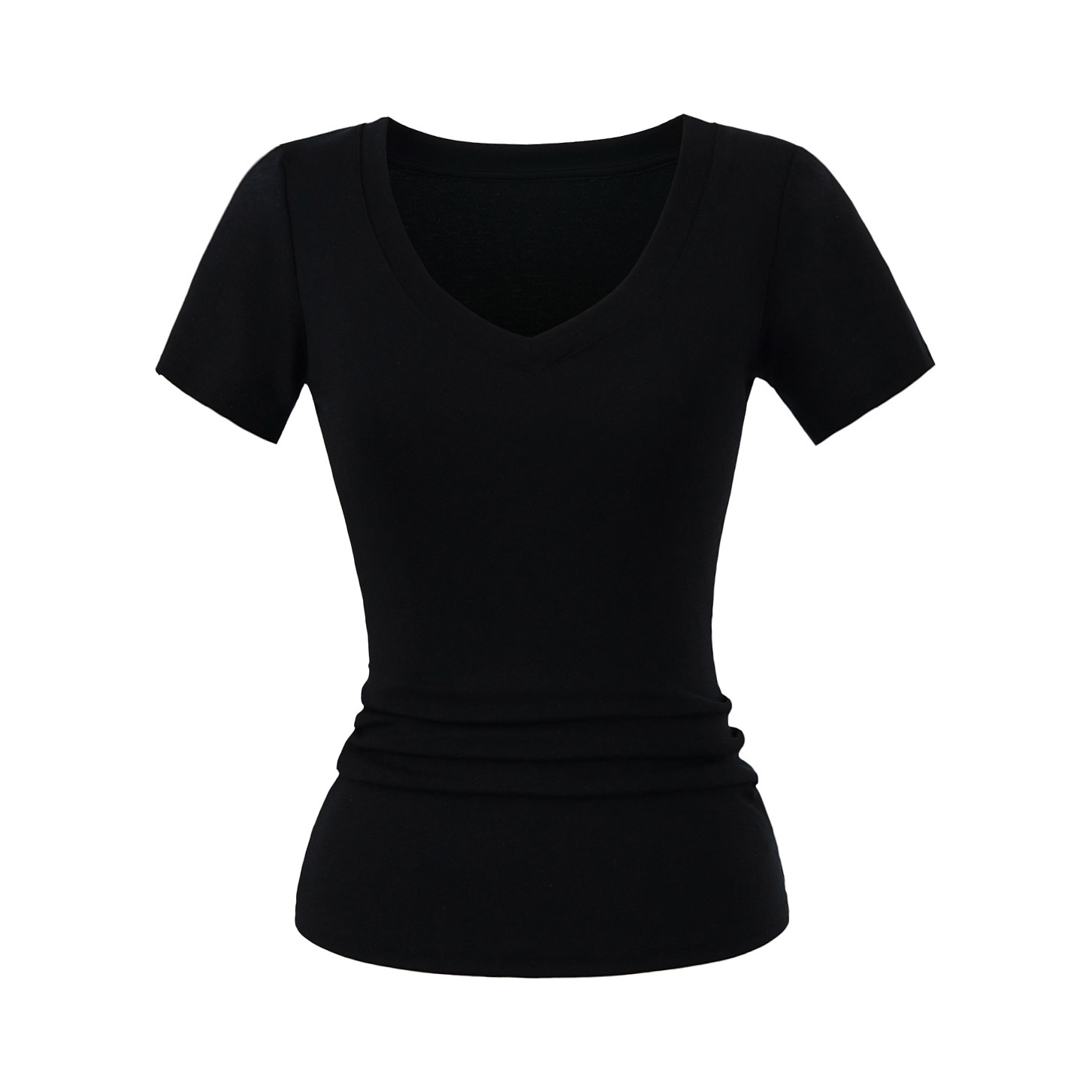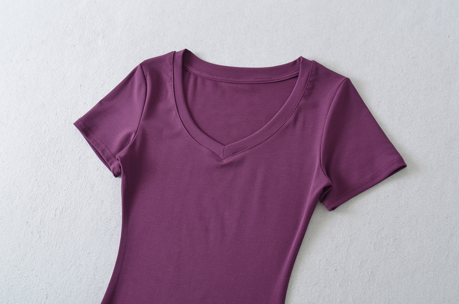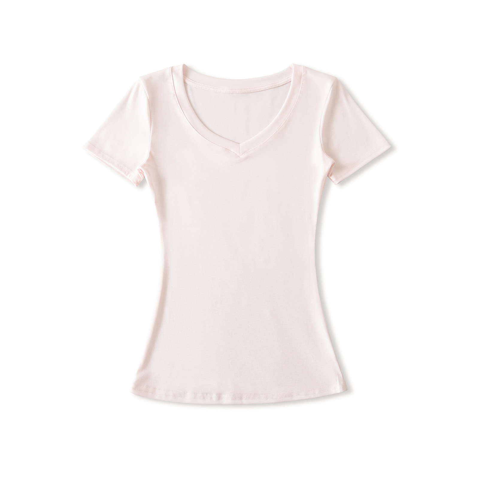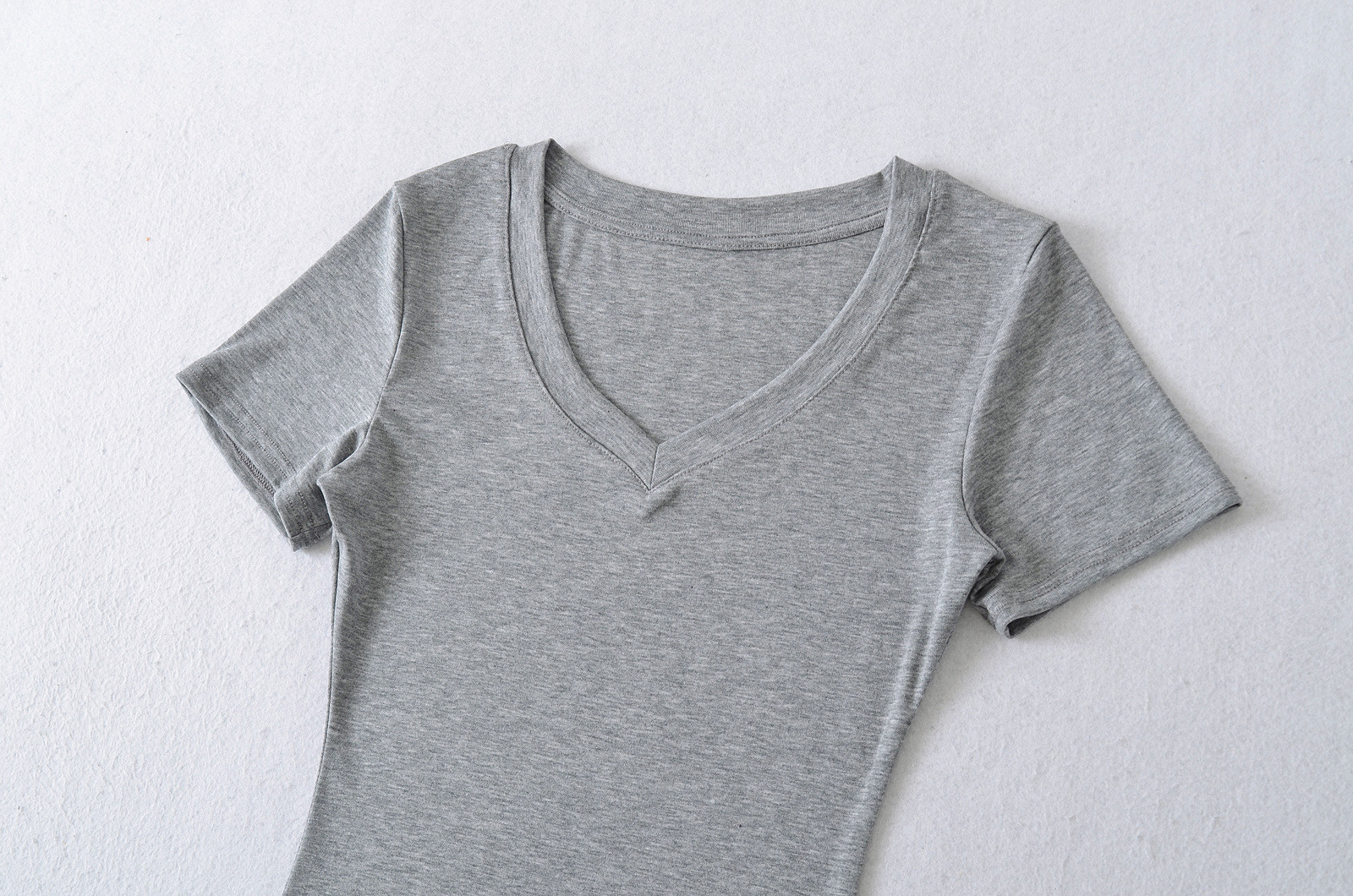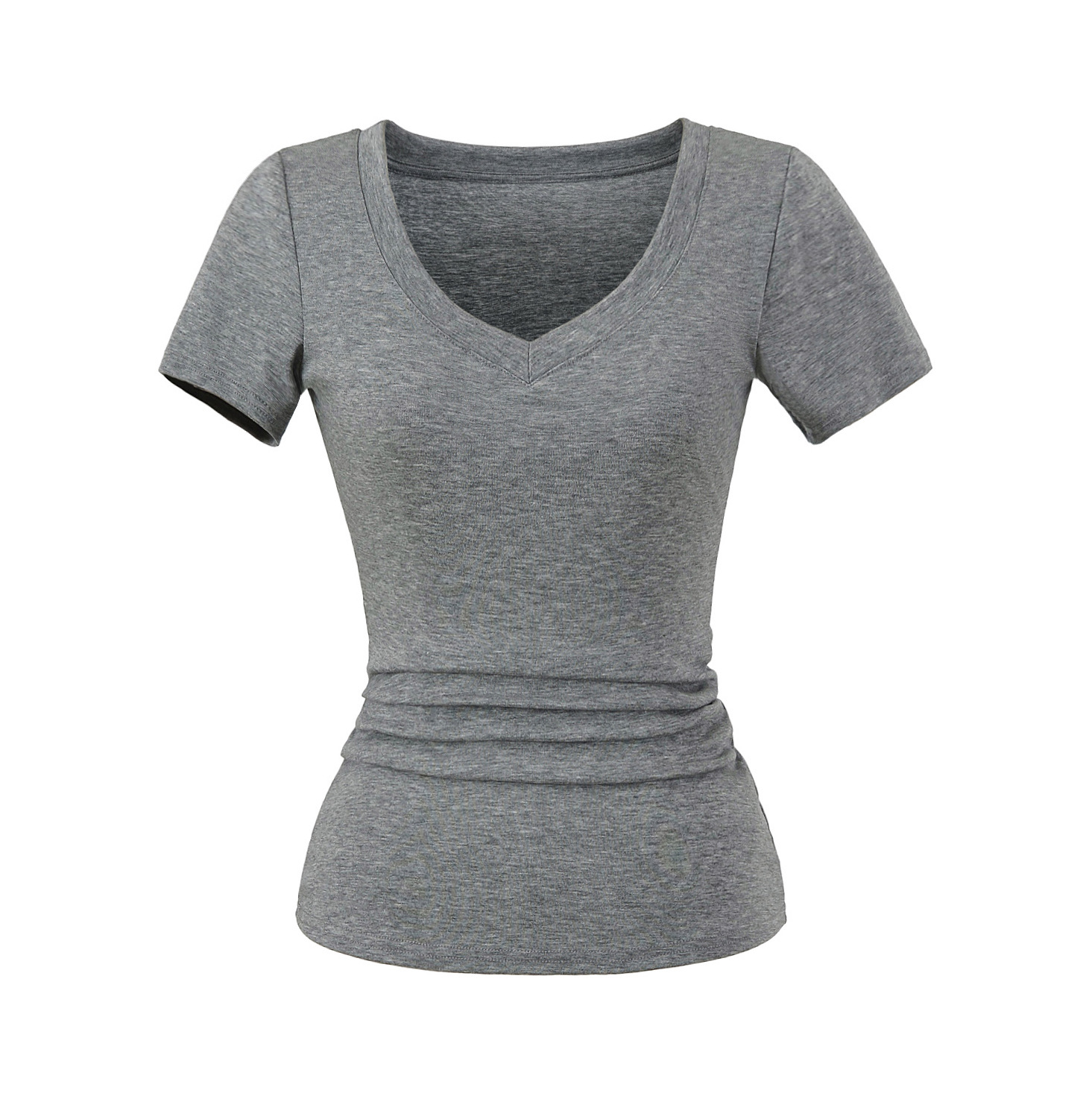 Tencel 속건성 소프트 V 넥 반팔 티셔츠 카세트 타이트 스트레치 슬리밍 라운드 넥 탑 여성 여름 유럽과 미국 배치스토어 가기
