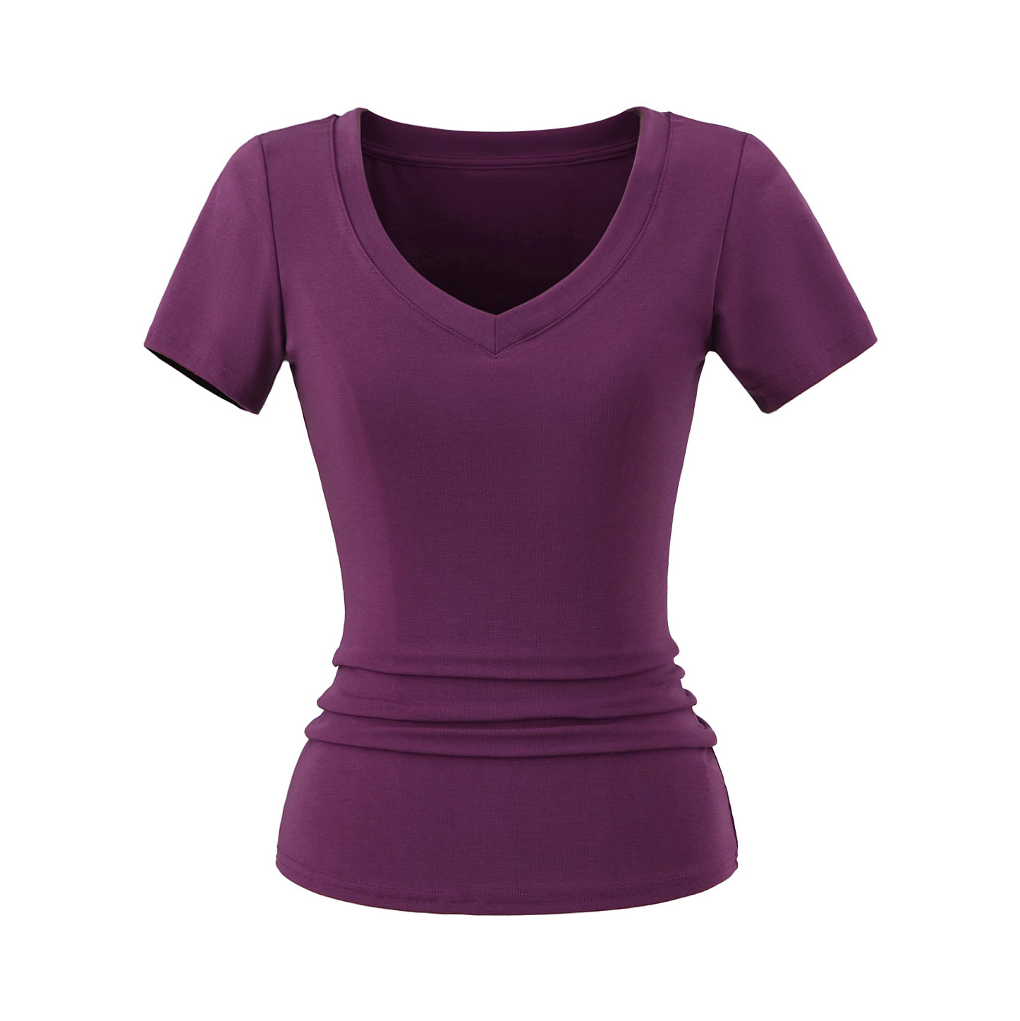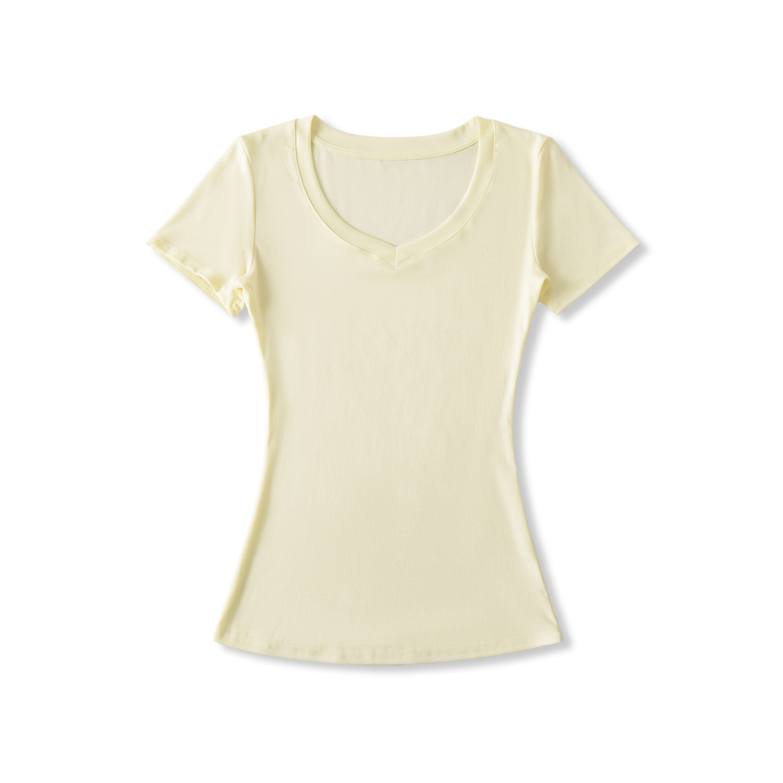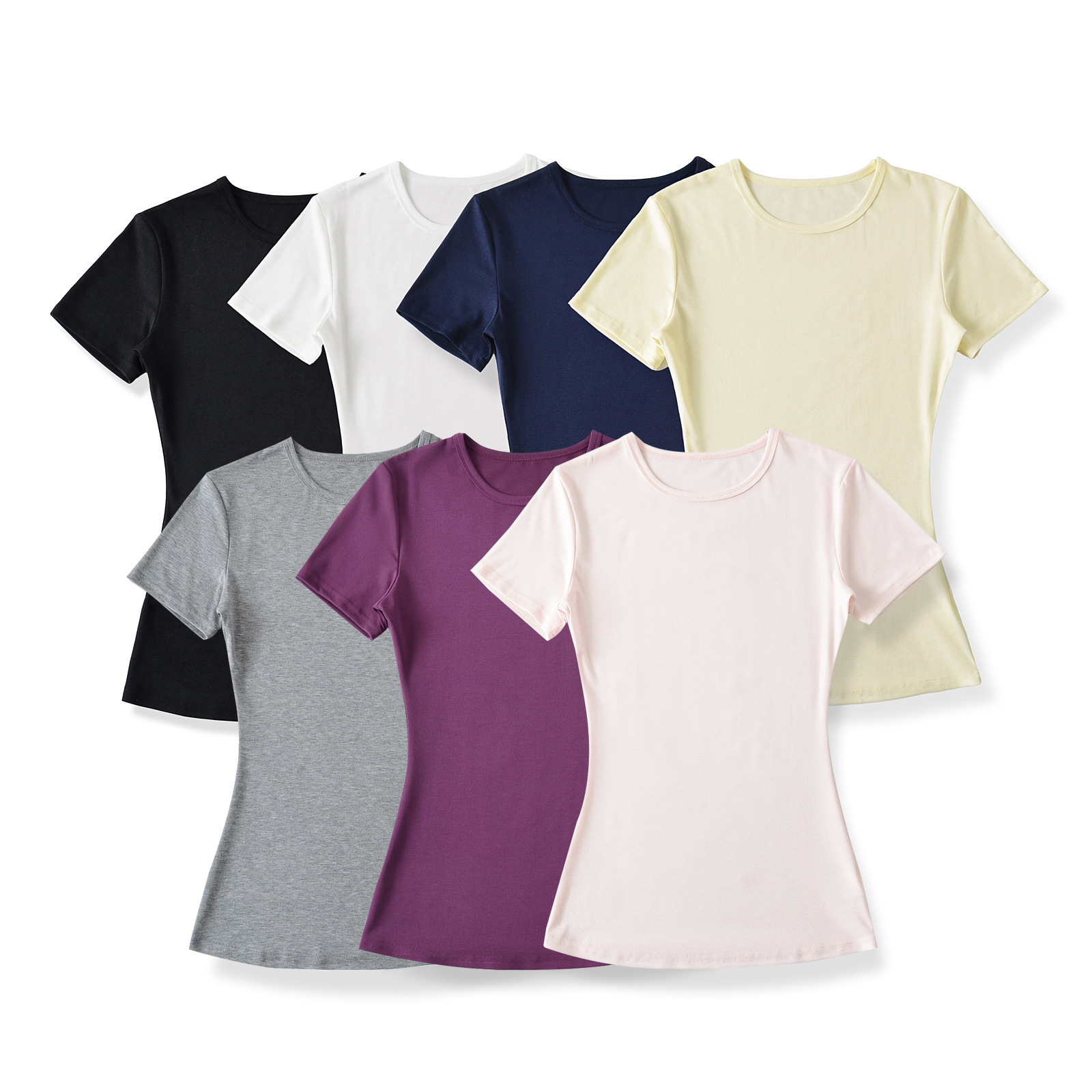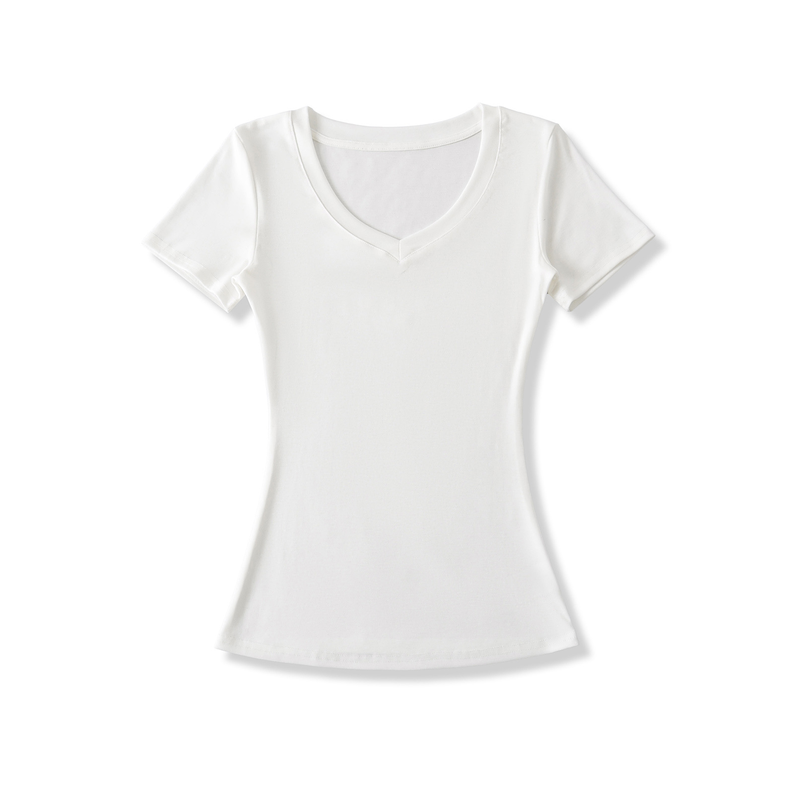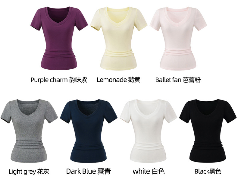 Tencel 속건성 소프트 V 넥 반팔 티셔츠 카세트 타이트 스트레치 슬리밍 라운드 넥 탑 여성 여름 유럽과 미국 배치스토어 가기