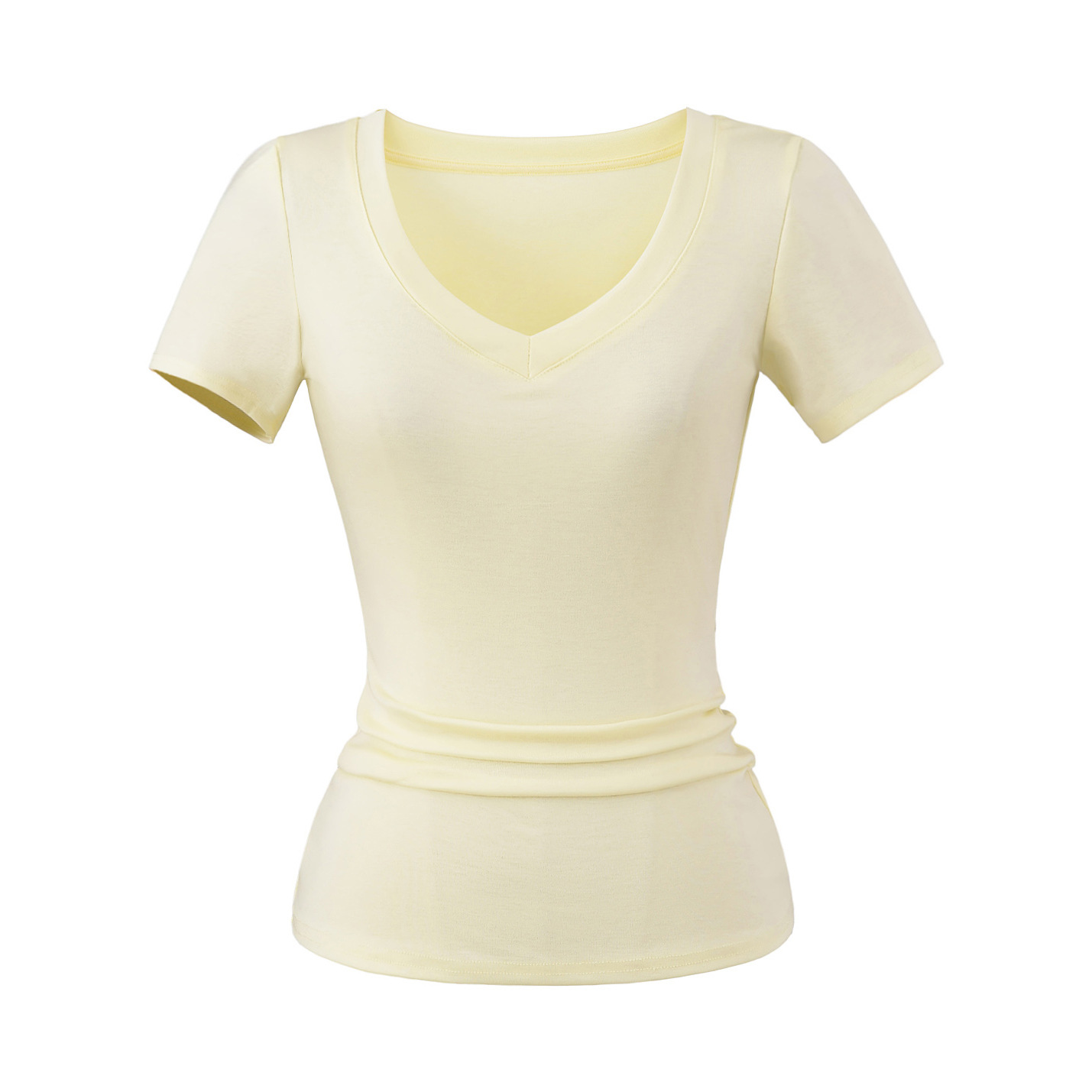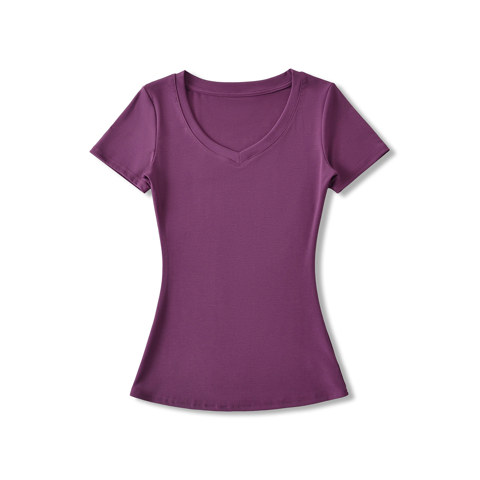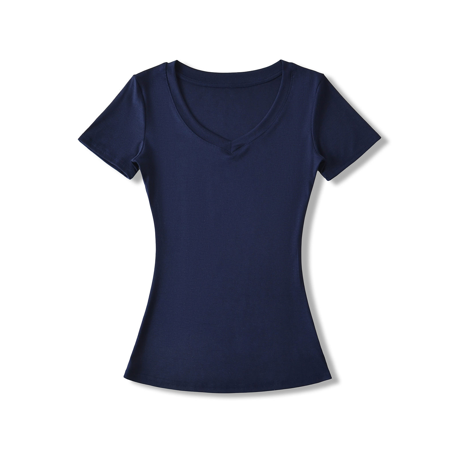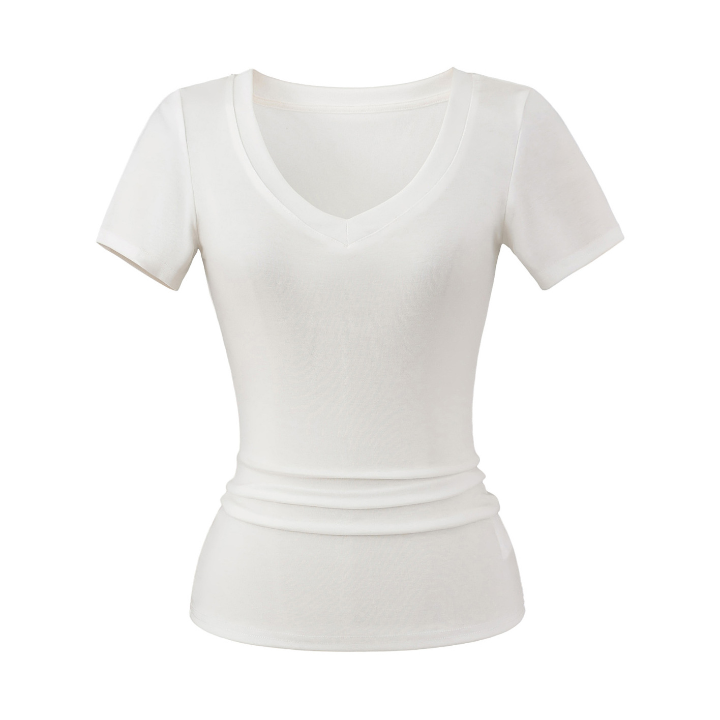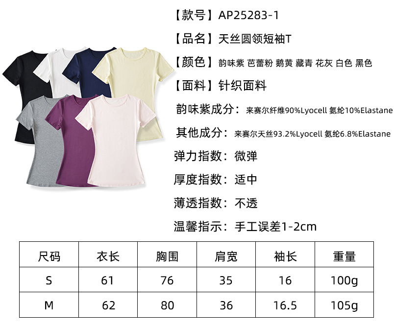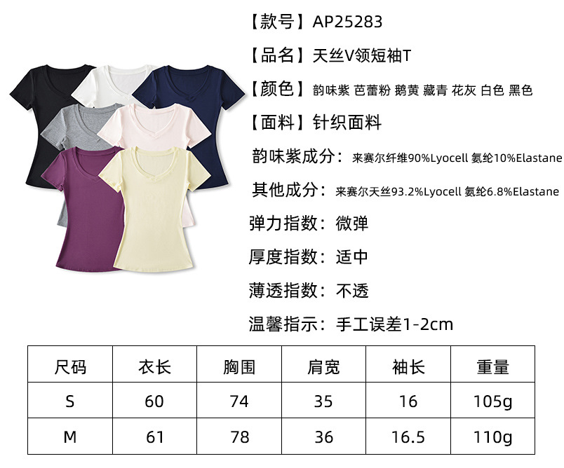 Tencel 속건성 소프트 V 넥 반팔 티셔츠 카세트 타이트 스트레치 슬리밍 라운드 넥 탑 여성 여름 유럽과 미국 배치