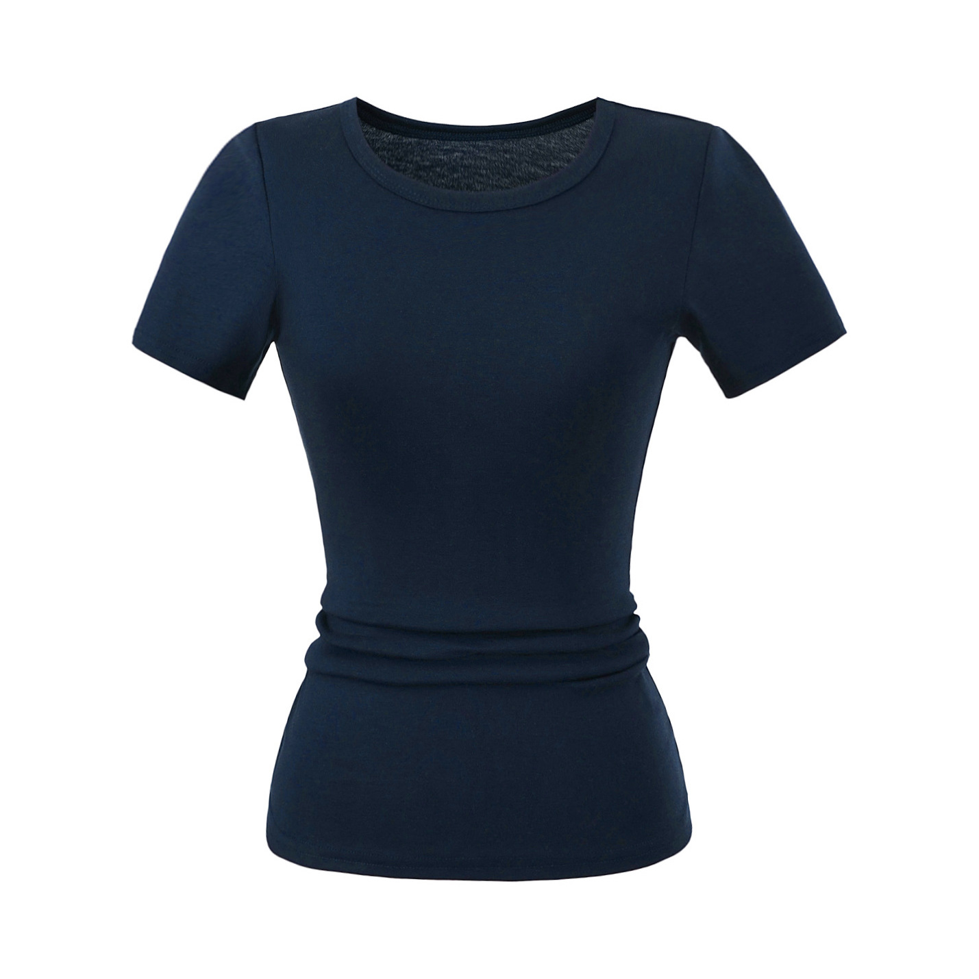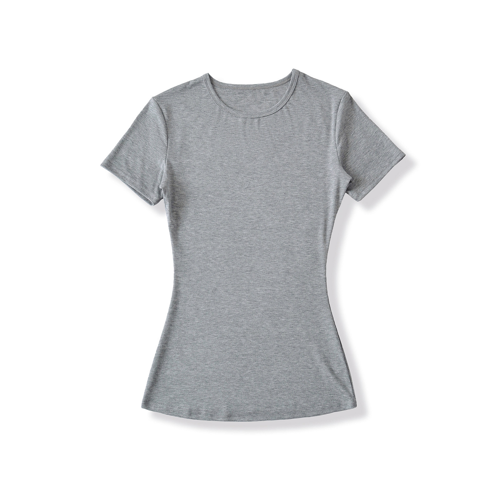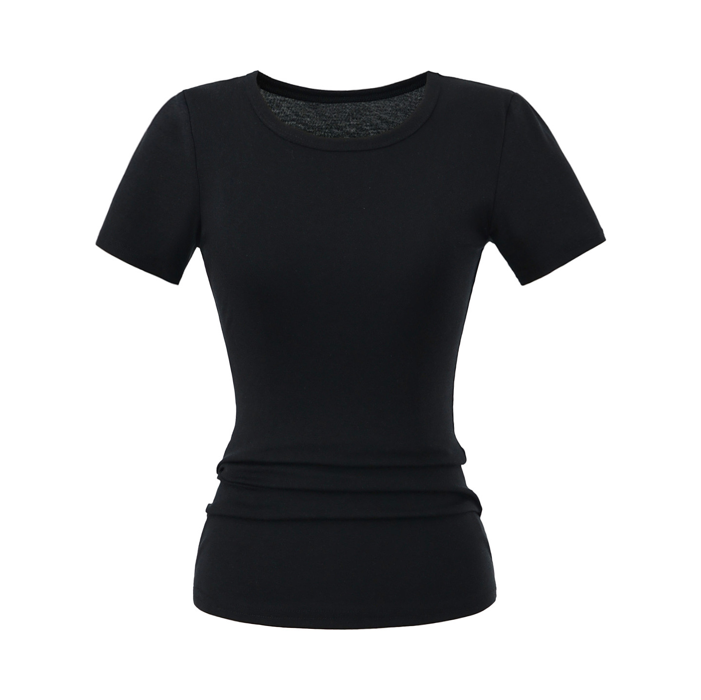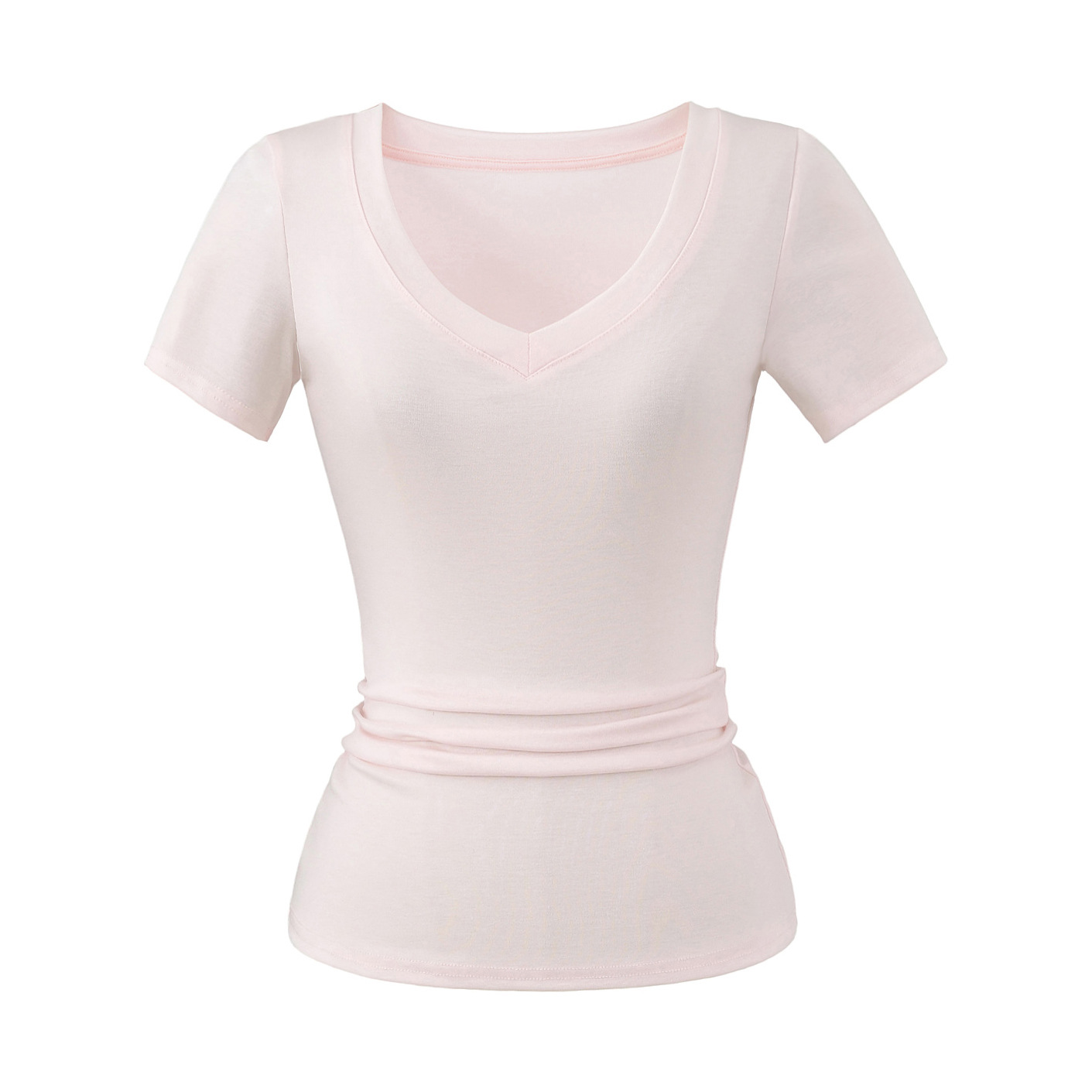 Tencel 속건성 소프트 V 넥 반팔 티셔츠 카세트 타이트 스트레치 슬리밍 라운드 넥 탑 여성 여름 유럽과 미국 배치