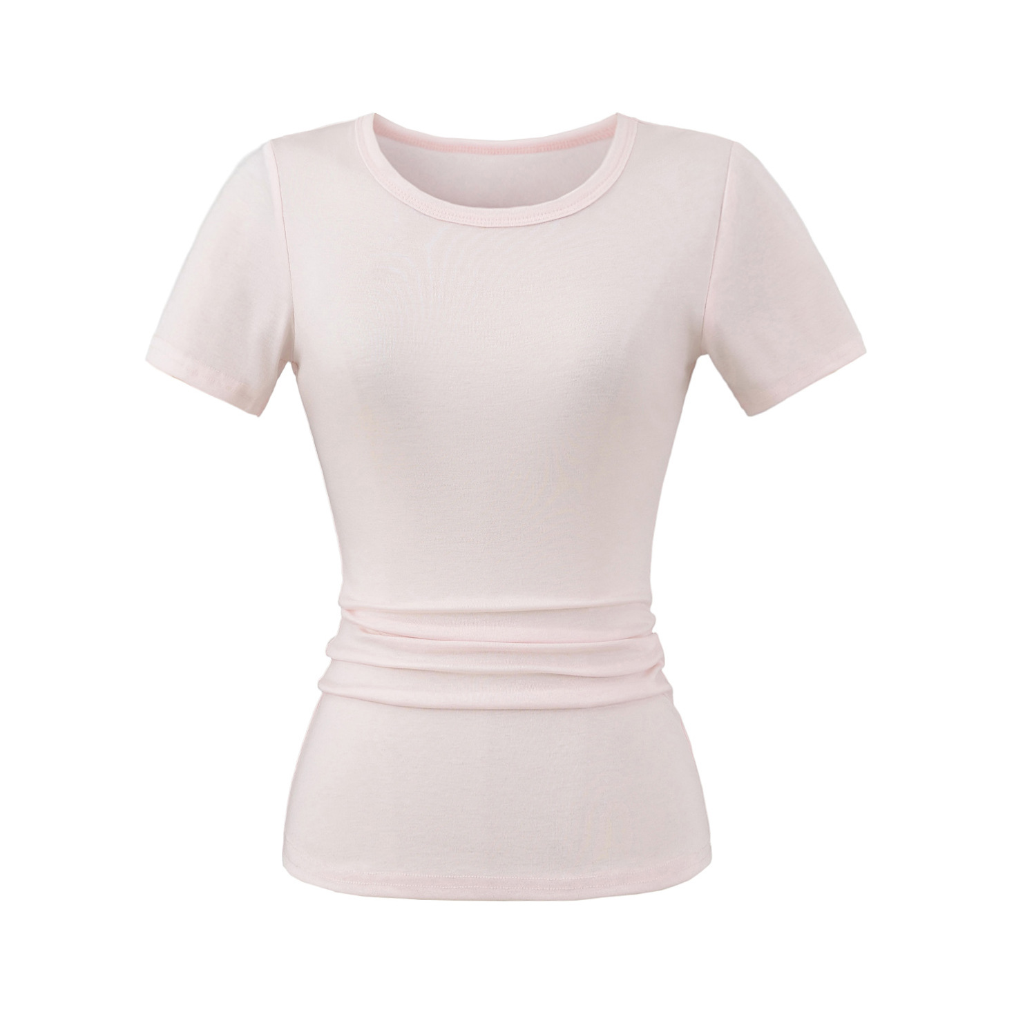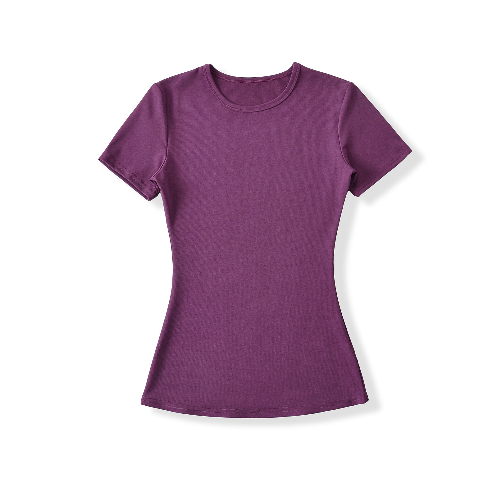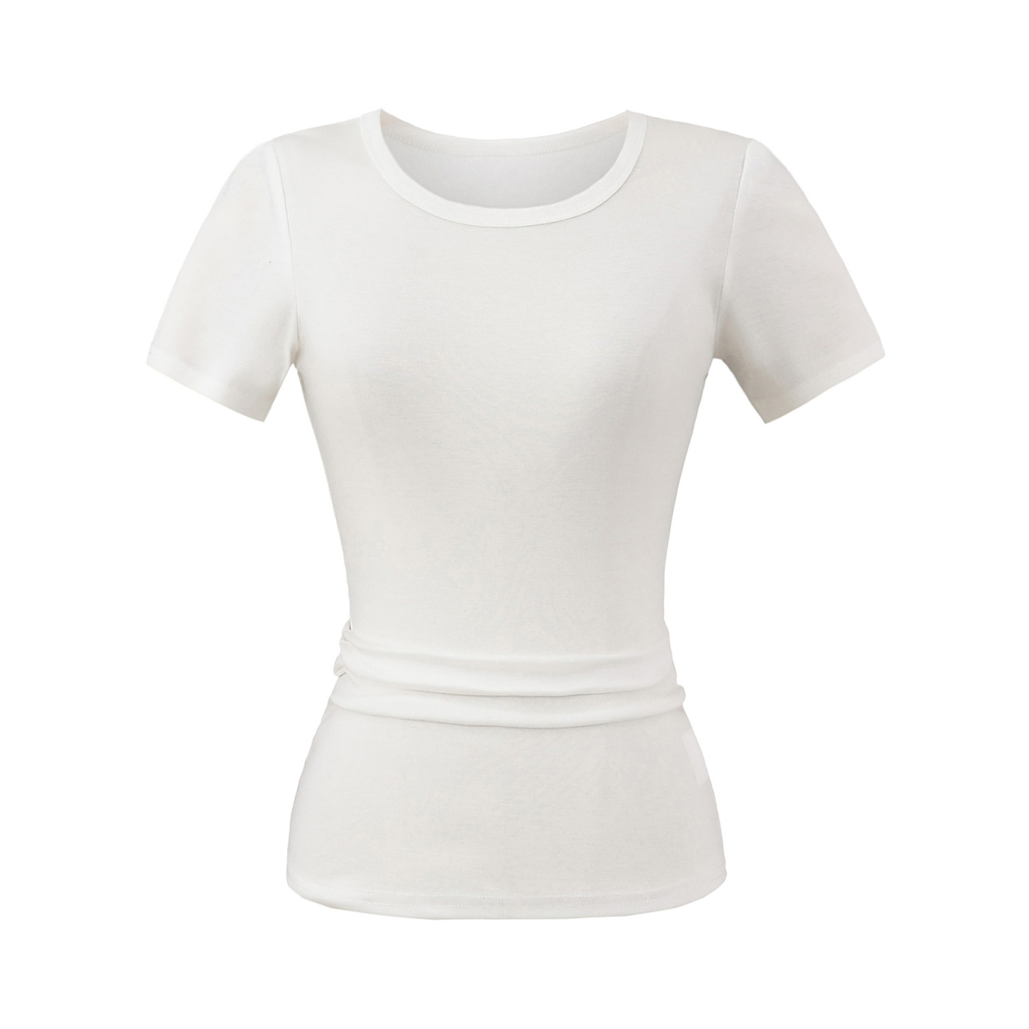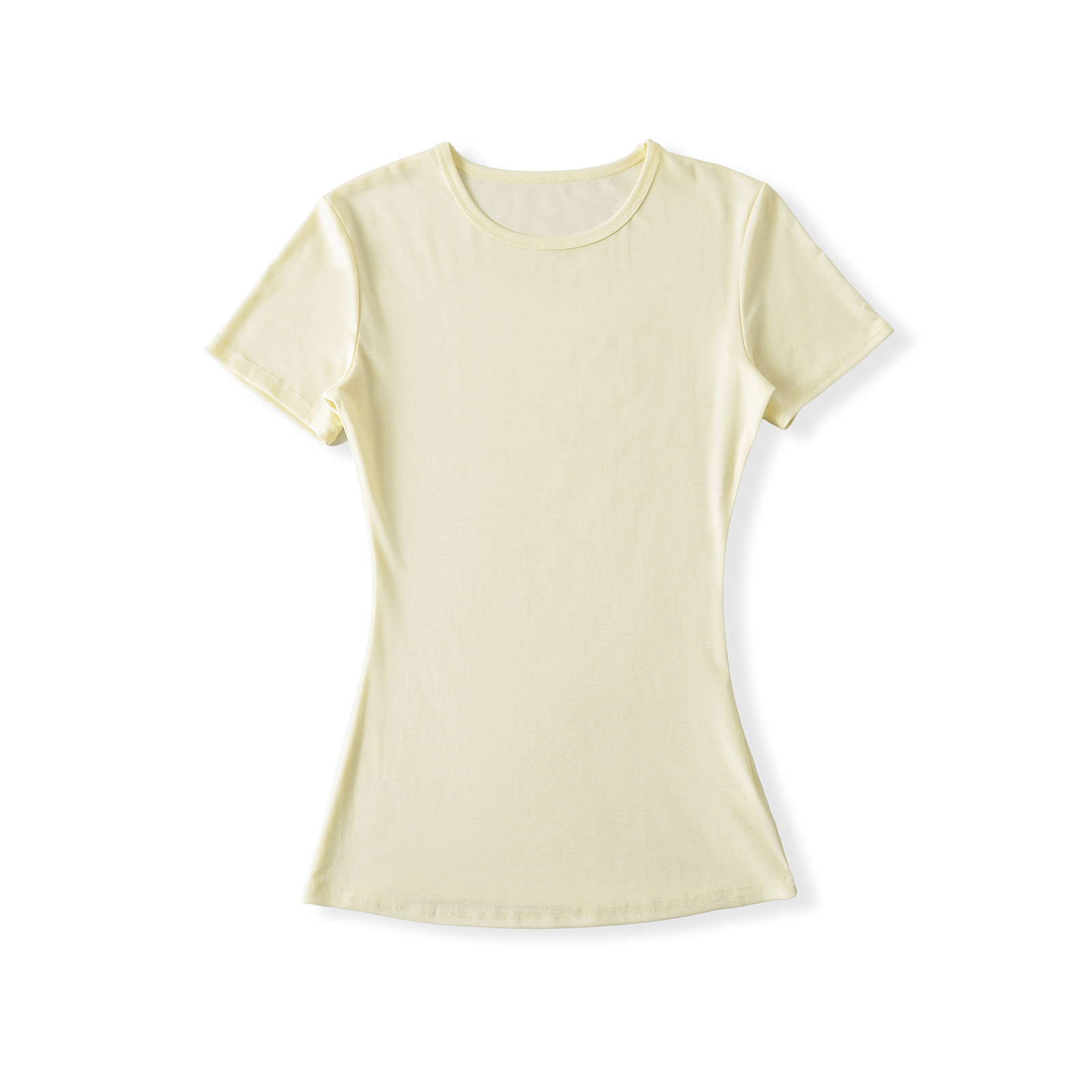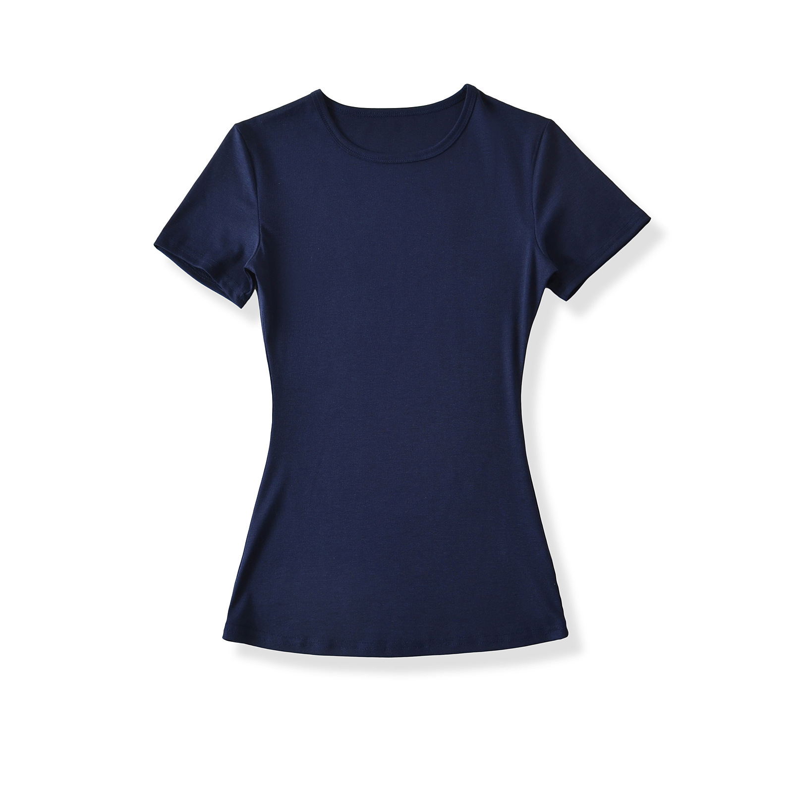 Tencel 속건성 소프트 V 넥 반팔 티셔츠 카세트 타이트 스트레치 슬리밍 라운드 넥 탑 여성 여름 유럽과 미국 배치
