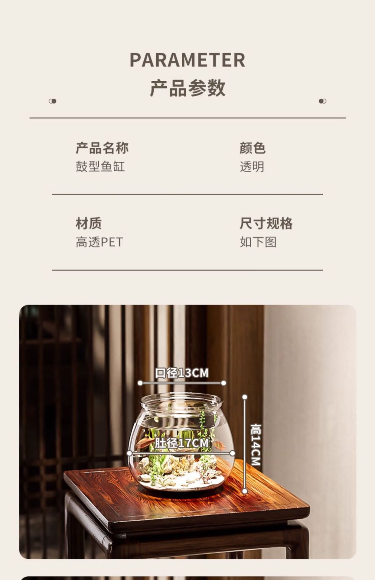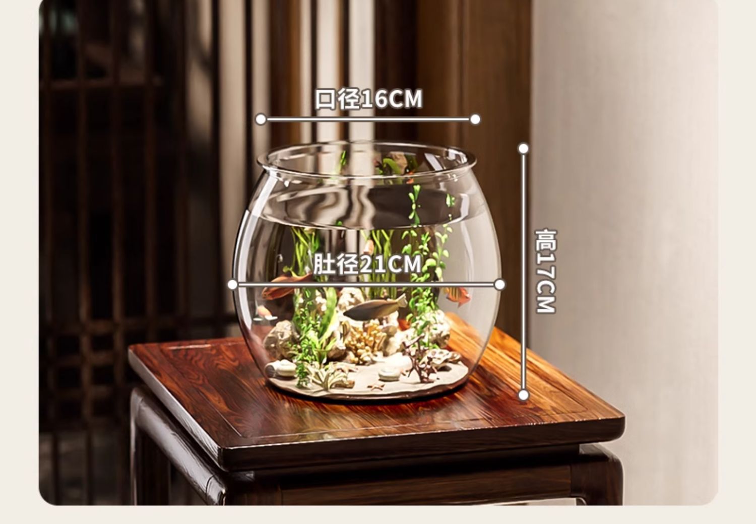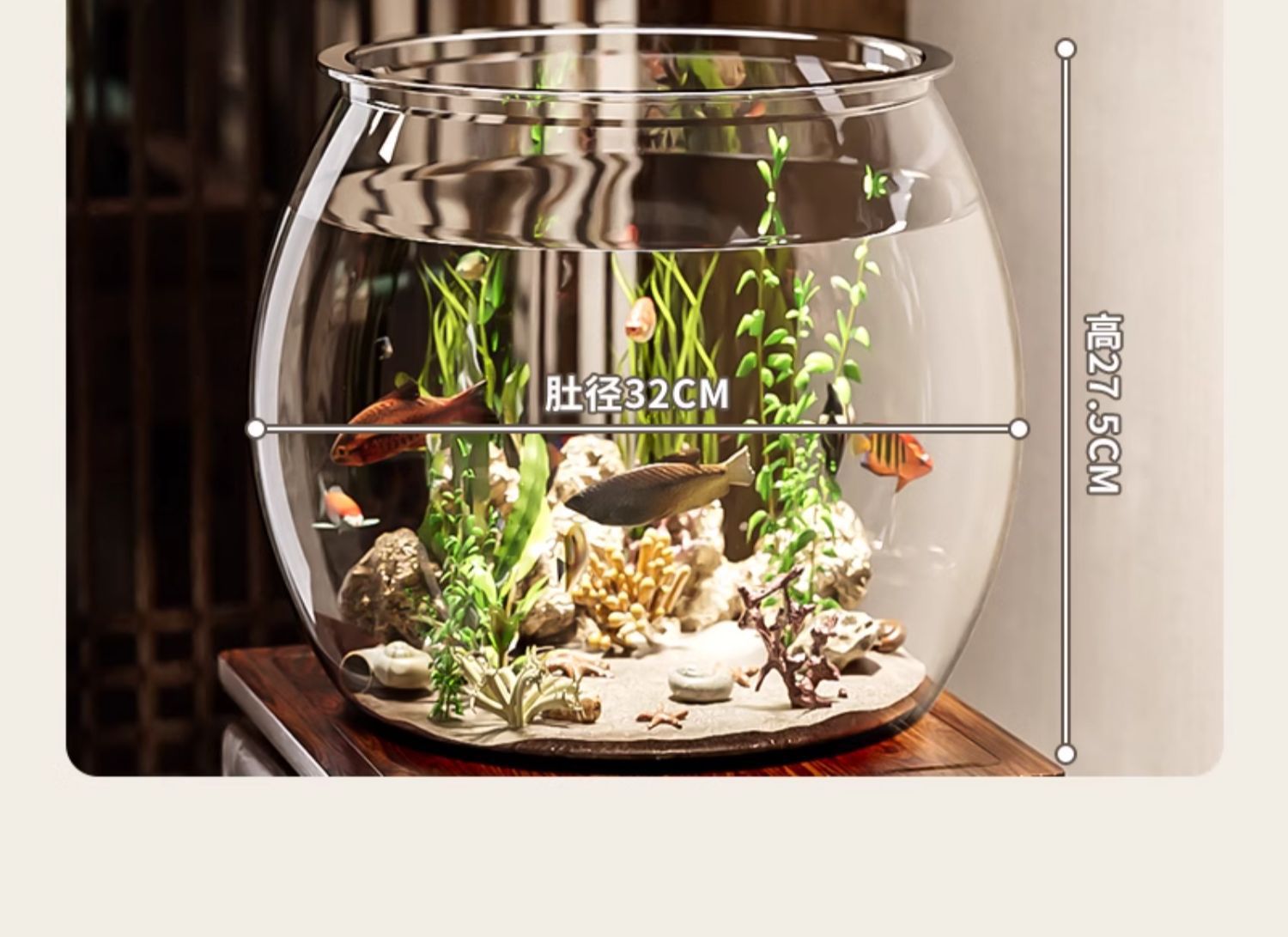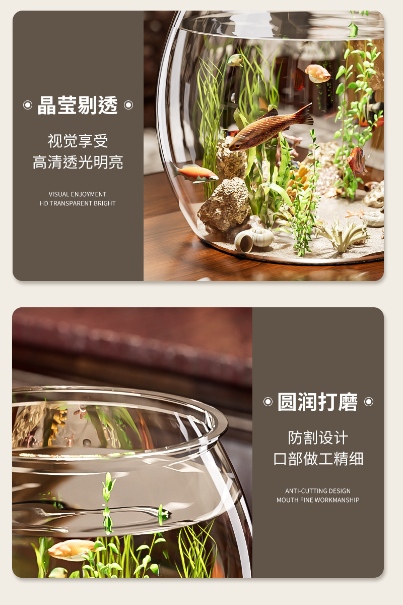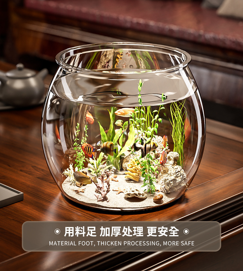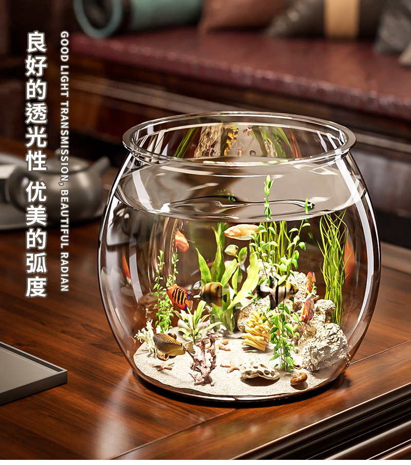 어항 원형 모조 유리 낙하 방지 거실 사무실 금붕어 및 녹색 식물 관찰 작은 조경 betta 생태 탱크