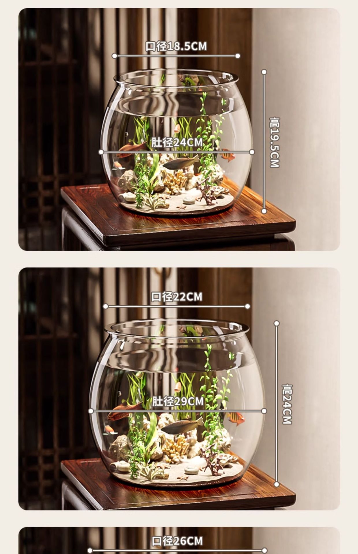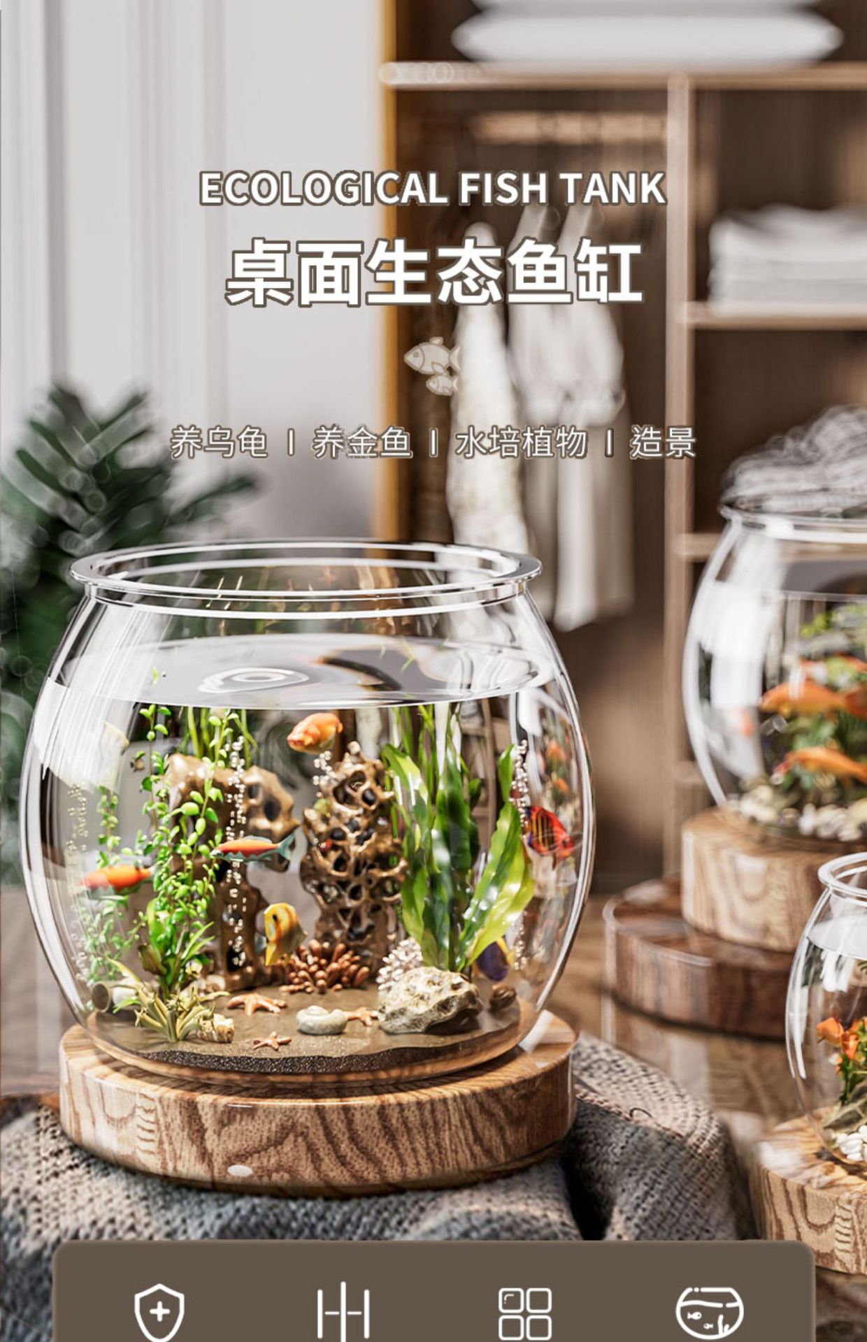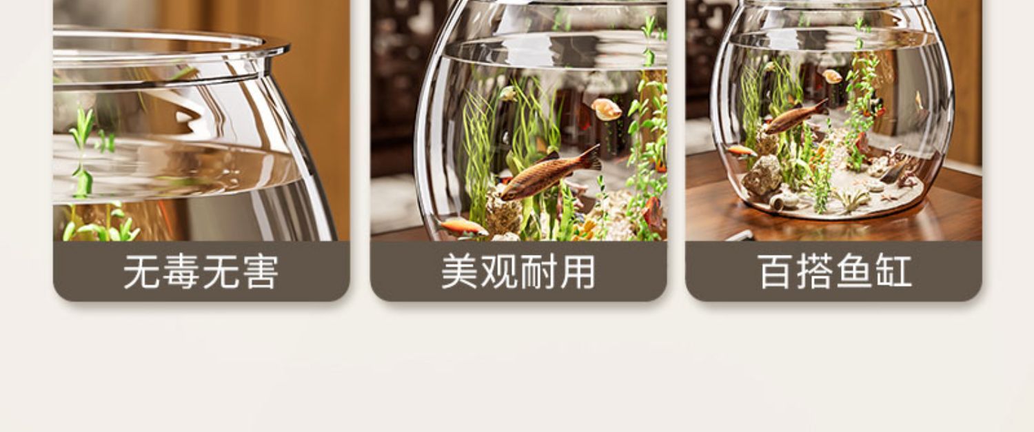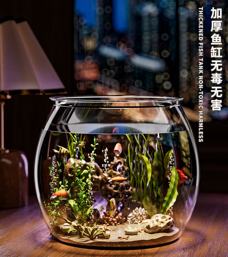 어항 원형 모조 유리 낙하 방지 거실 사무실 금붕어 및 녹색 식물 관찰 작은 조경 betta 생태 탱크스토어 가기