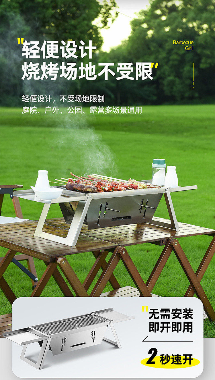 P5H 새로운 바베큐 그릴 홈 실내 야외 캠핑 숯 스테인레스 스틸 휴대용 접이식 올인원 바베큐스토어 가기
