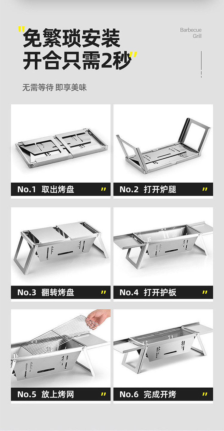 • 심플한 접이식 바베큐 그릴 - 304 스테인레스 스틸 그릴 그리드 + 201 스테인레스 스틸 본체