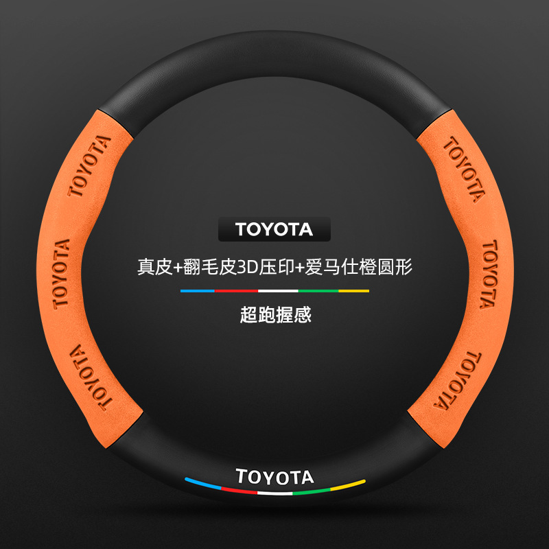 • 천연가죽 스웨이드 3D 엠보싱 헤르메스 오렌지 라운드 토요타 로고