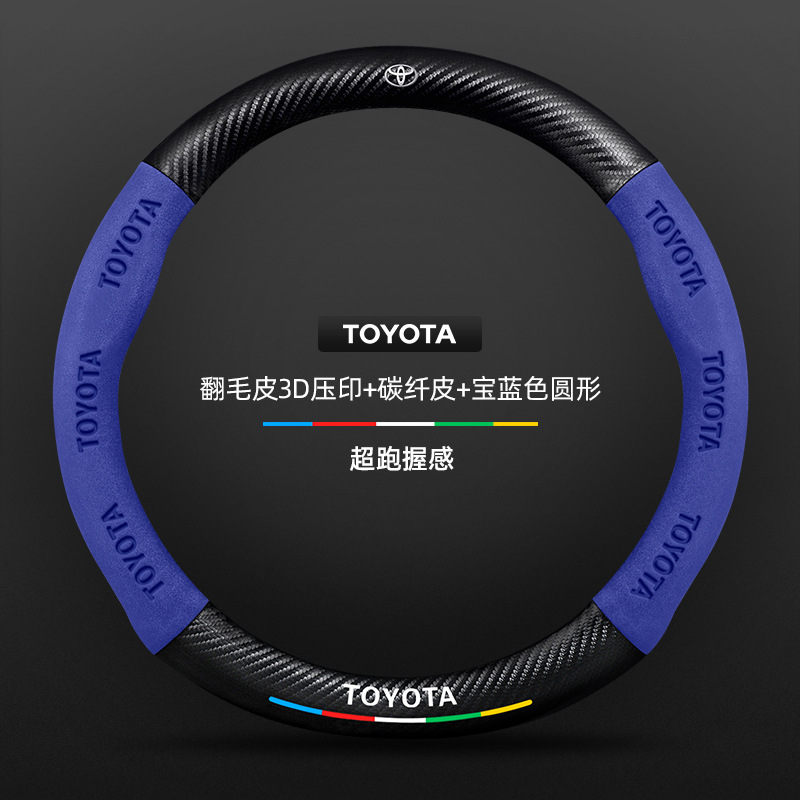 • 스웨이드 3D 양각 탄소 섬유 가죽 로얄 블루 라운드 토요타 로고