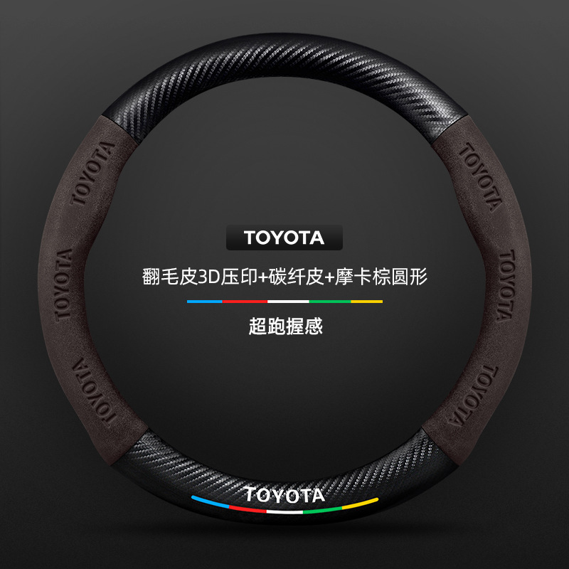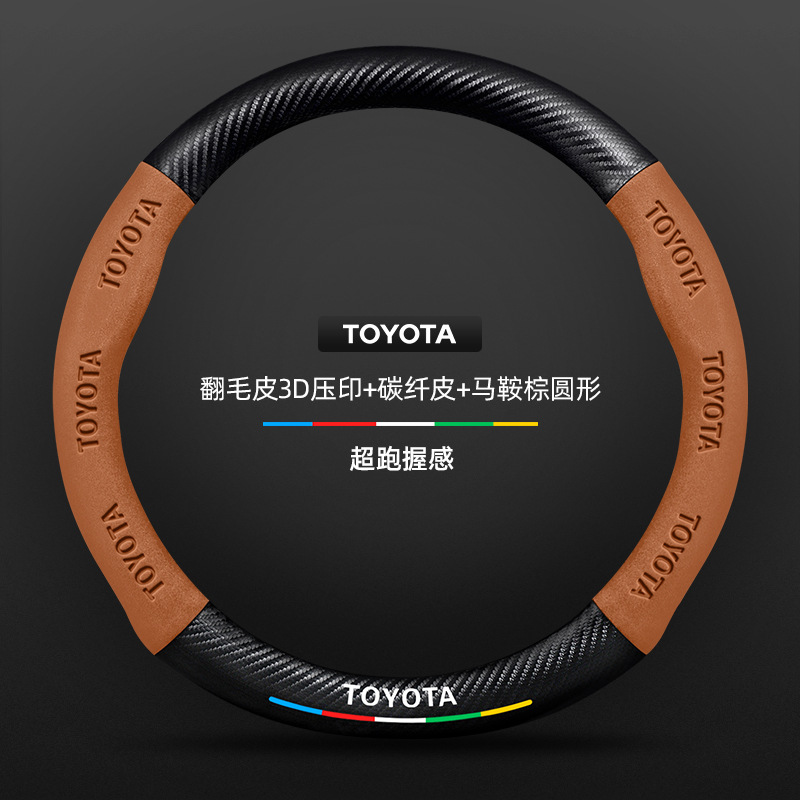 • 스웨이드 3D 양각 탄소 섬유 가죽 안장 브라운 라운드 토요타 로고