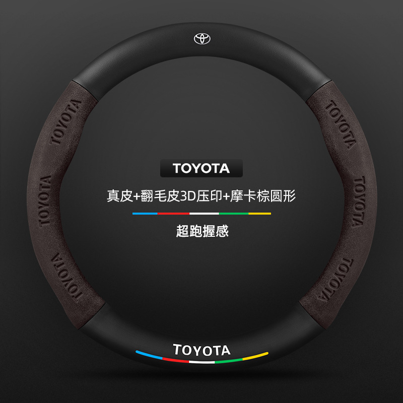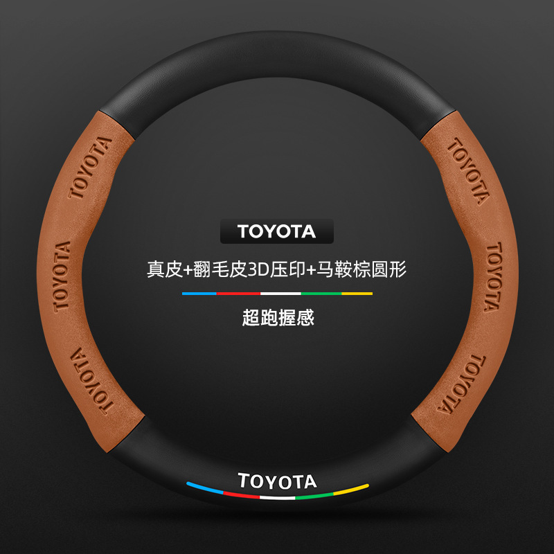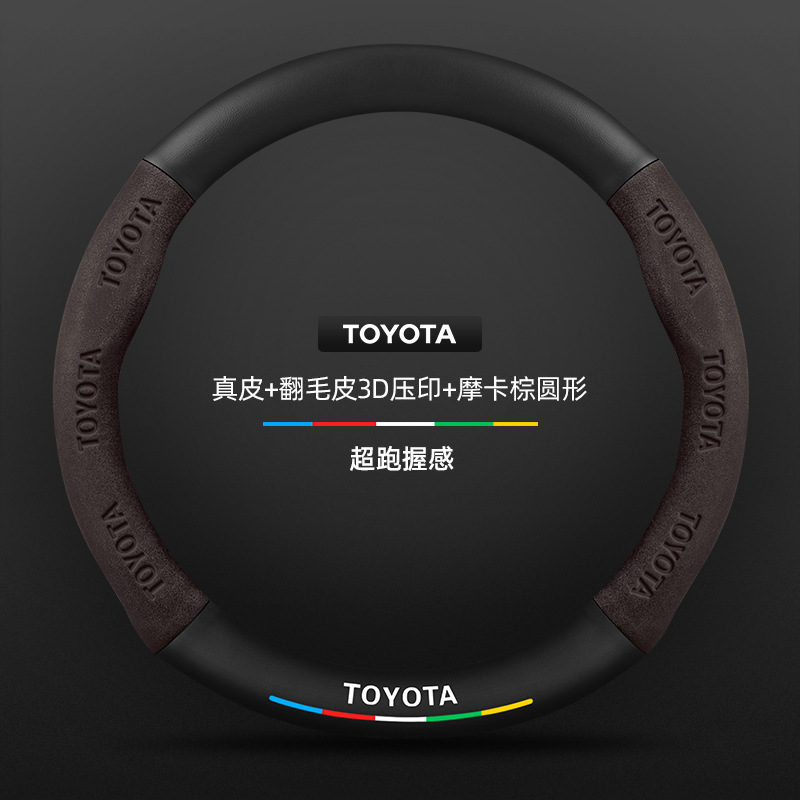 • 천연가죽 스웨이드 3D 엠보싱 안장 브라운 라운드 토요타 로고