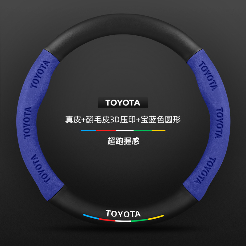• 천연 가죽 스웨이드 3D 양각 로얄 블루 라운드 토요타 로고