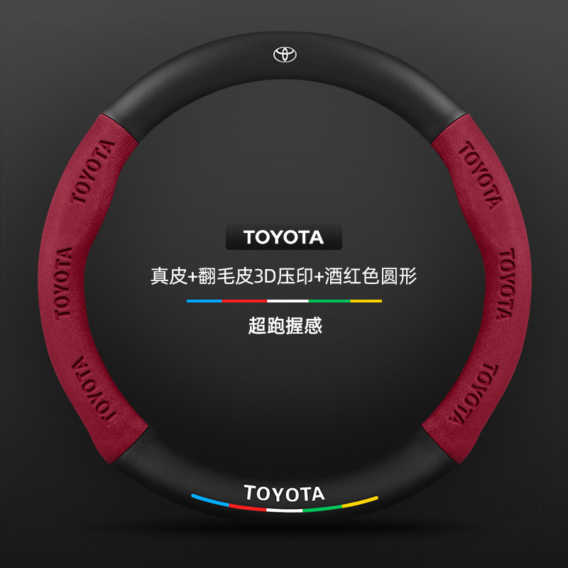 • 천연가죽 스웨이드 3D 엠보싱 버건디 라운드 토요타 로고