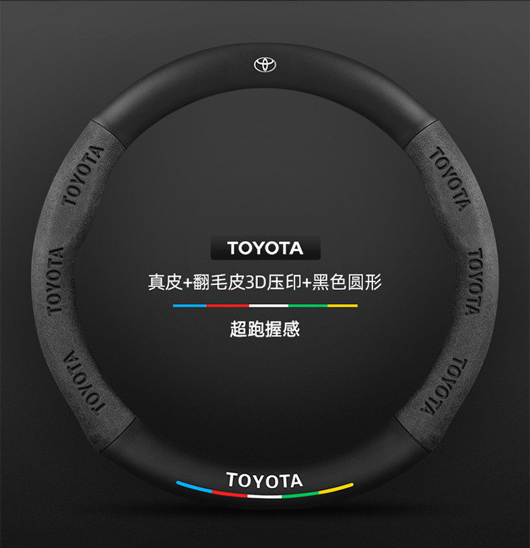 • 천연가죽 스웨이드 3D 엠보싱 블랙 라운드 토요타 로고