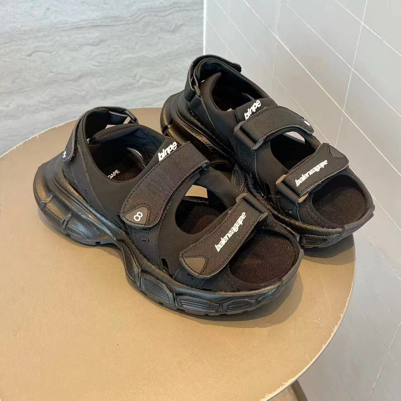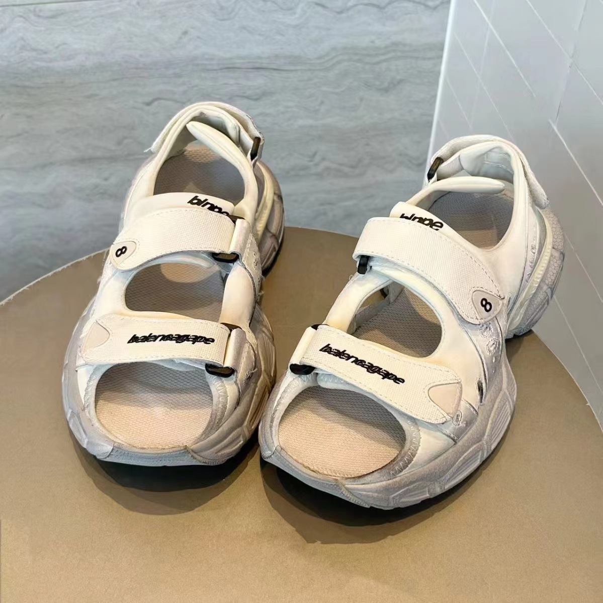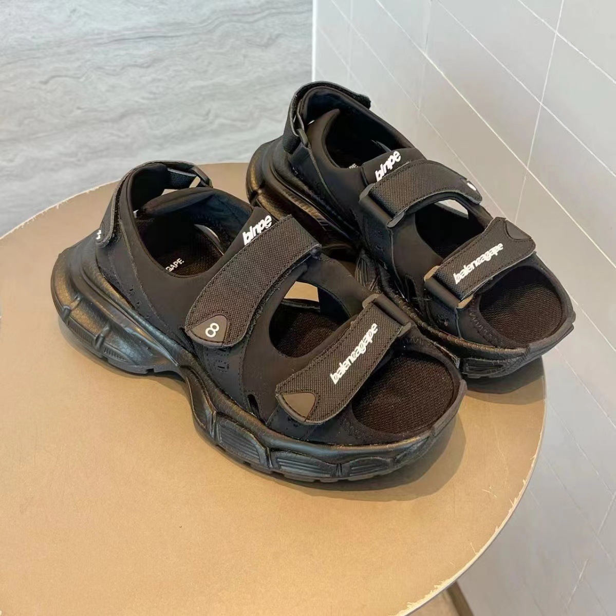 파리 3xl 두꺼운 밑창 스포츠 발가락 비치 샌들 남성과 여성 2025 새로운 여름 겉옷 높이 증가 아빠 신발스토어 가기
