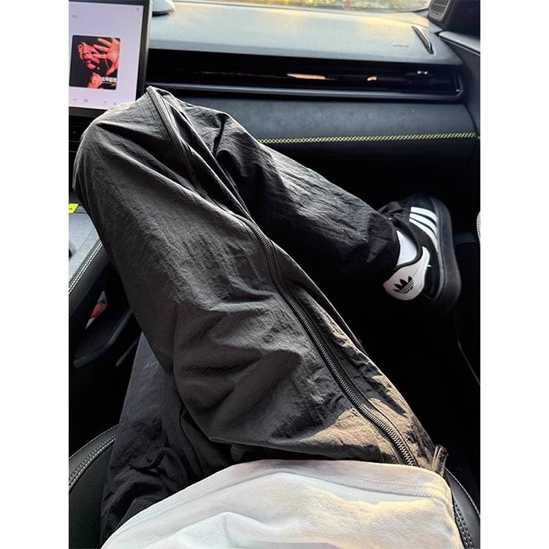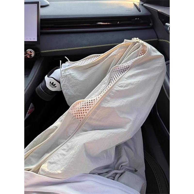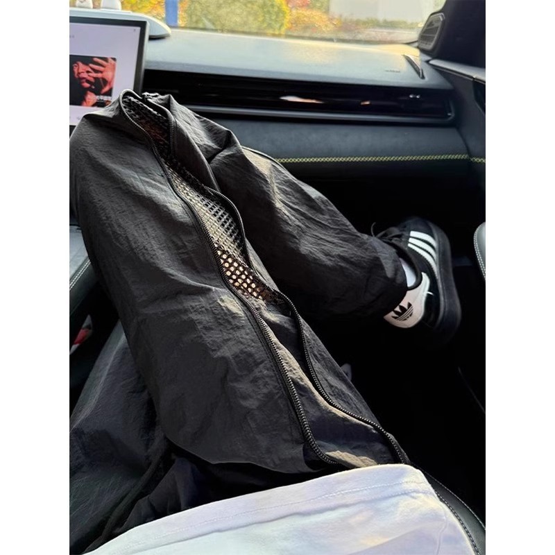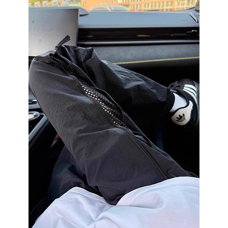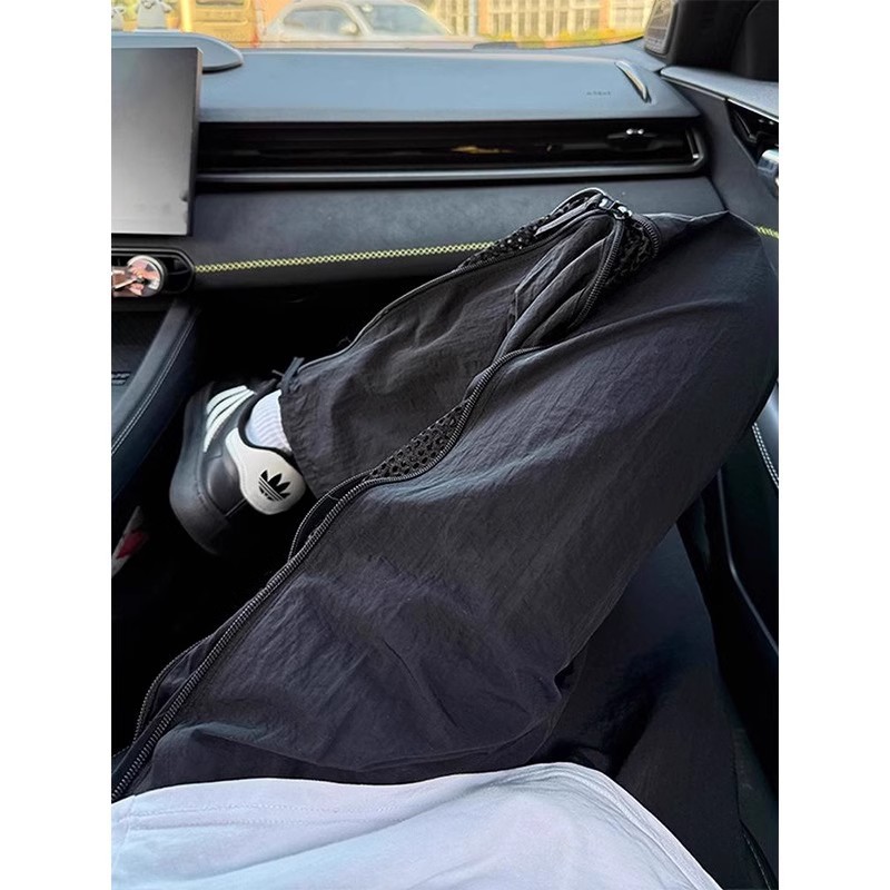 아메리칸 남성용 대형 드로스트링 와이드 팬츠, 아웃도어 스트레이트 퀵 드라이 팬츠, 파라트리퍼 팬츠, 메쉬 사이드 지퍼