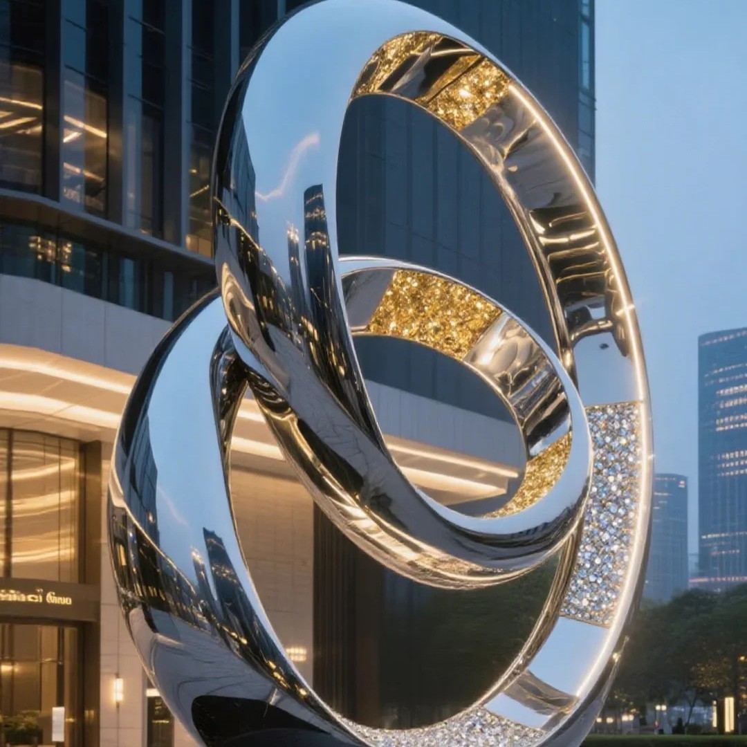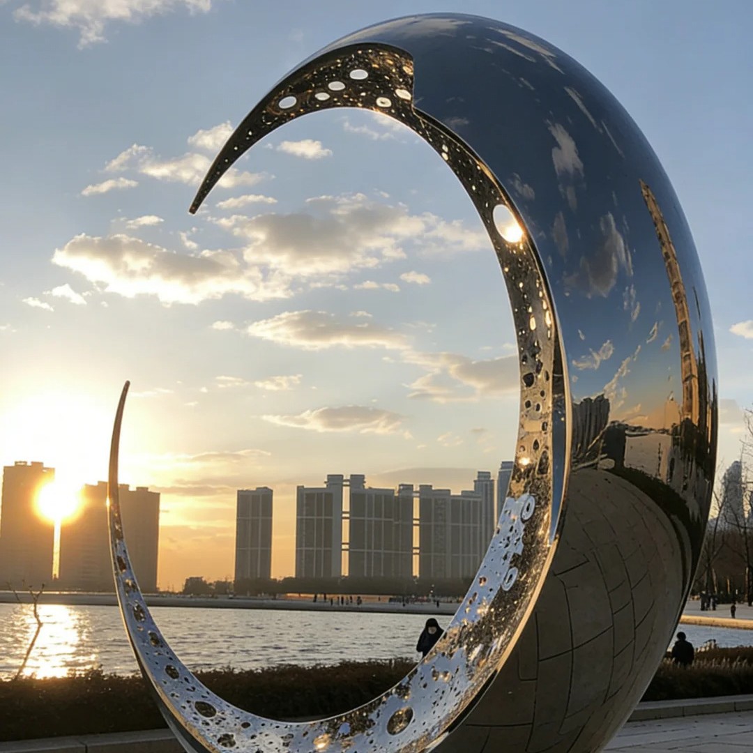 대형 스테인레스 스틸 거울 풍경 금속 조각품은 제조업체가 만든 야외 광장 캠퍼스 도시 랜드마크 대형 장식품입니다.스토어 가기