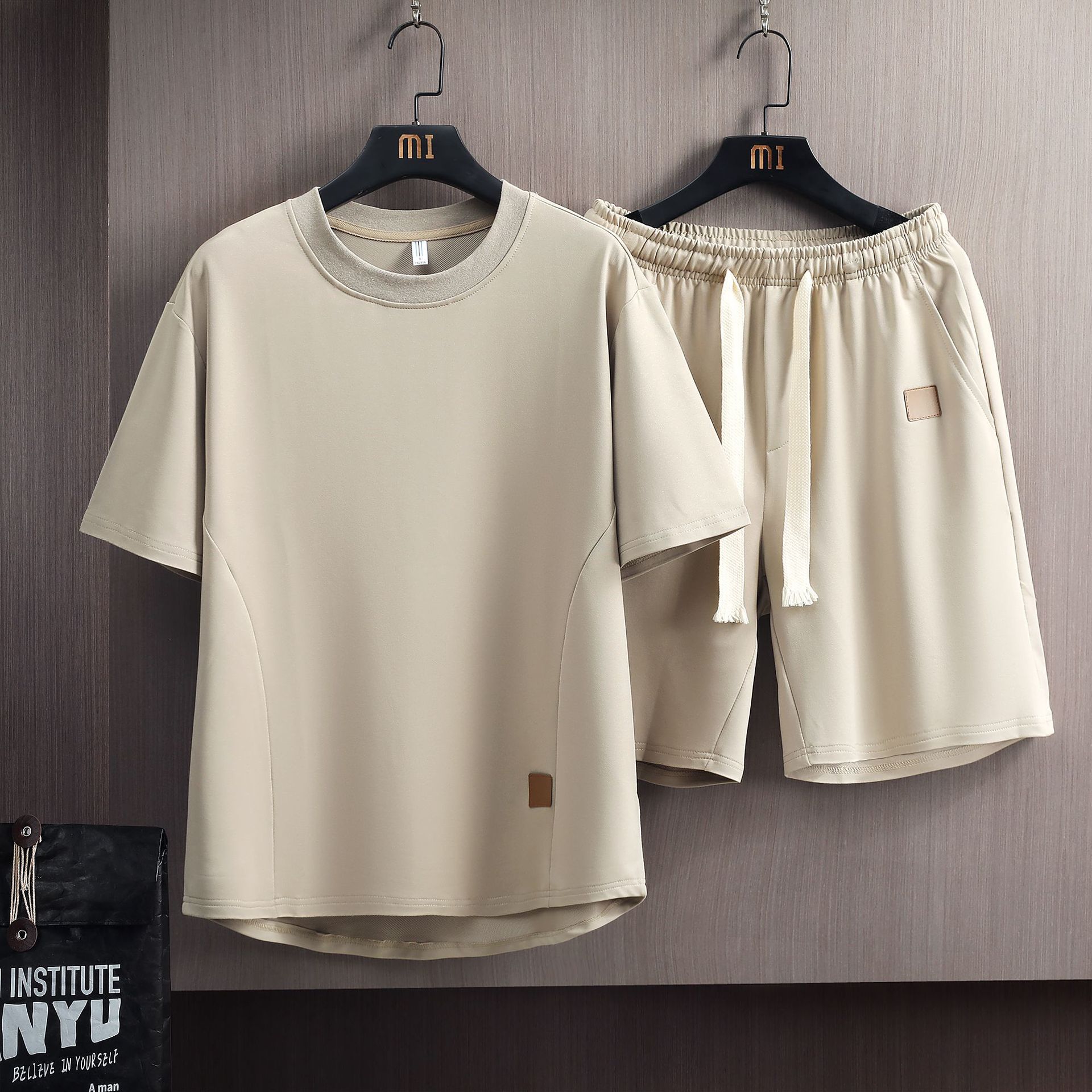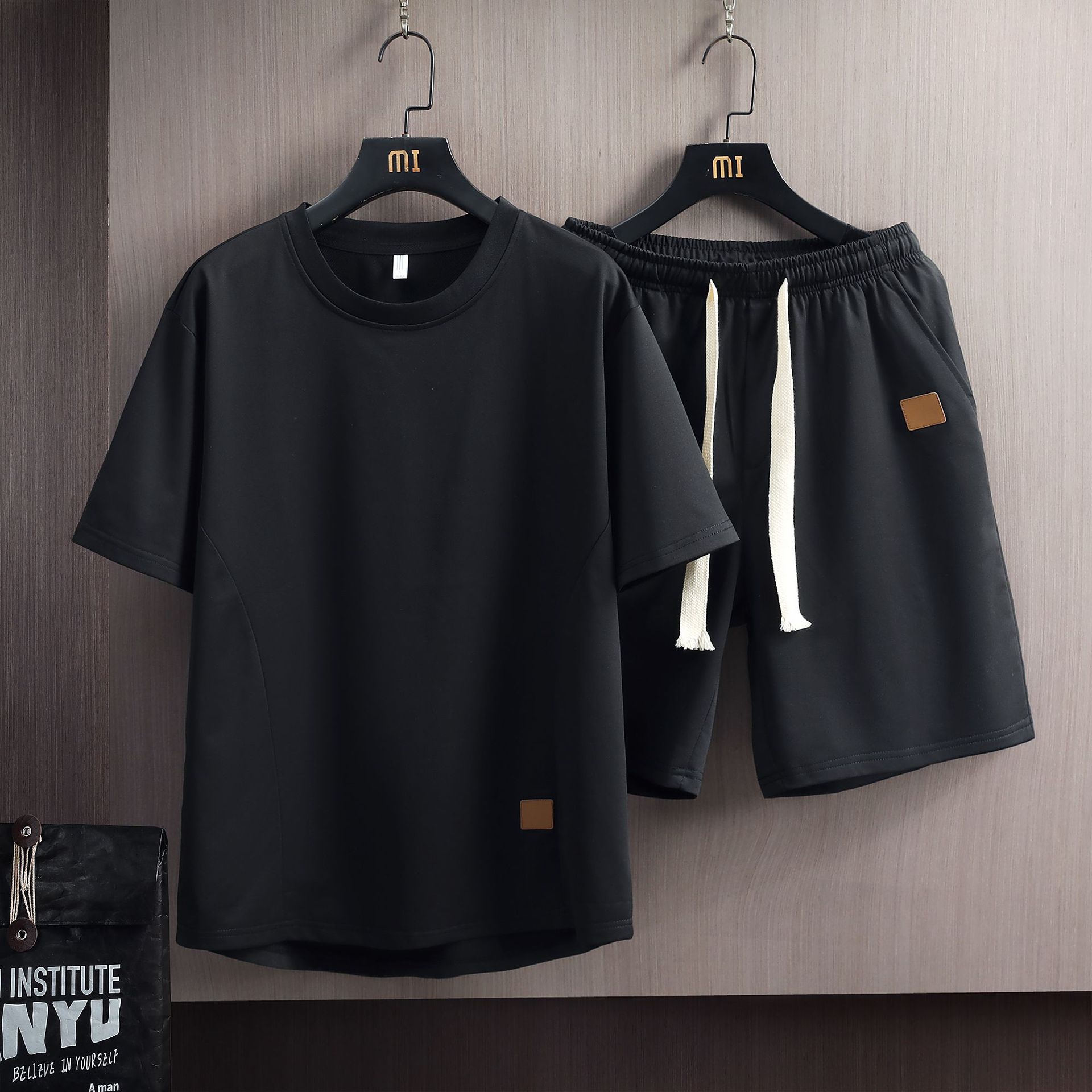 2025 크로스보더 신작 여름 신작 캐주얼 스포츠 정장 남성용 반팔 티셔츠 트렌디 브랜드 루즈한 5부 바지