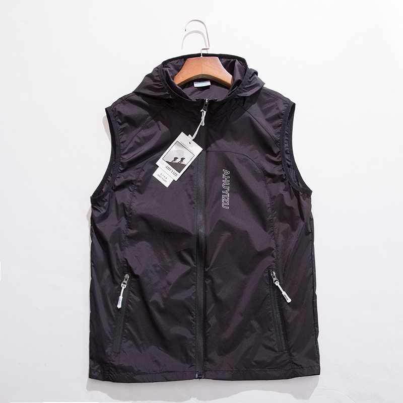 봄 여름 야외 스포츠 속건 조끼, 남성용 후드 대형 통기성 땀 흡수 달리기 등산 자외선 차단 조끼스토어 가기