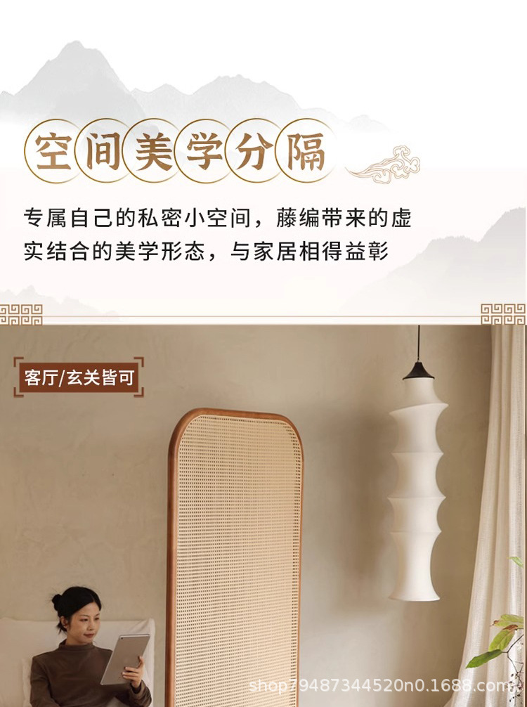 일본식 단단한 나무 등나무 스크린 거실 복고풍 입구 입구 선반 파티션 B&B 홈 모바일 좌석 스크린스토어 가기