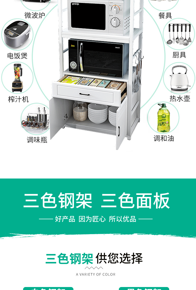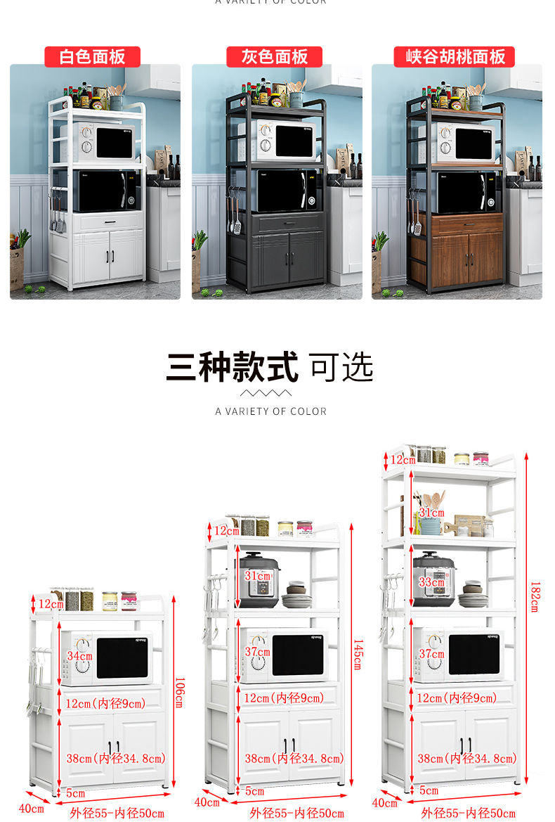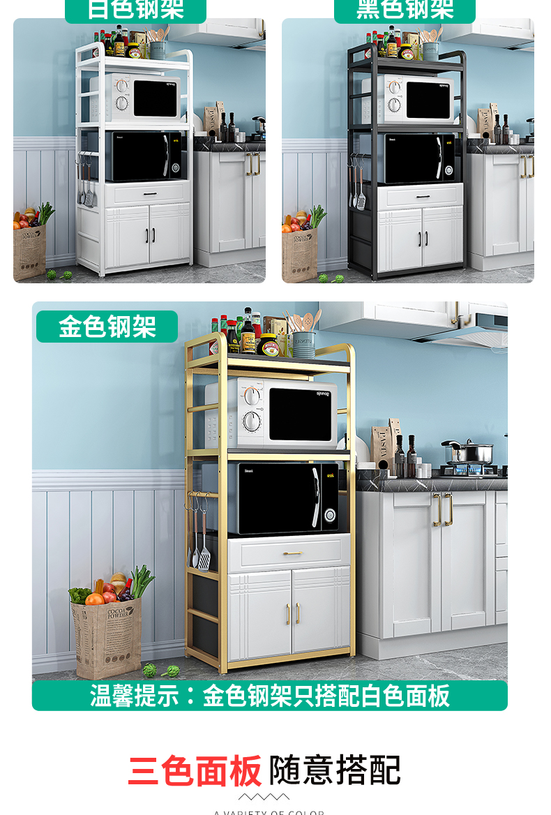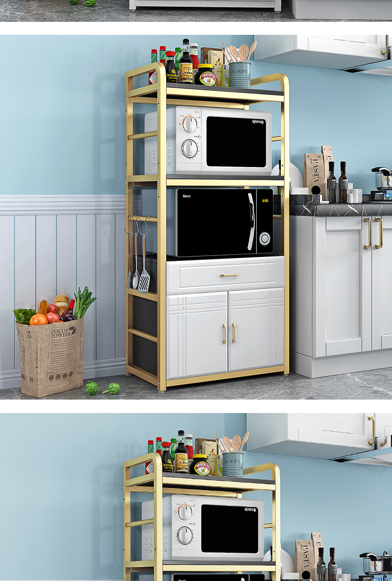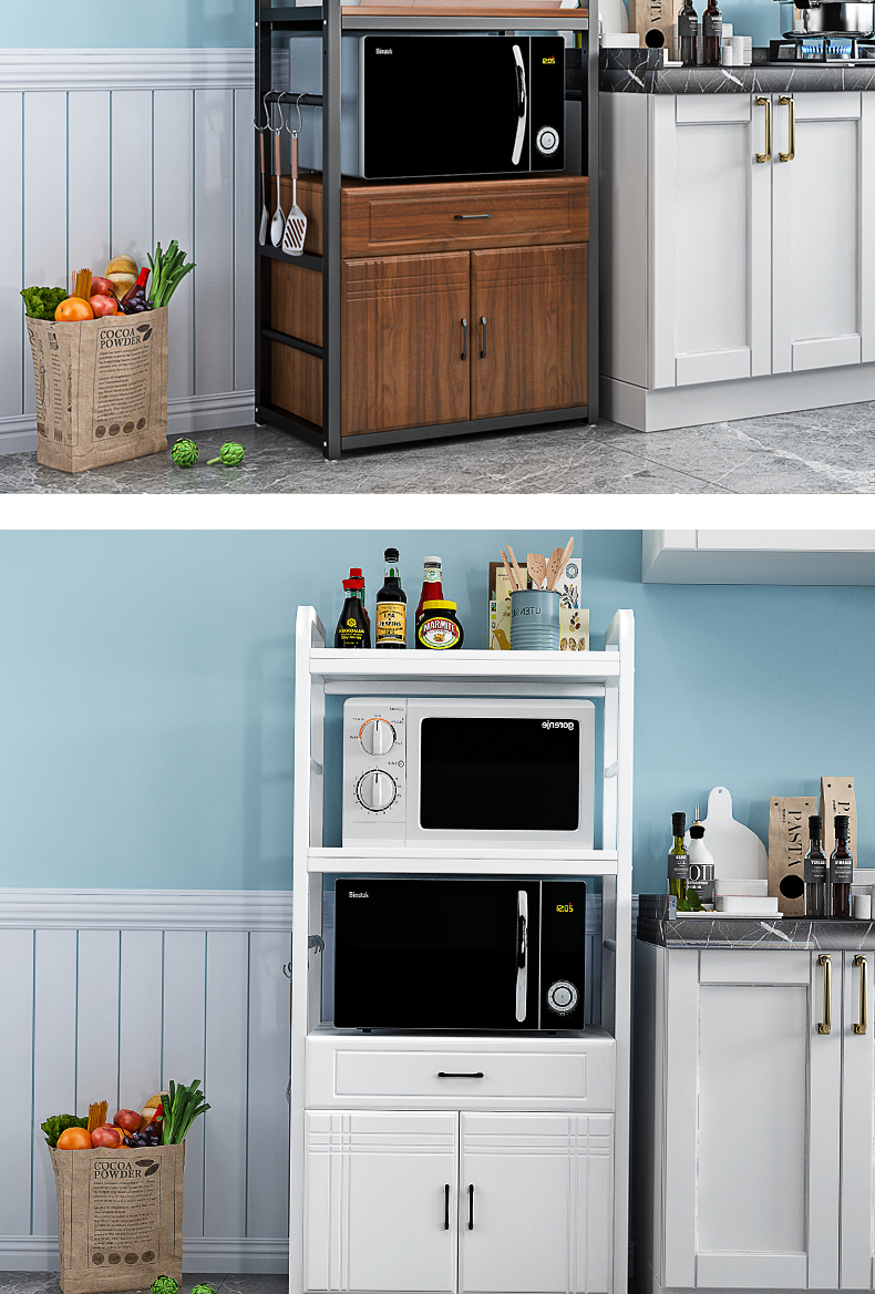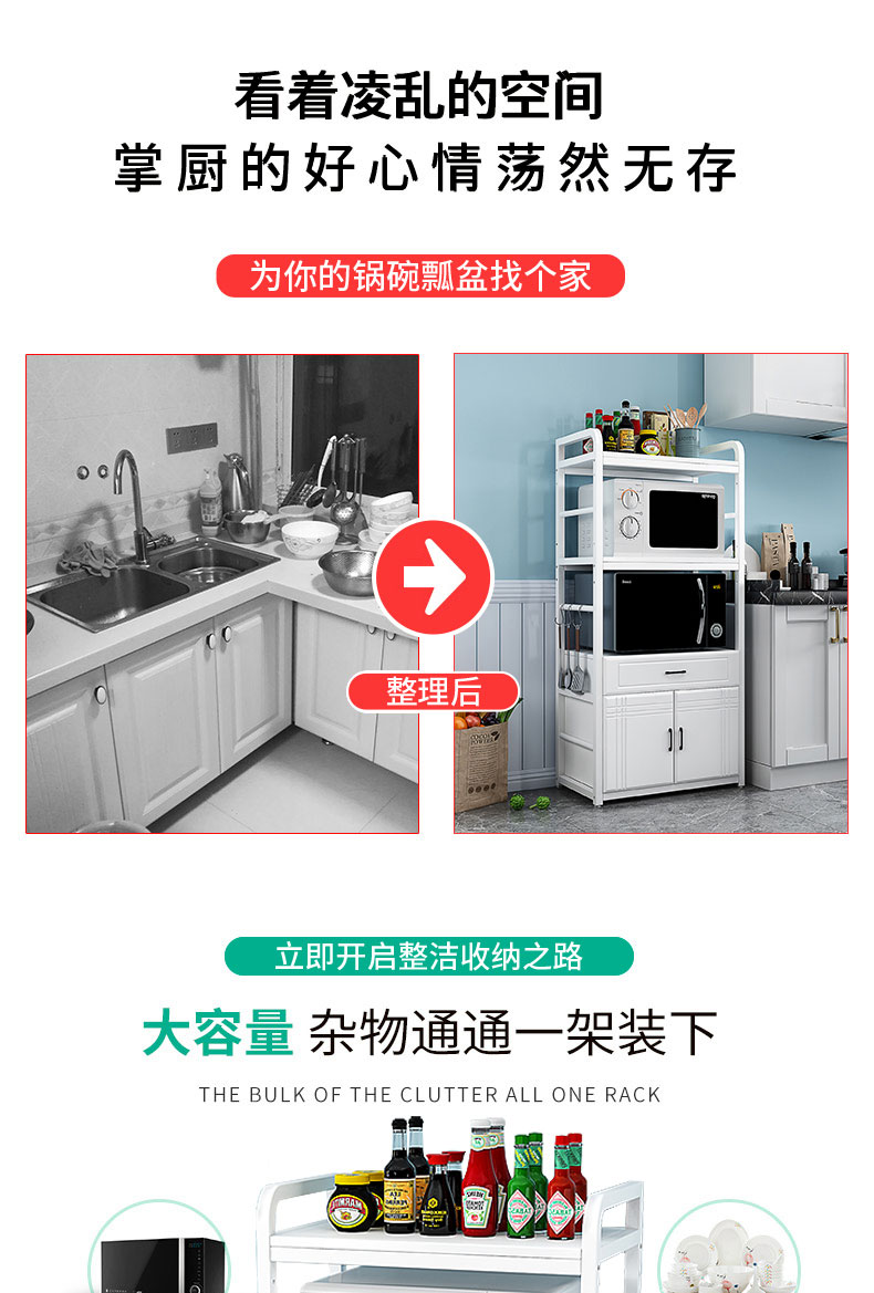 신제품 주방 수납 선반 바닥에 세워진 다층 전자 레인지 수납 캐비닛 도어 다기능 캐비닛 상품스토어 가기