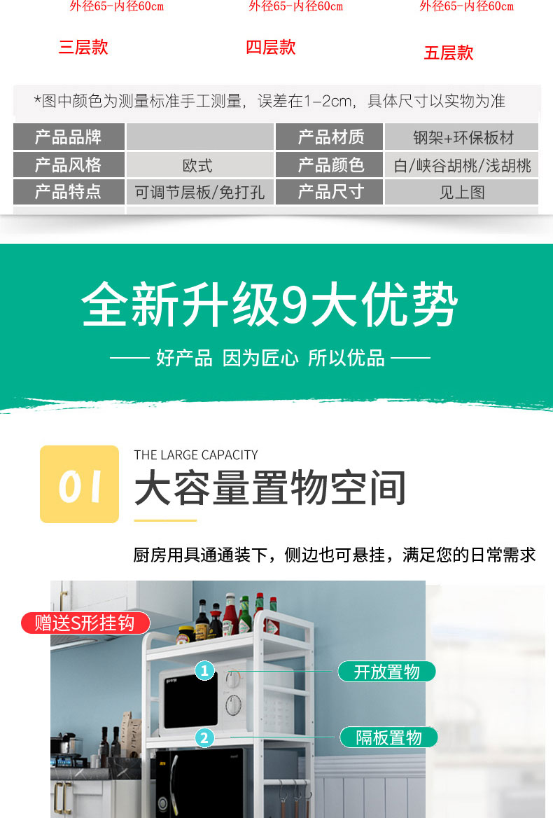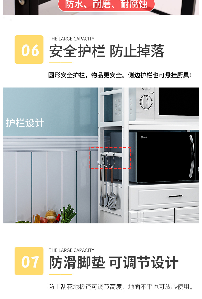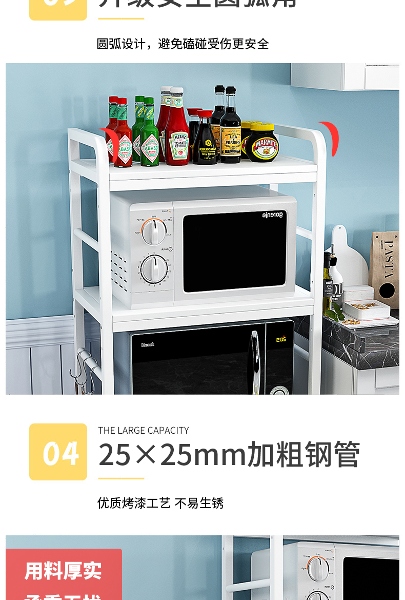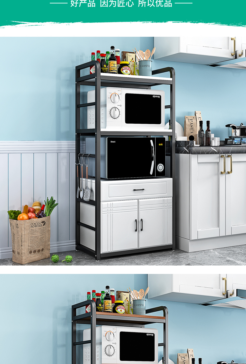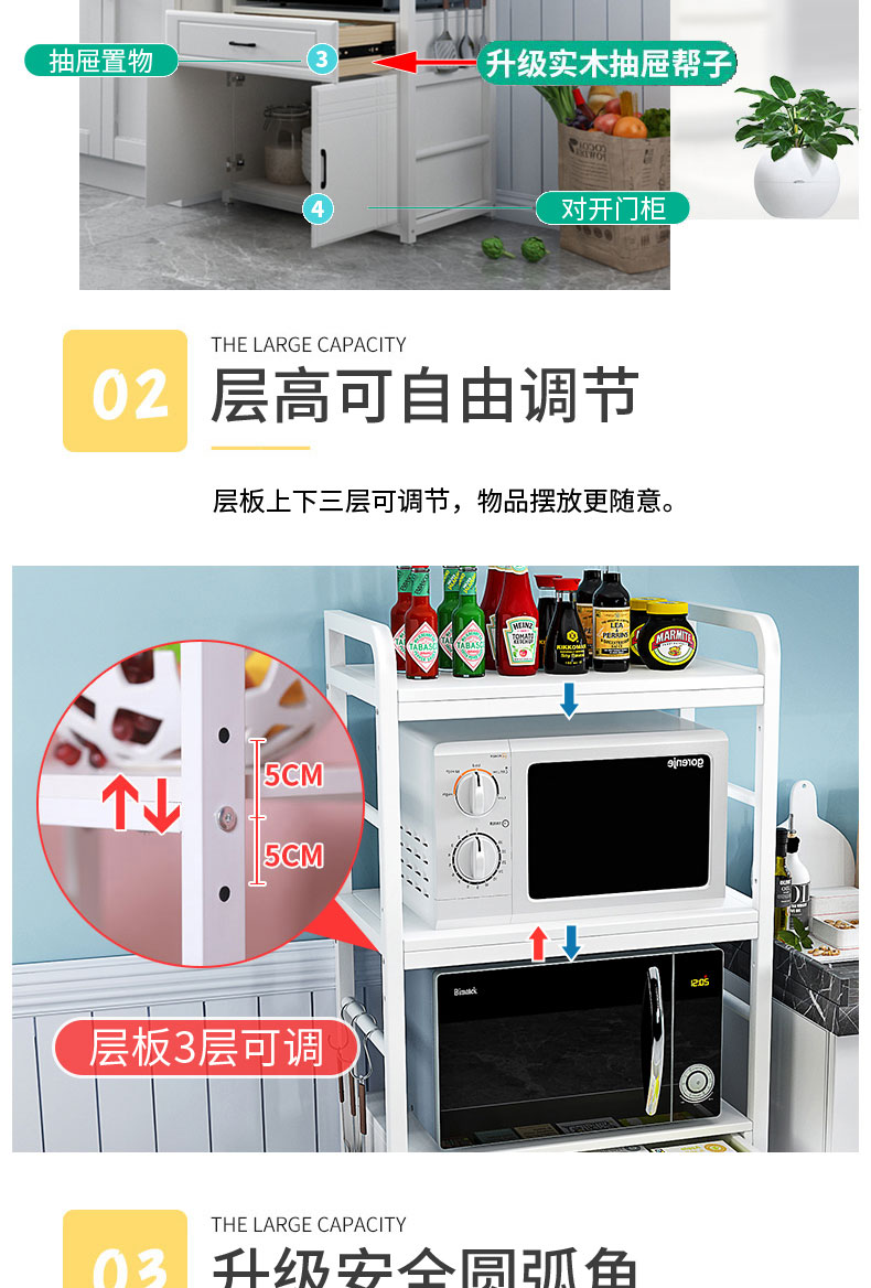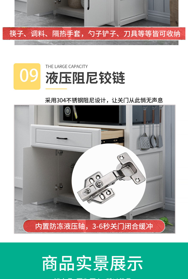 신제품 주방 수납 선반 바닥에 세워진 다층 전자 레인지 수납 캐비닛 도어 다기능 캐비닛 상품스토어 가기