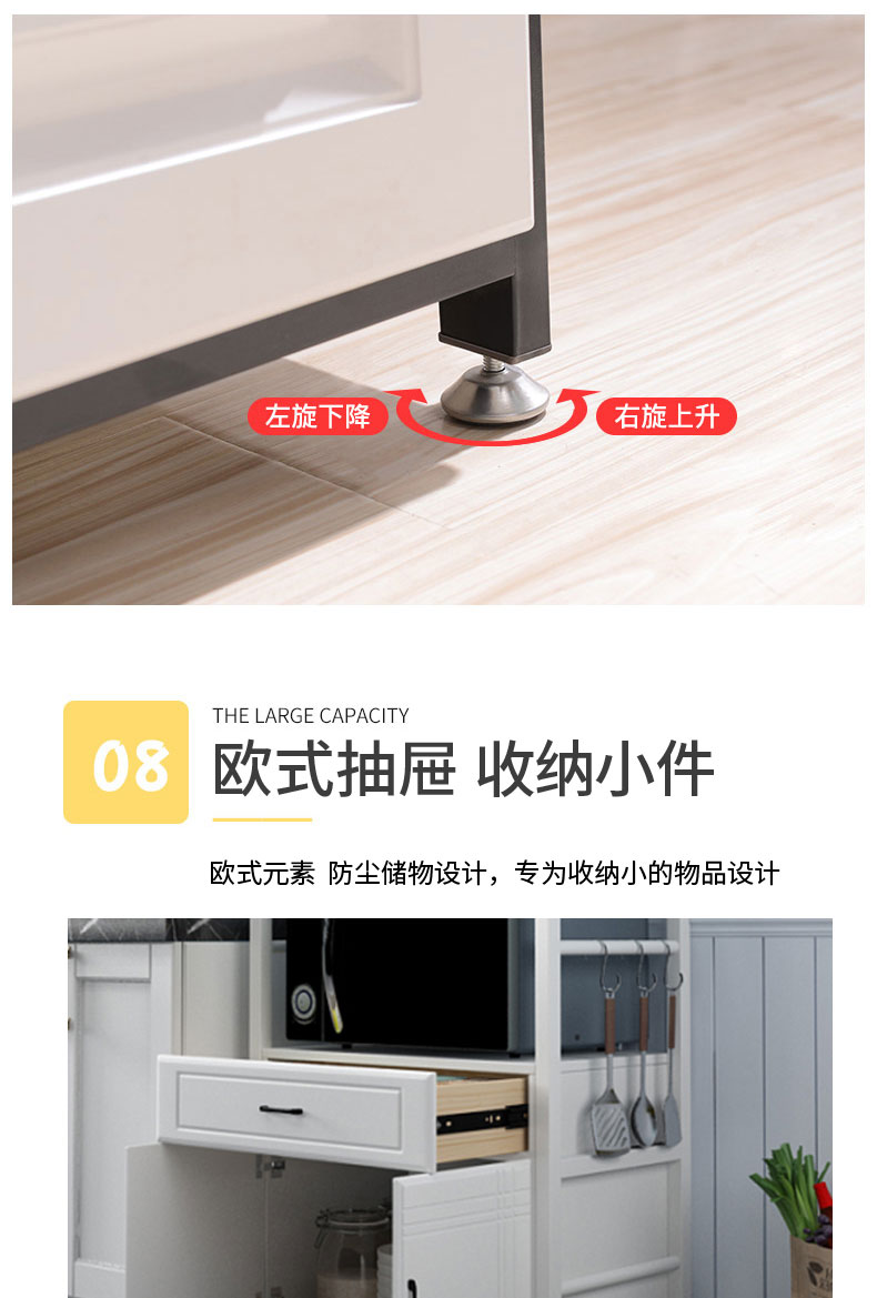 신제품 주방 수납 선반 바닥에 세워진 다층 전자 레인지 수납 캐비닛 도어 다기능 캐비닛 상품