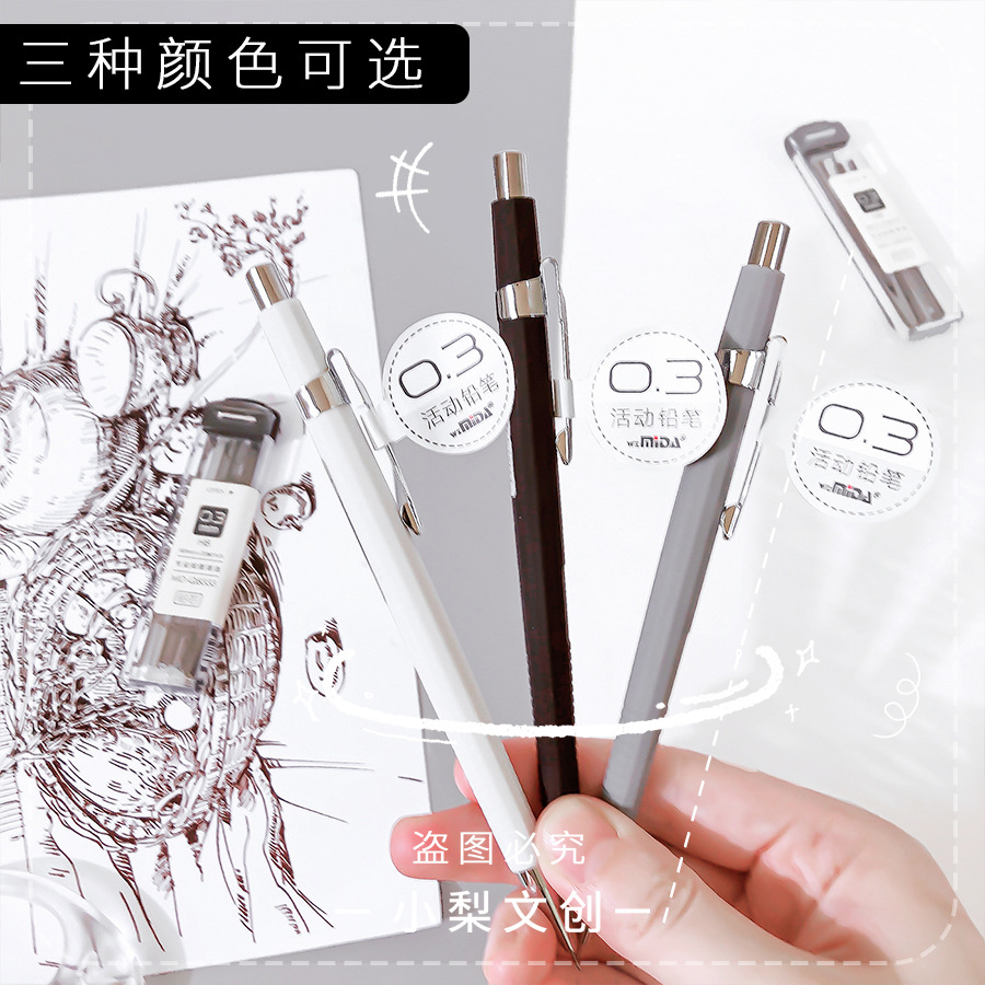 Meida H1333 초등학생 금속 막대 자동 연필 고급스러운 0.3mm 샤프 펜슬 드로잉 프레스 연필스토어 가기