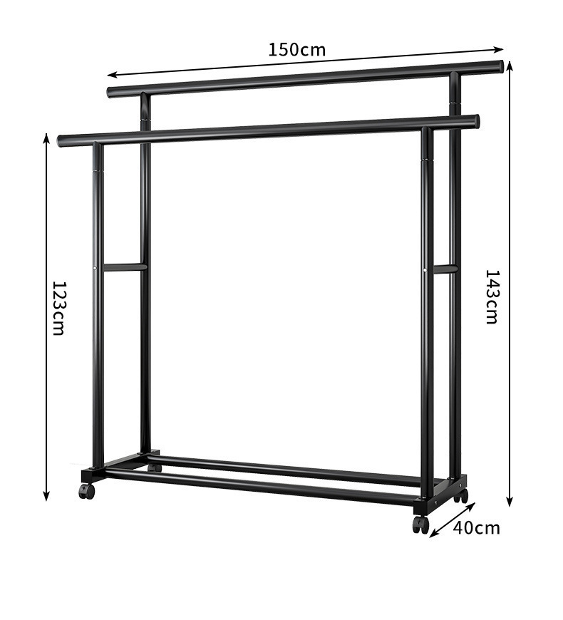 • 검정색 150cm 이중 극 및 바퀴(파이프 직경 22mm)