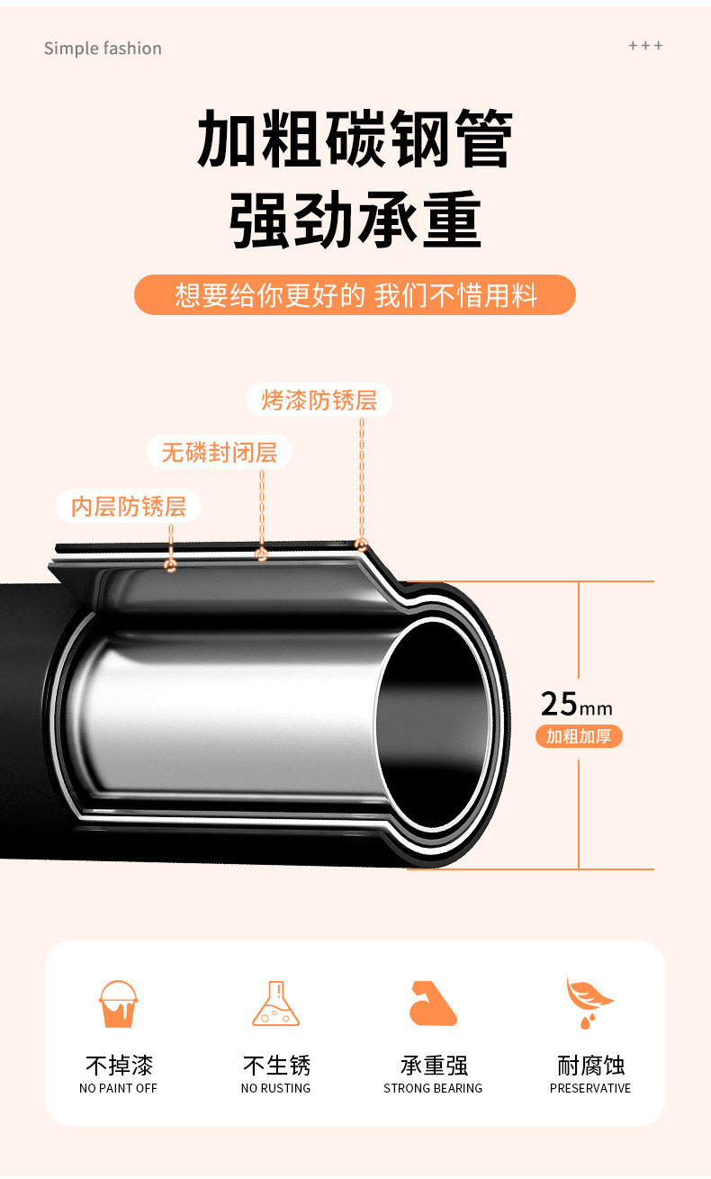 • 검정색 150cm 단일 극 + 휠(파이프 직경 25mm)