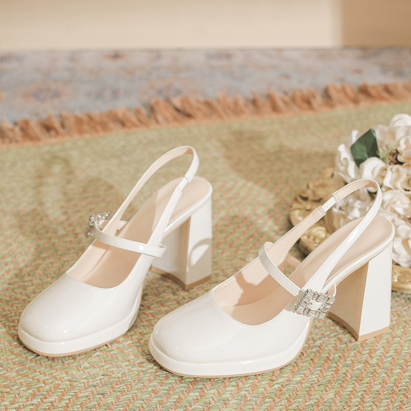 여성용 스퀘어토 메리제인 슈즈 2025 신상 오프화이트 슈즈 웨딩슈즈 굵은 굽으로 발이 피곤하지 않은 여성용 하이힐스토어 가기