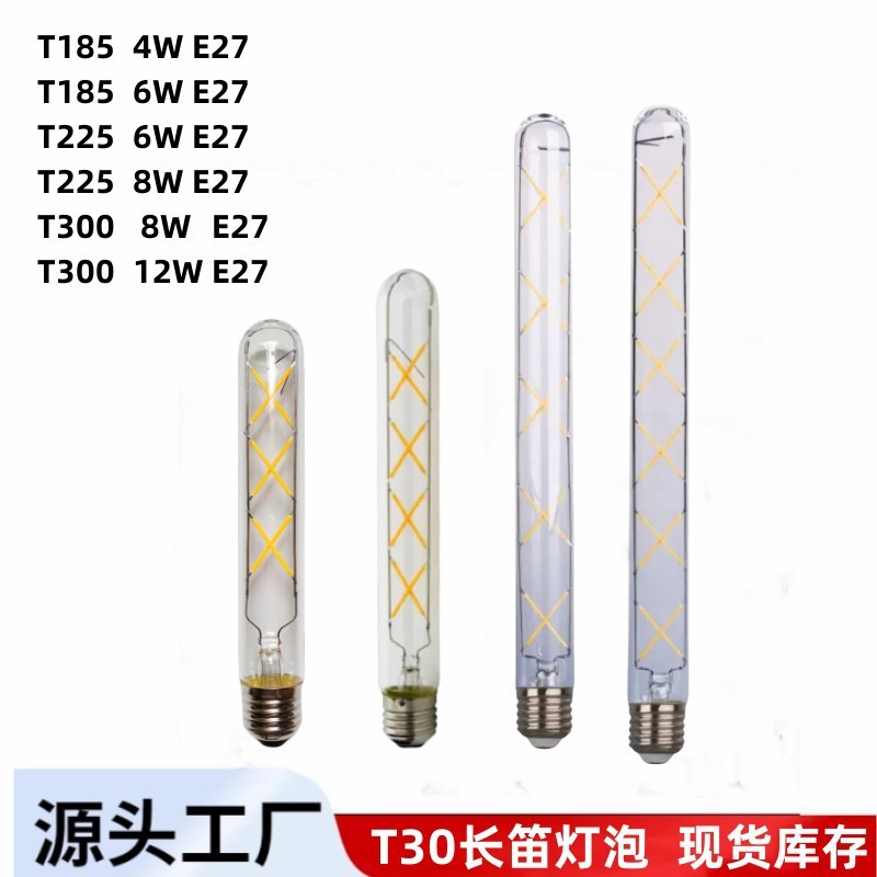 LedT30 12W4W 플루트 튜브 전구 E27 나사 복고풍 에디슨 전구 유리관 벽 조명 광원스토어 가기