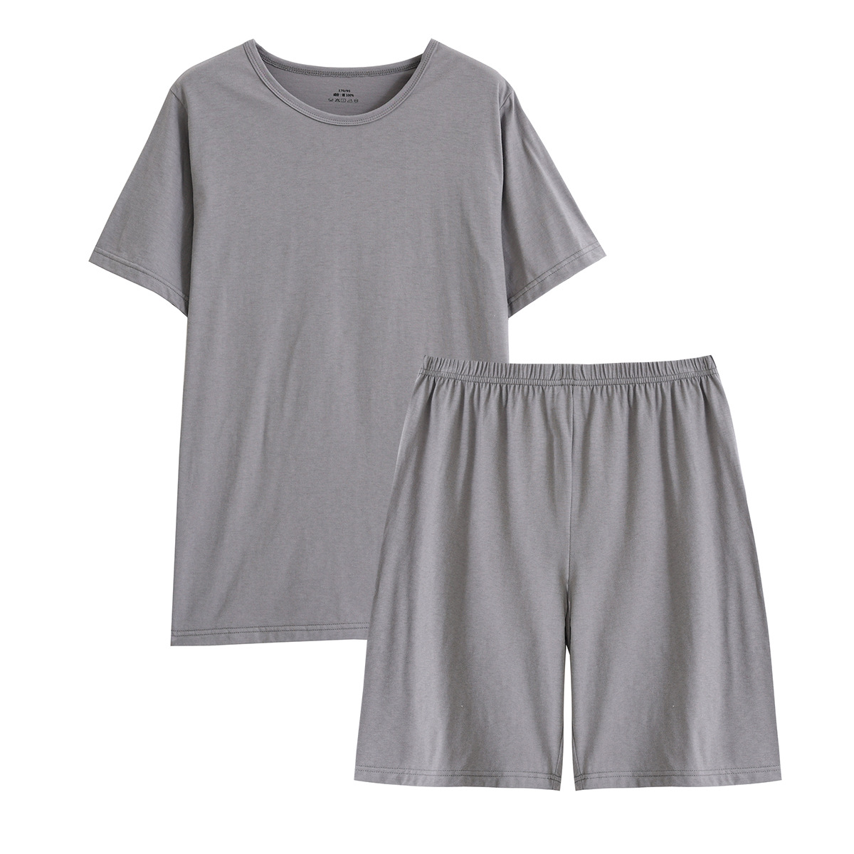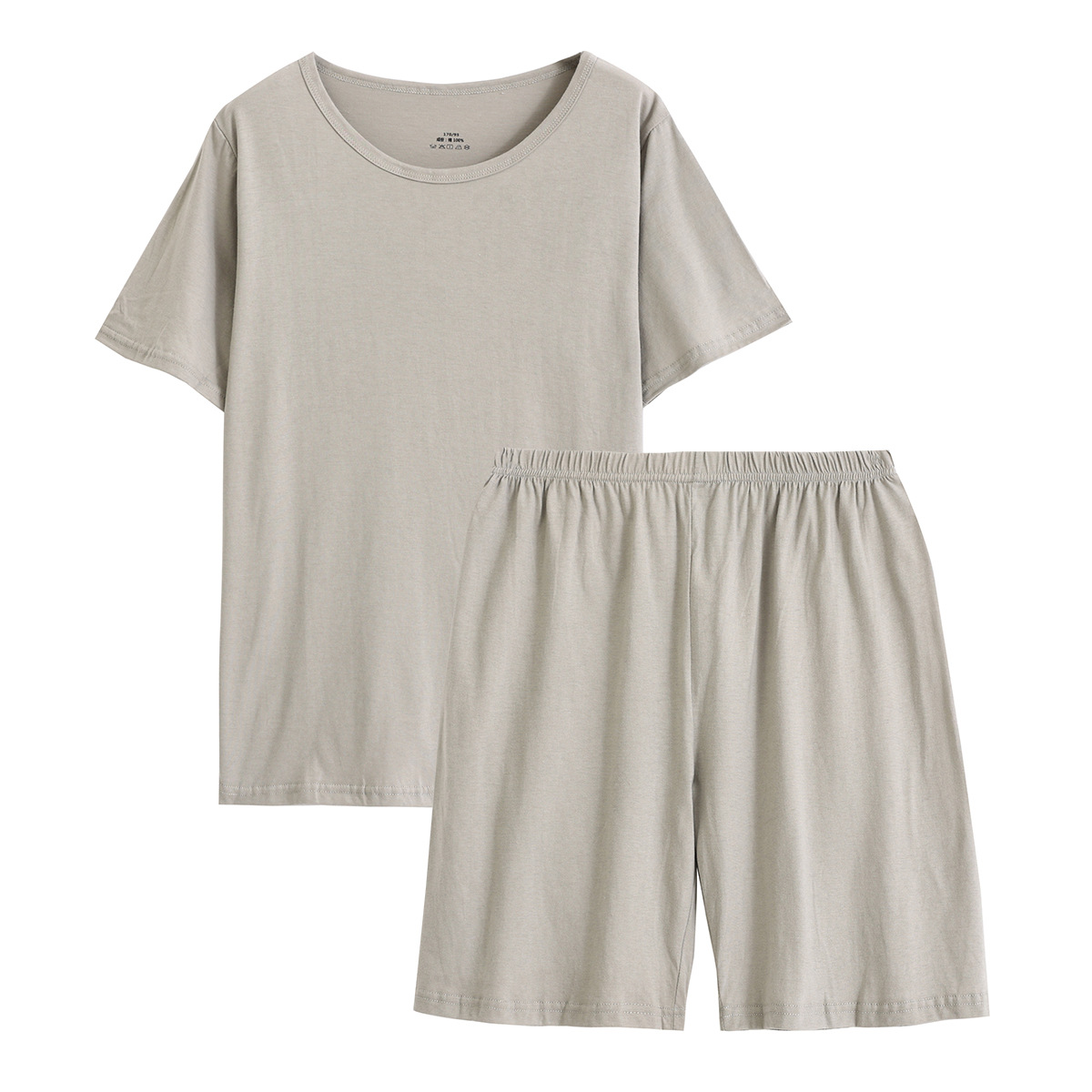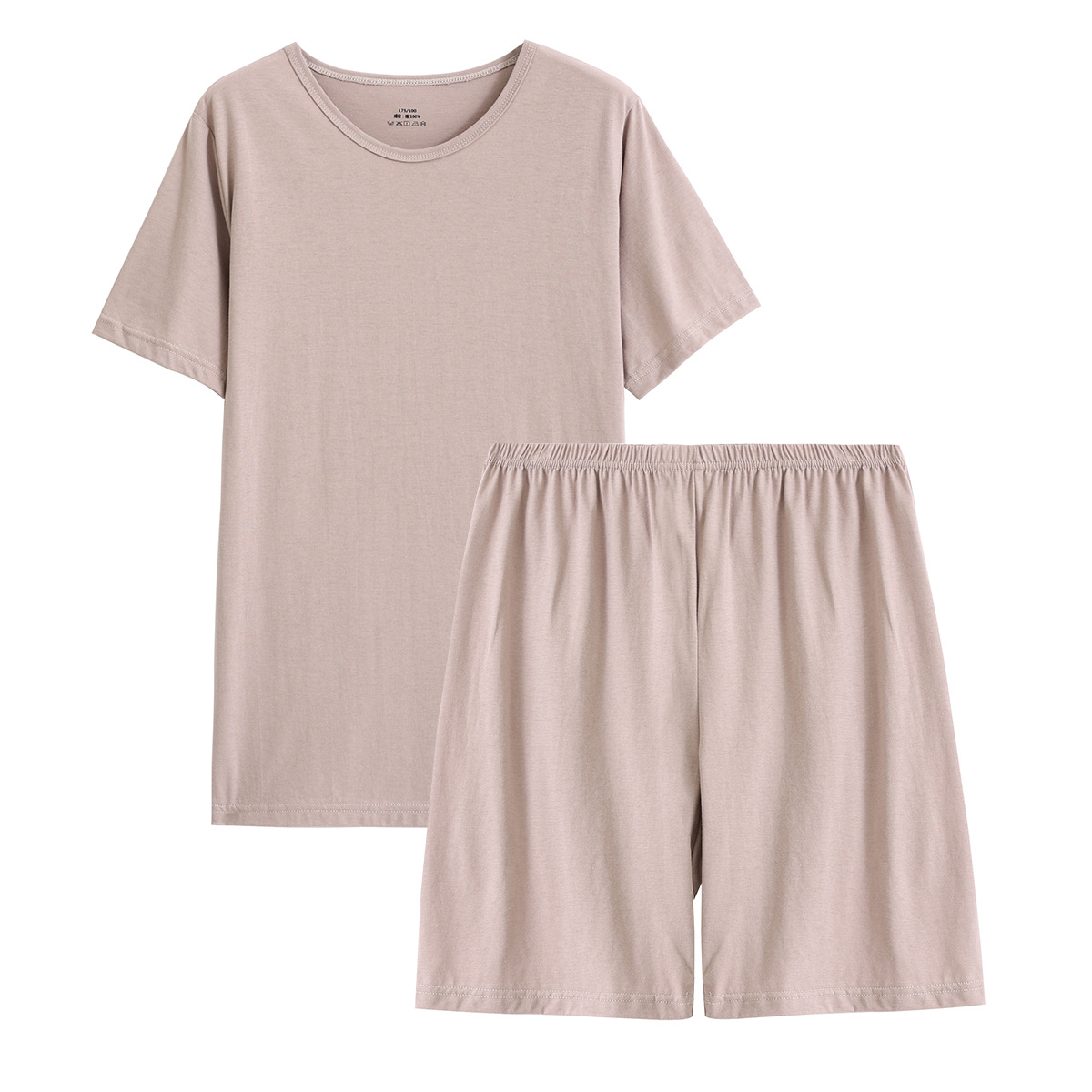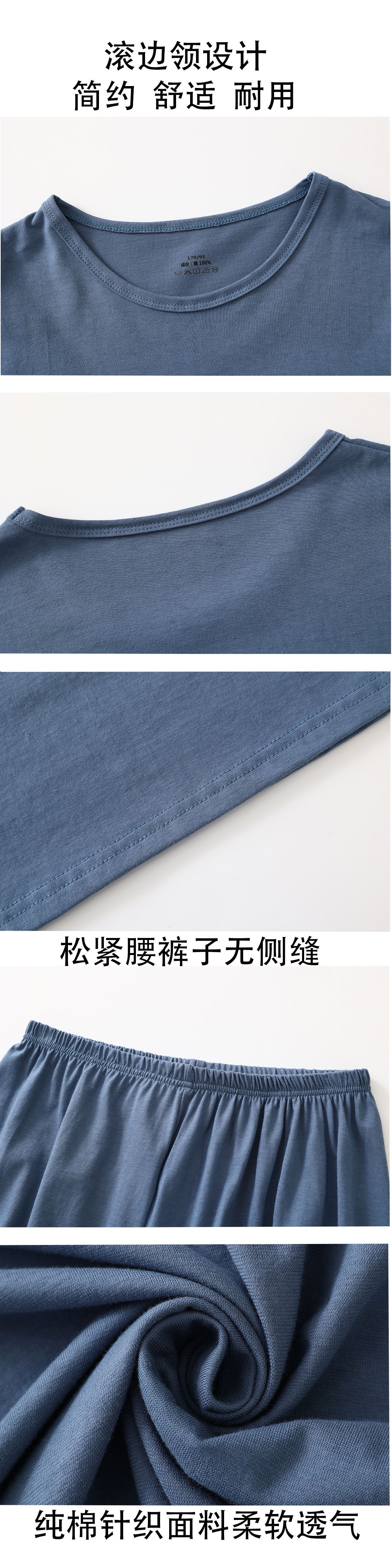 무인 일본식 사이드 슬리브리스 순면 잠옷 홈웨어 라운드넥 니트 면 반팔 반바지 남녀 세트