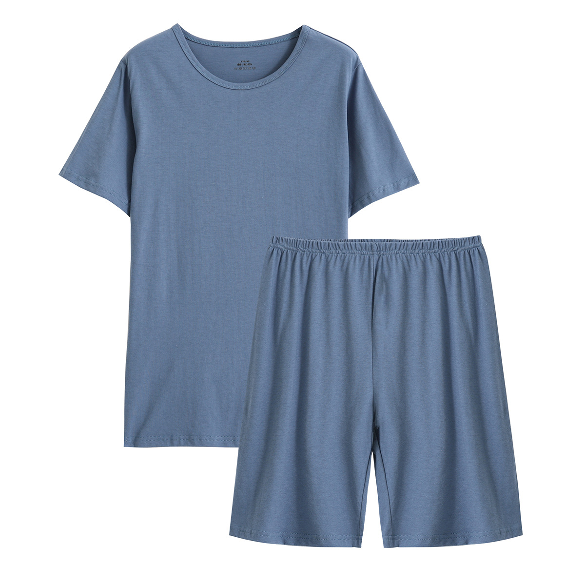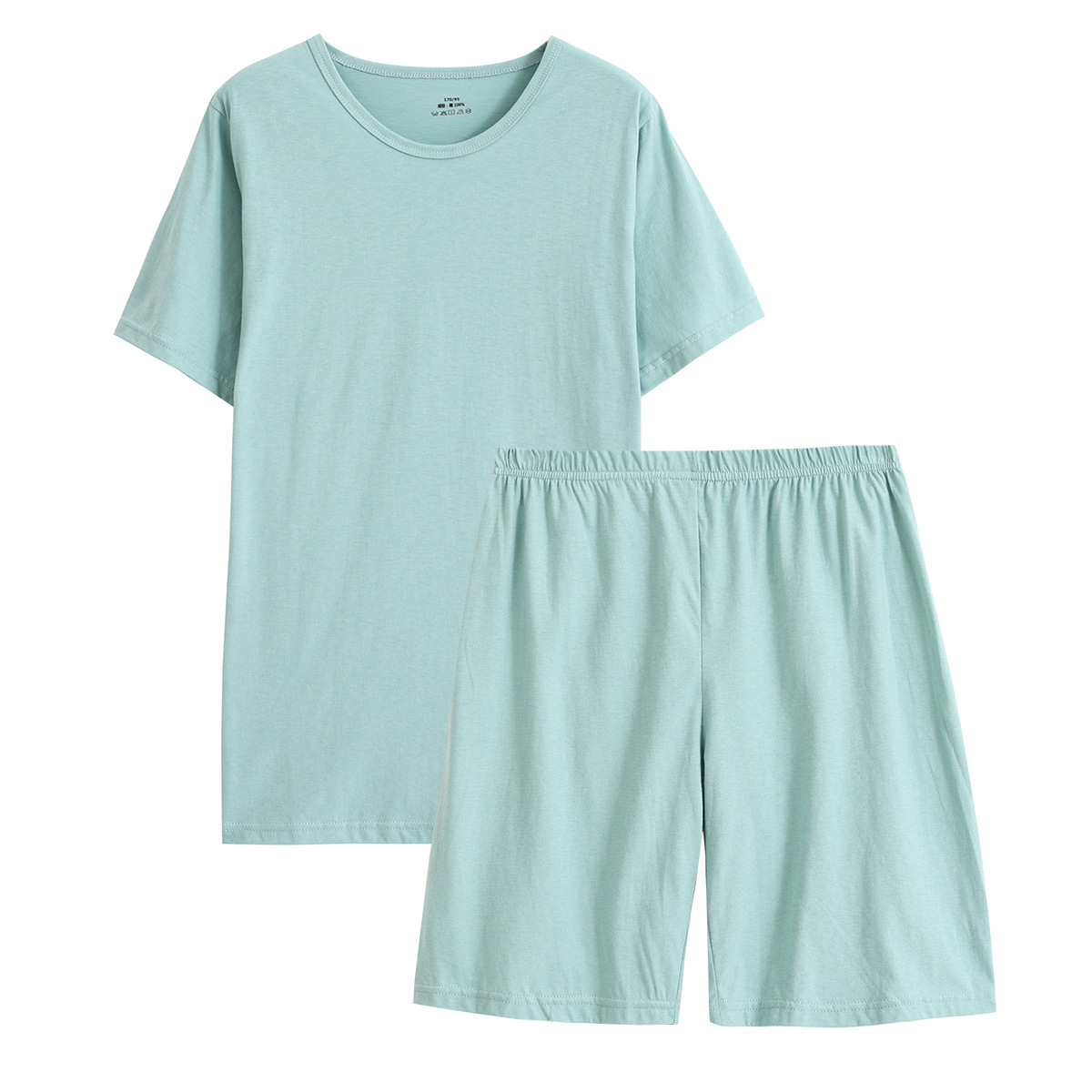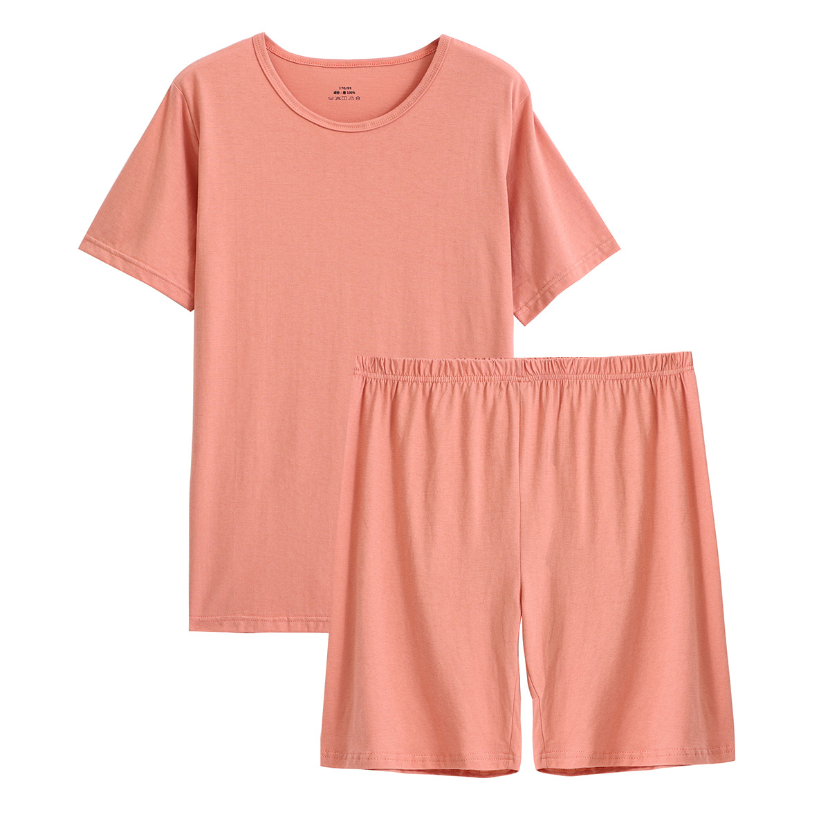 무인 일본식 사이드 슬리브리스 순면 잠옷 홈웨어 라운드넥 니트 면 반팔 반바지 남녀 세트