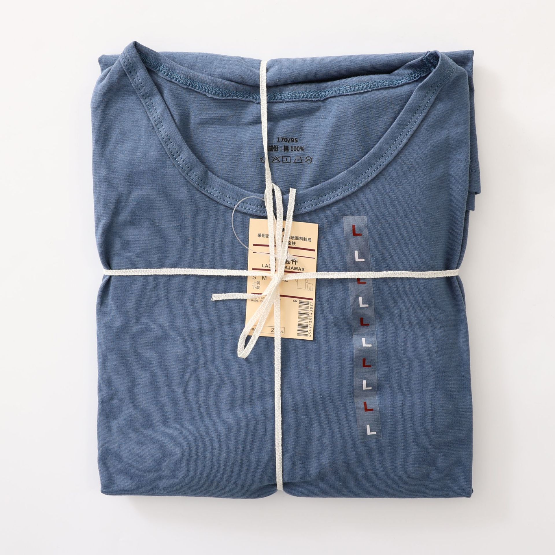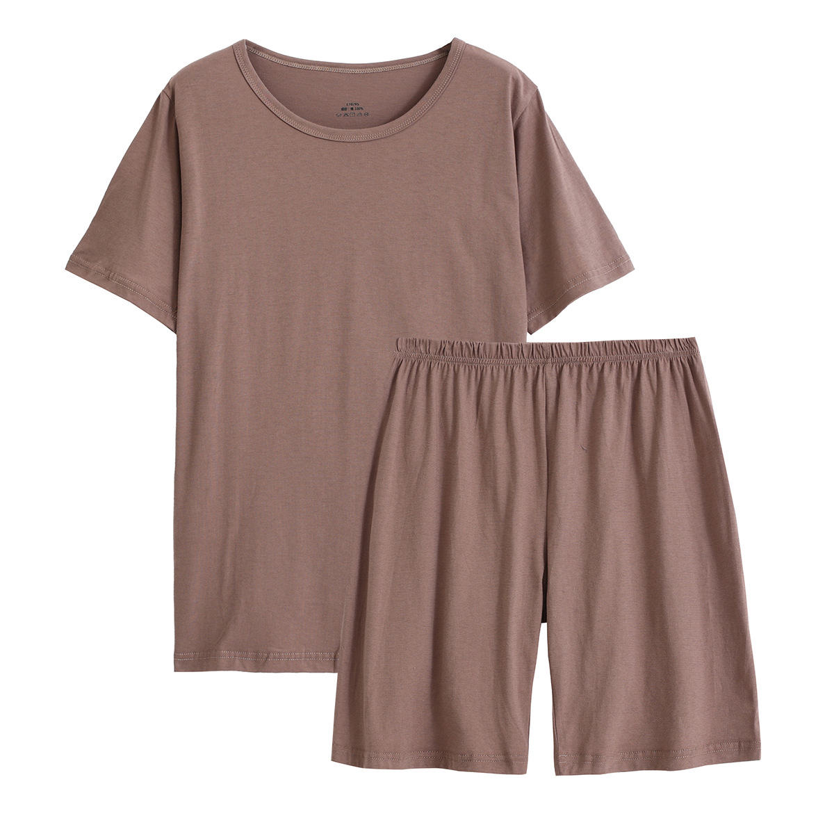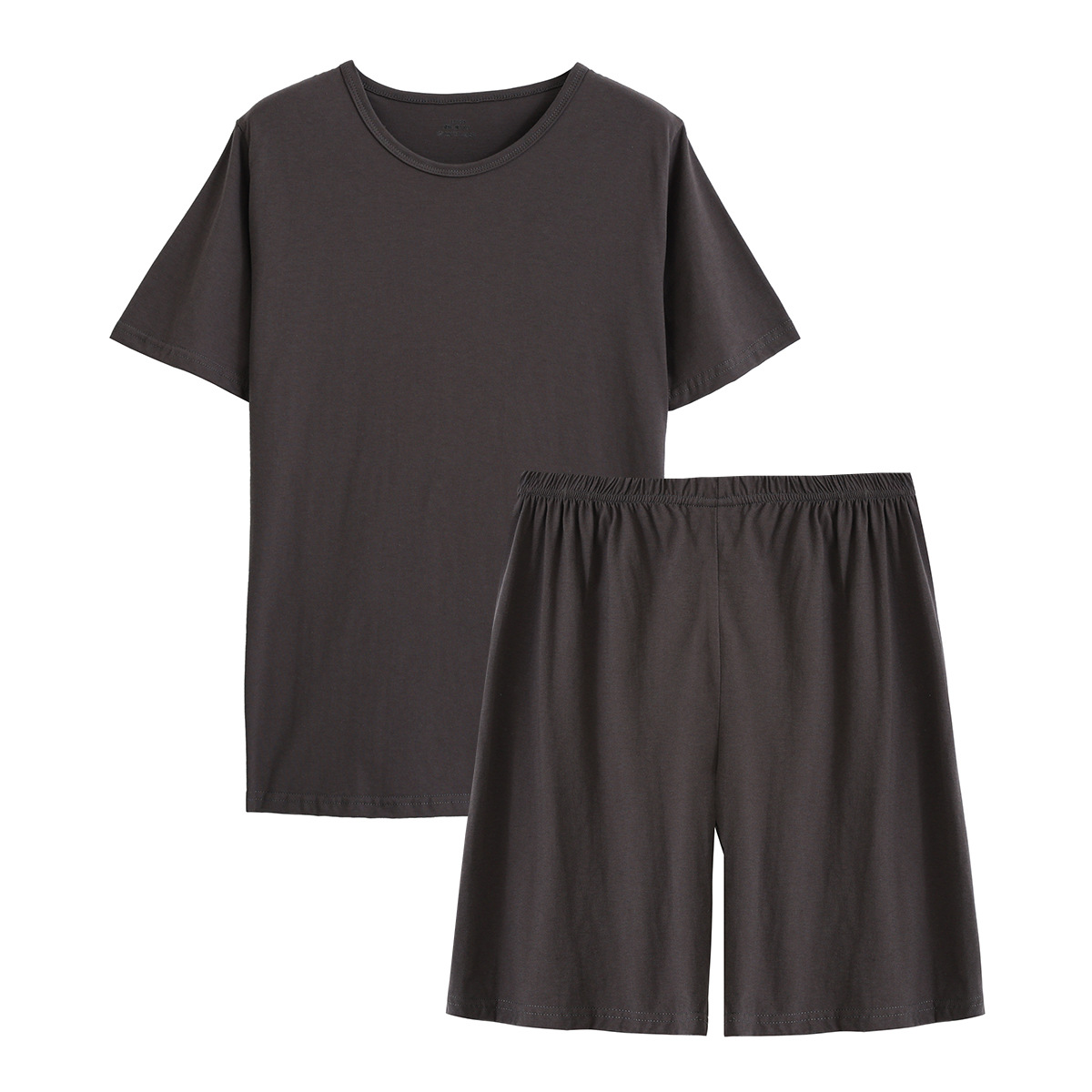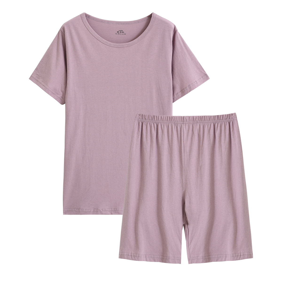 무인 일본식 사이드 슬리브리스 순면 잠옷 홈웨어 라운드넥 니트 면 반팔 반바지 남녀 세트
