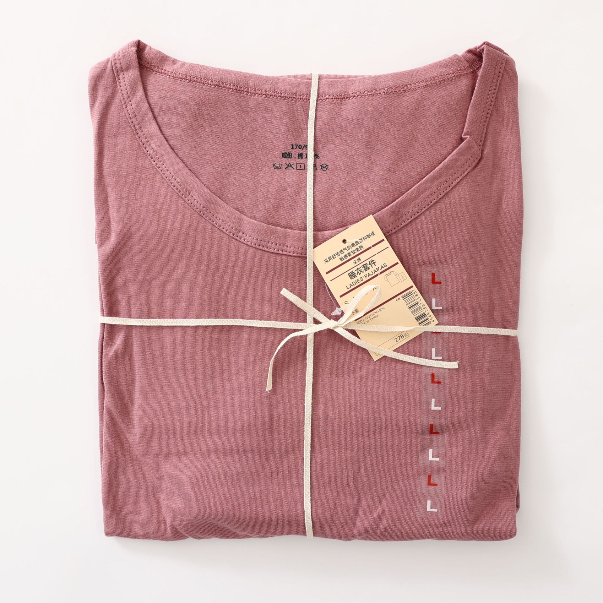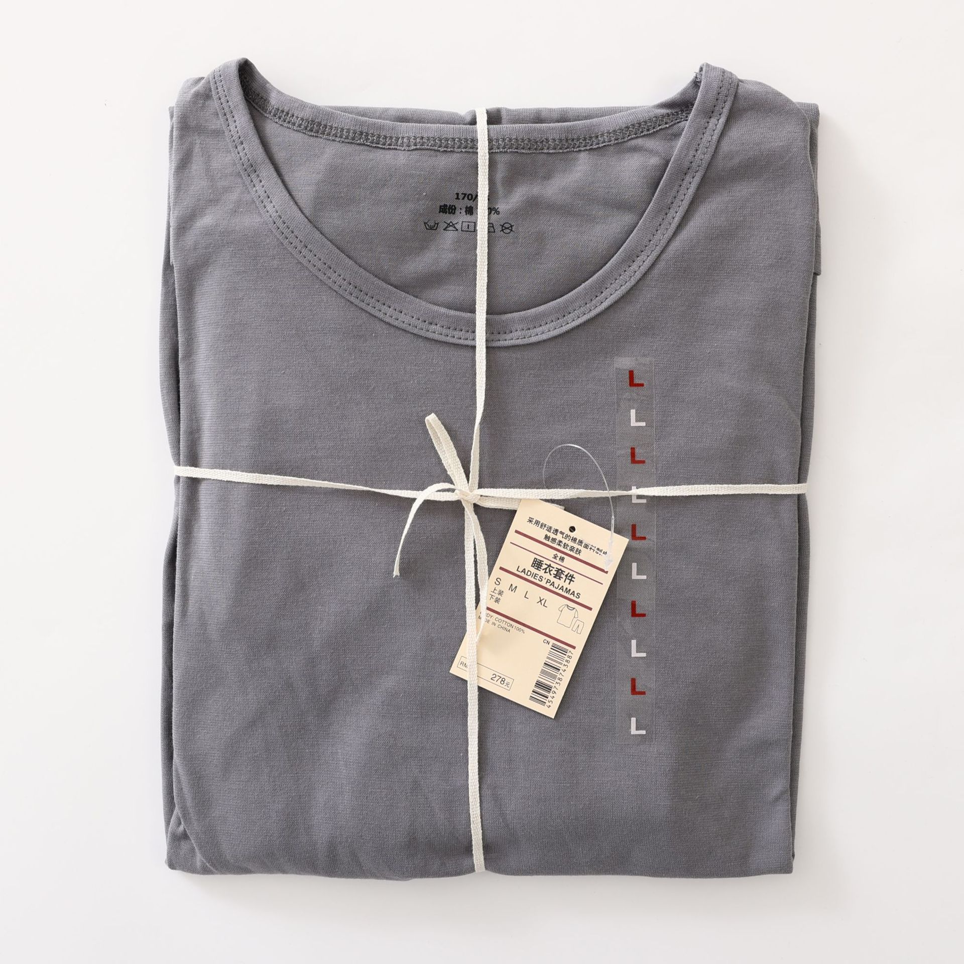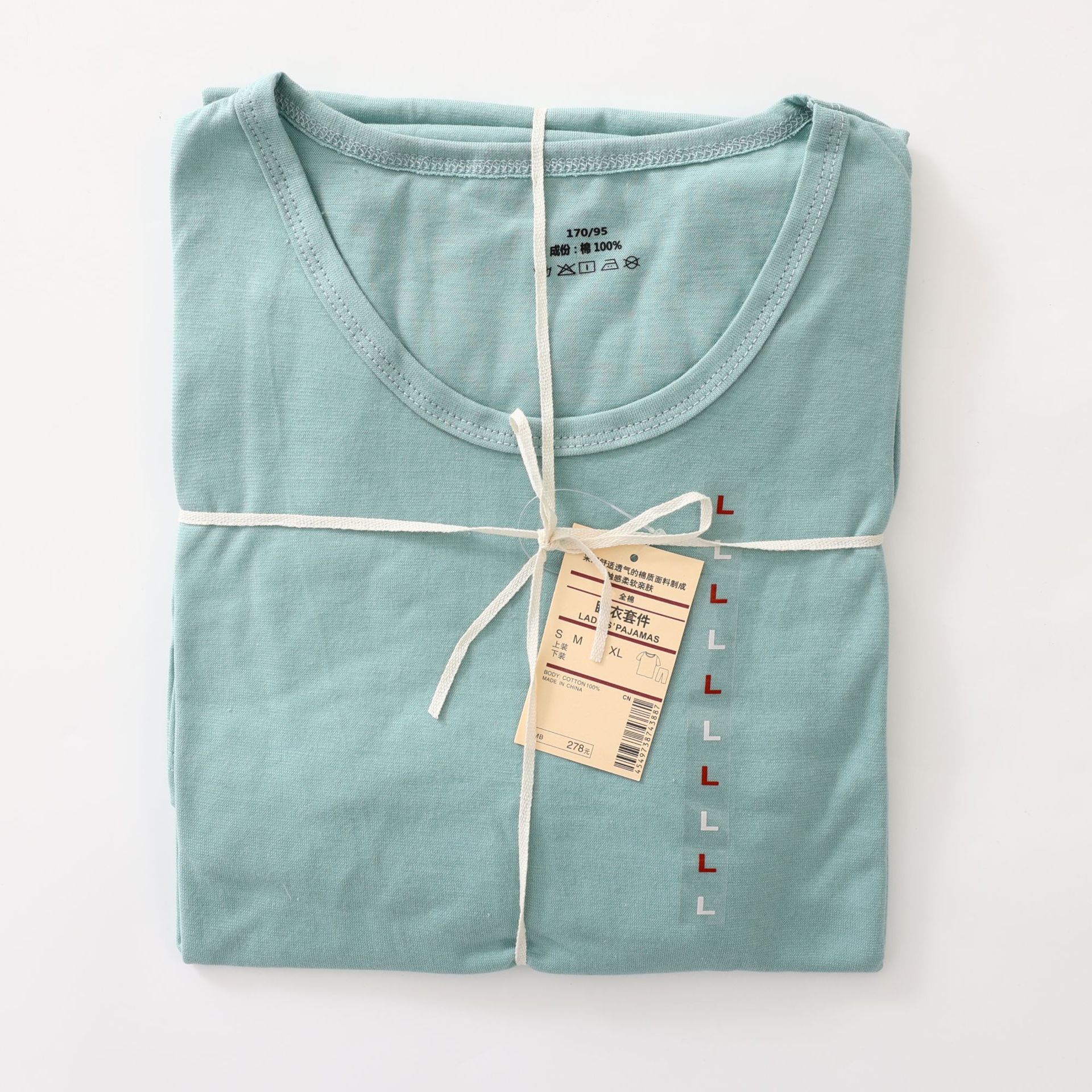 무인 일본식 사이드 슬리브리스 순면 잠옷 홈웨어 라운드넥 니트 면 반팔 반바지 남녀 세트스토어 가기