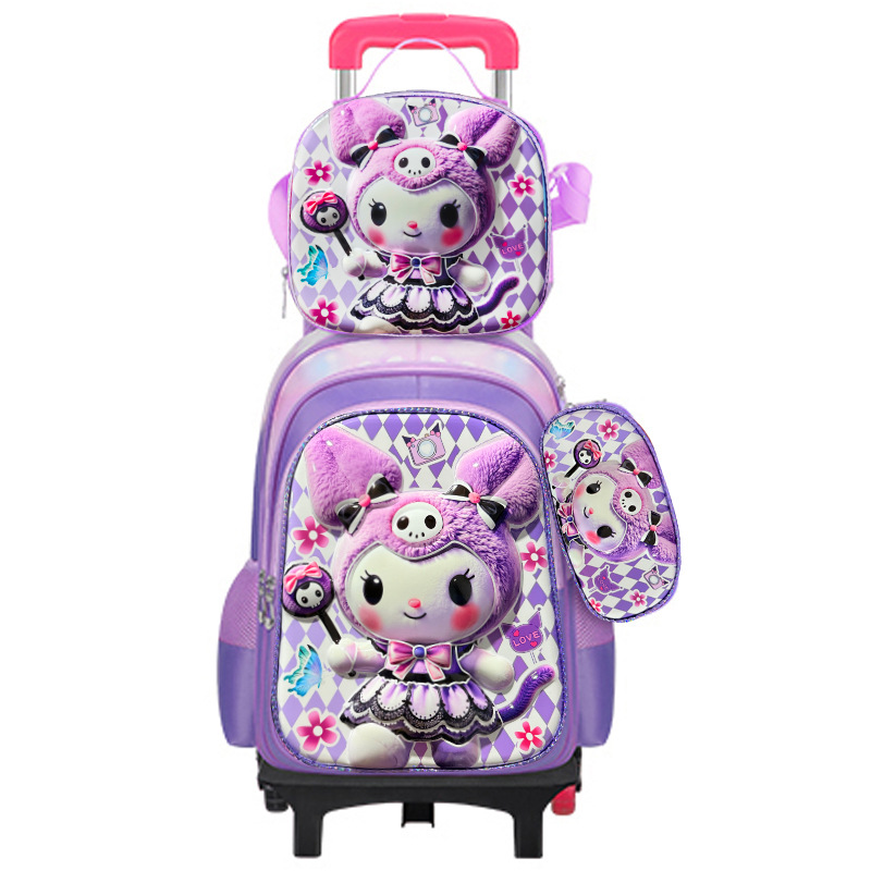 새로운 귀여운 초등학생용 트롤리 책가방 3~6학년 만화 캐릭터 3종 세트 두 바퀴 여섯 바퀴 어린이 책가방 재고 있음스토어 가기