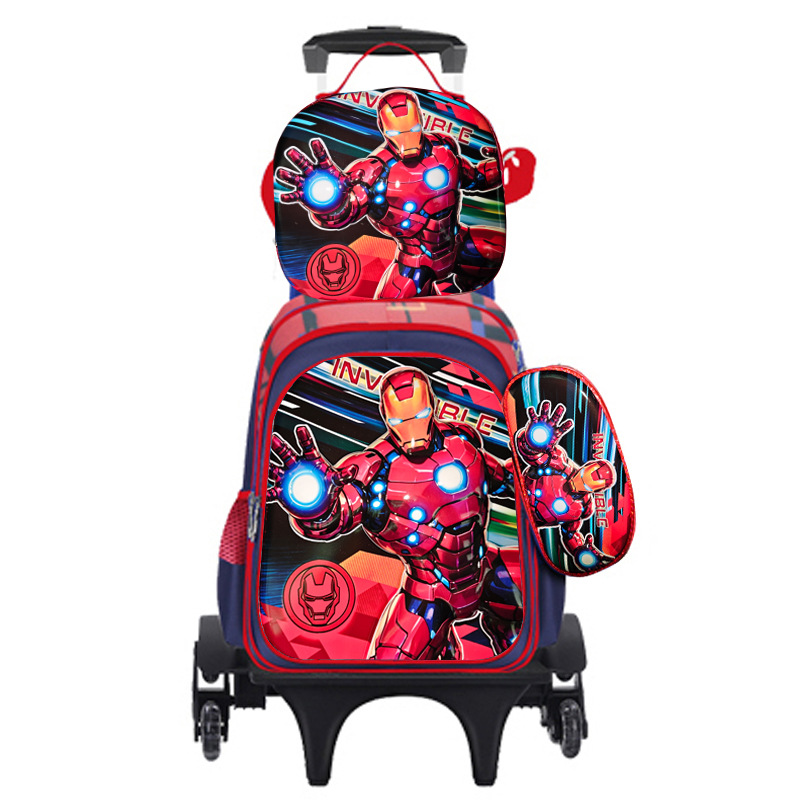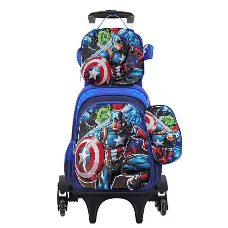 새로운 귀여운 초등학생용 트롤리 책가방 3~6학년 만화 캐릭터 3종 세트 두 바퀴 여섯 바퀴 어린이 책가방 재고 있음