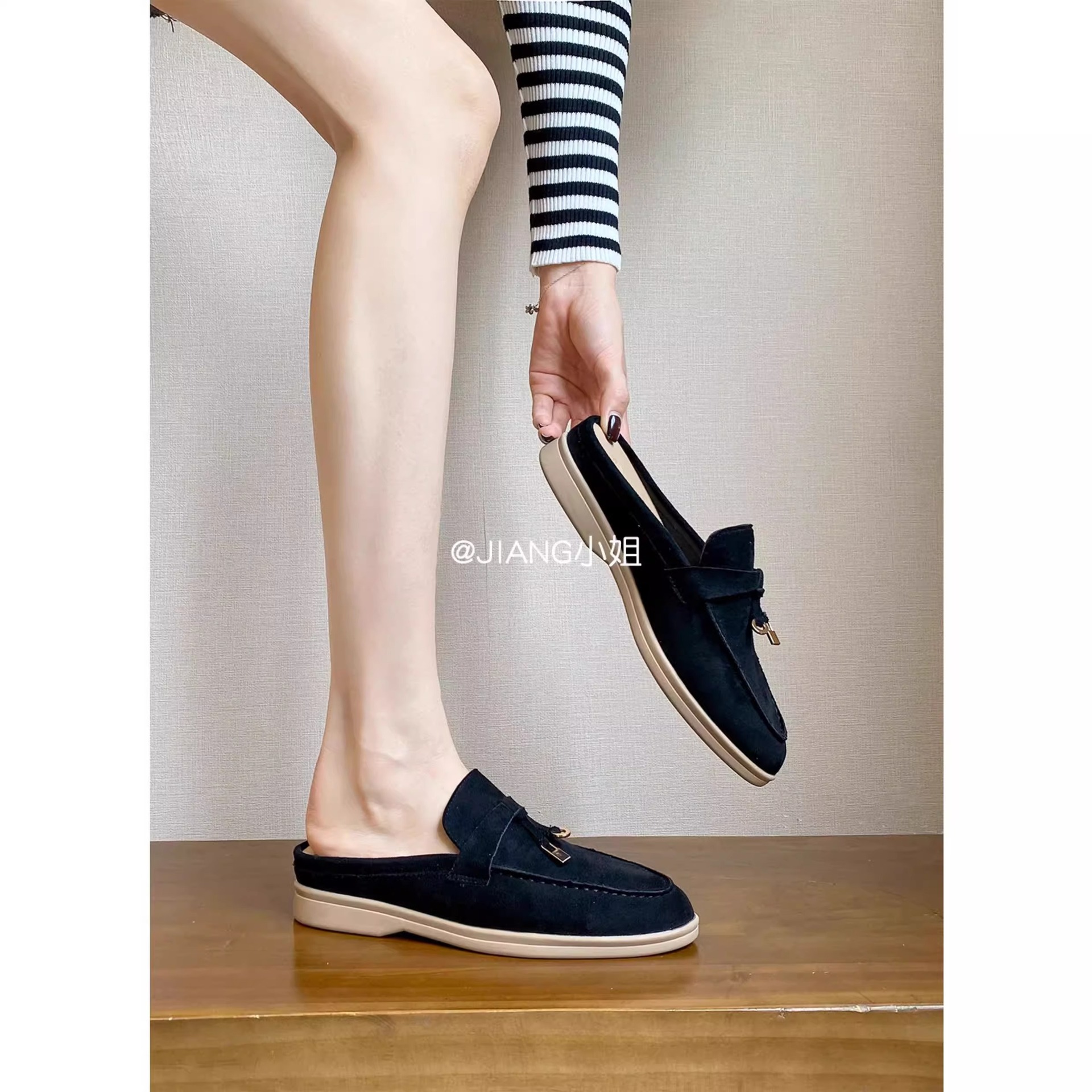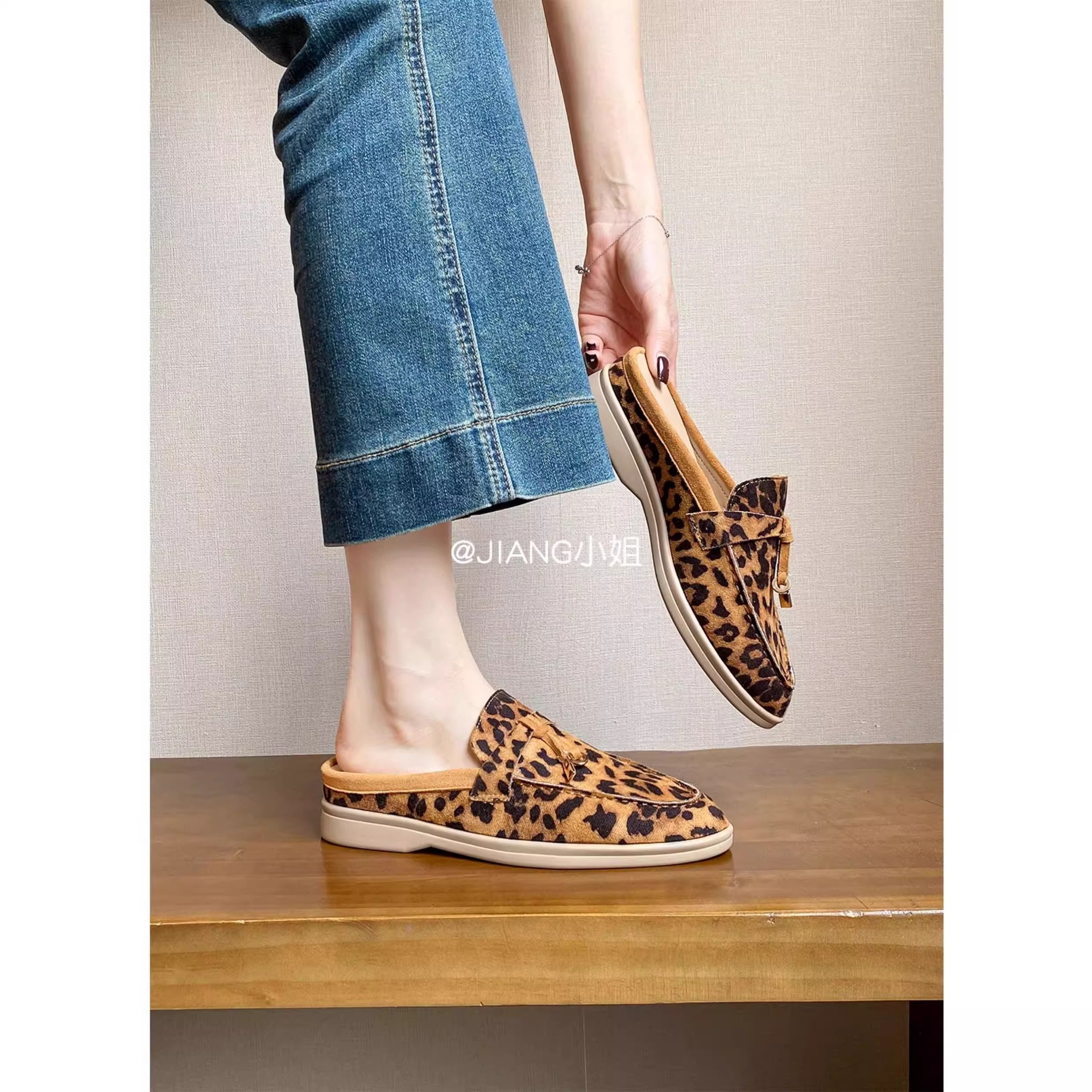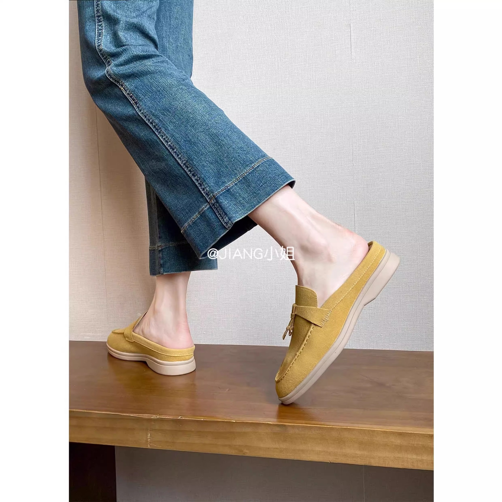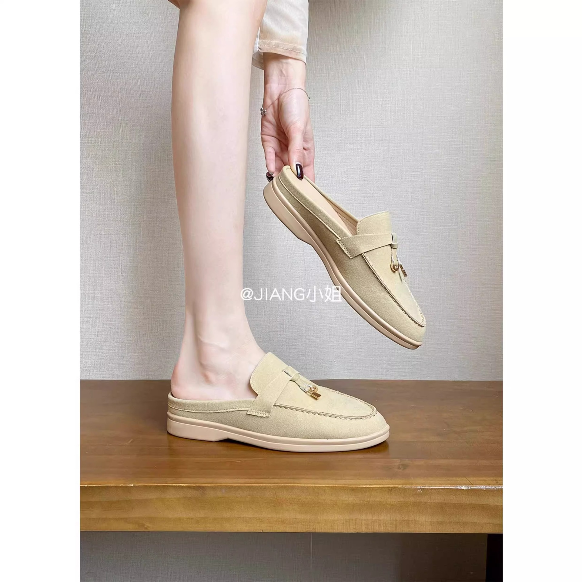 양가죽 버전 ~ 5cm 작은 사이즈 여성용 키높이 발가락 하프 슬리퍼, 로퍼, 게으른 신발, 슬립온스토어 가기