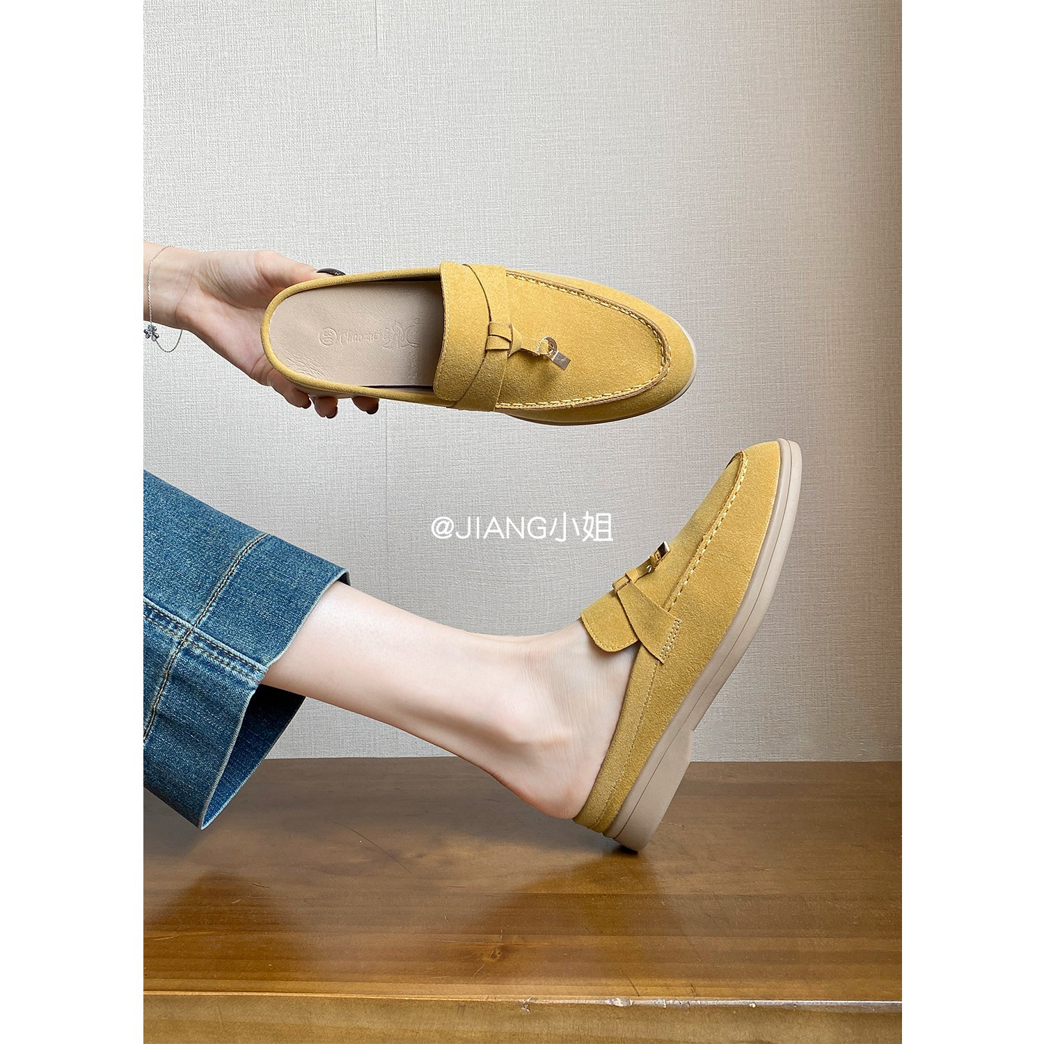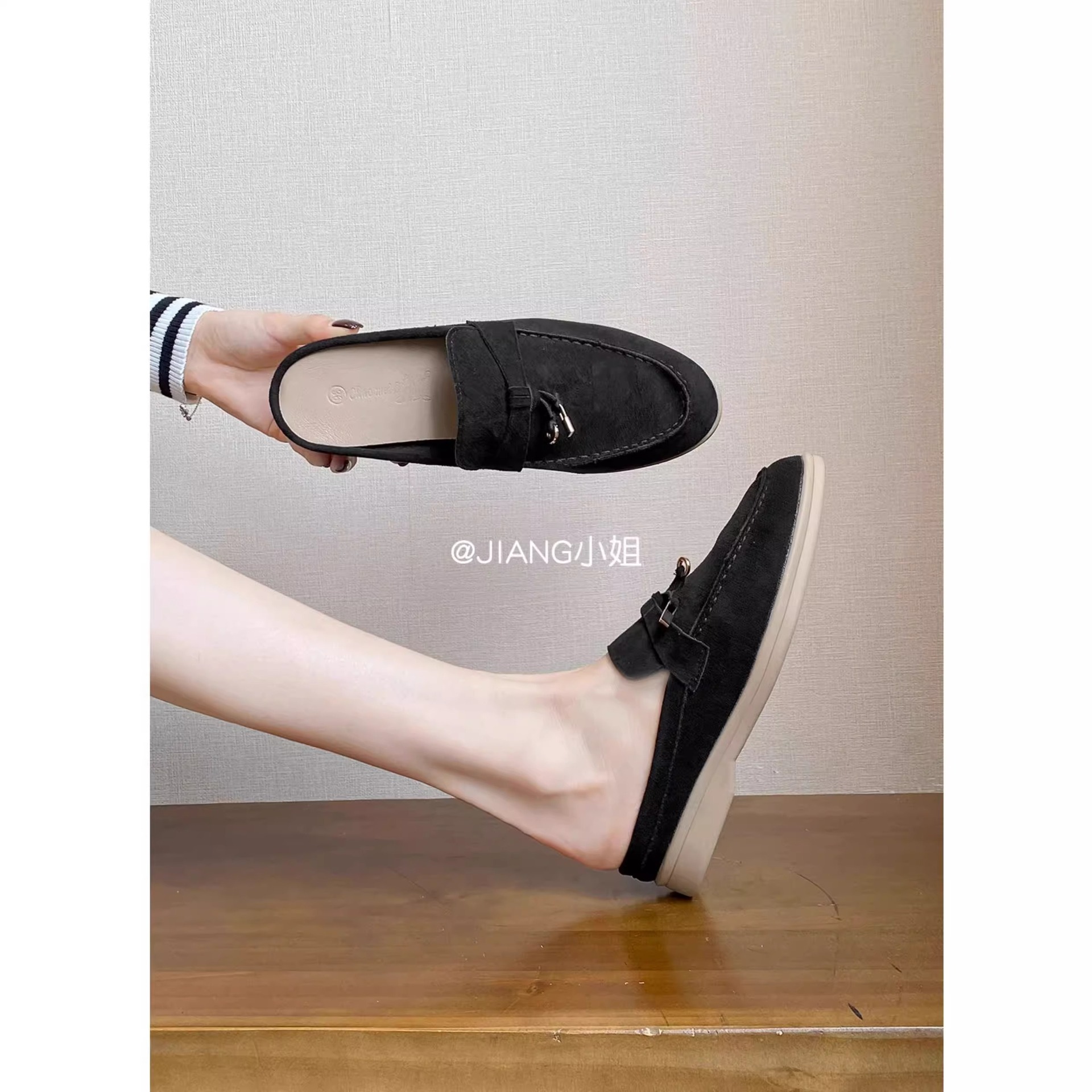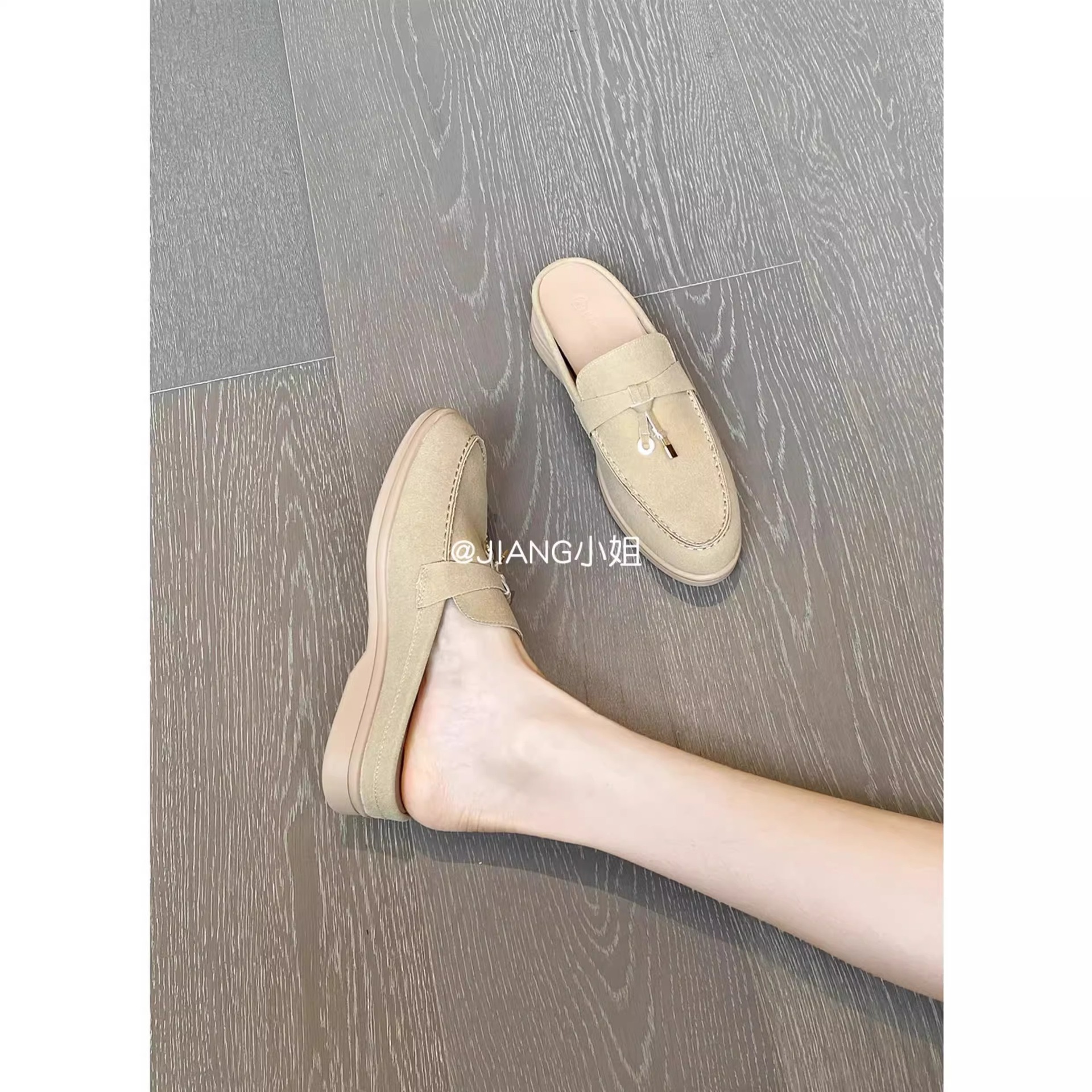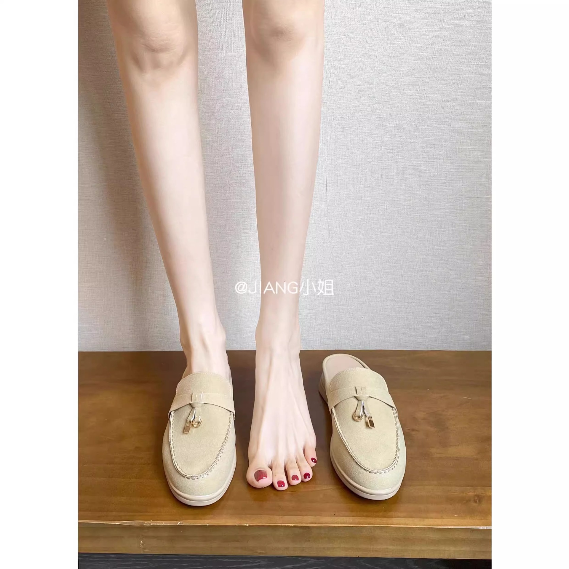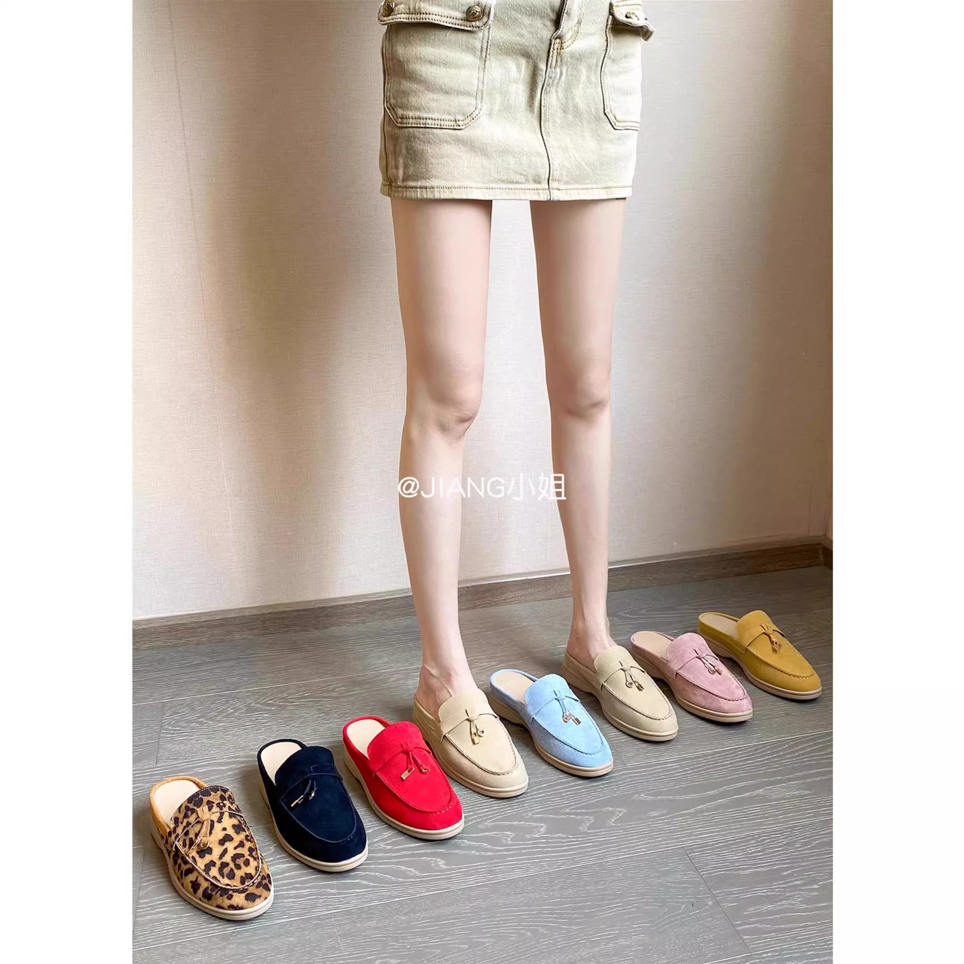 양가죽 버전 ~ 5cm 작은 사이즈 여성용 키높이 발가락 하프 슬리퍼, 로퍼, 게으른 신발, 슬립온스토어 가기